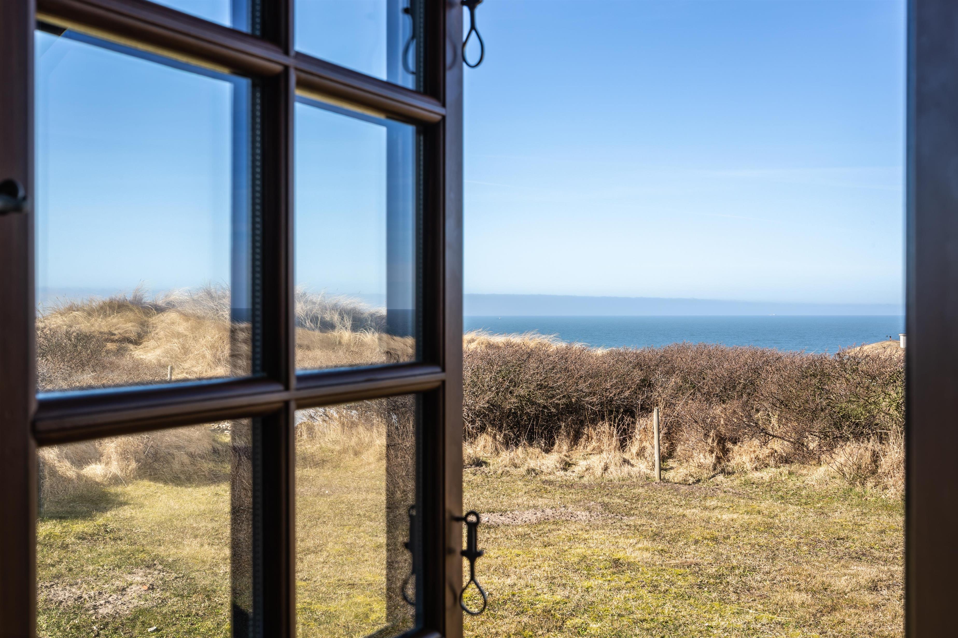 Hvis I prioriterer frisk luft, kort afstand til stranden, hyggelige omgivelser og fred og ro på ferien, så er I kommet til det helt rigtige sted med dette charmerende og velbeliggende feriehus ved Vestkysten. Fra dette skønne og charmerende feriehus kan I opleve den smukkeste havudsigt, man kan forestille sig.