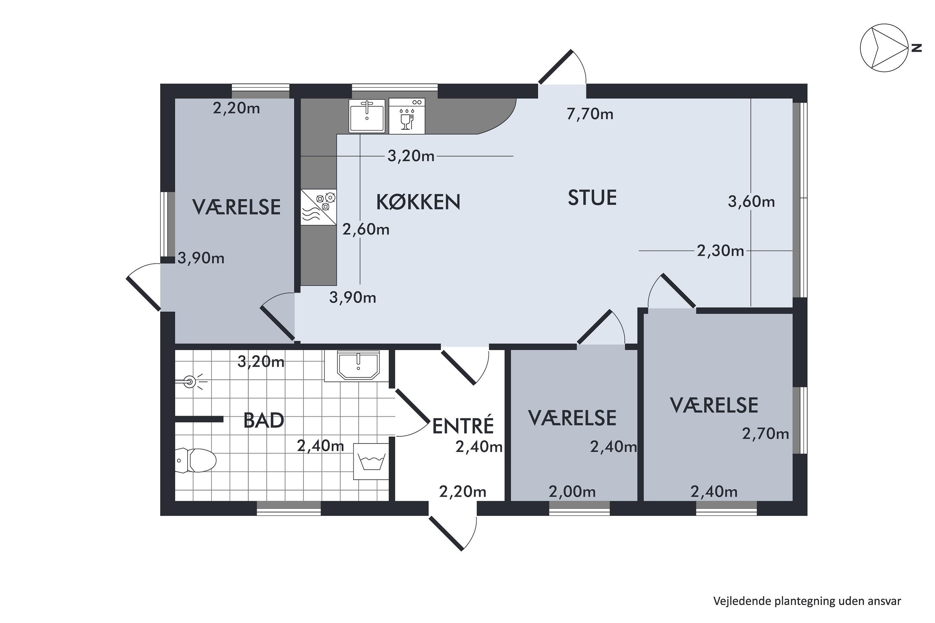 En energivenlig varmepumpe sørger for et behageligt indeklima og ekstra komfort under opholdet. Derudover råder feriehuset over et stort og funktionelt badeværelse, to soveværelser med dobbeltseng og et værelse med en enkeltseng.