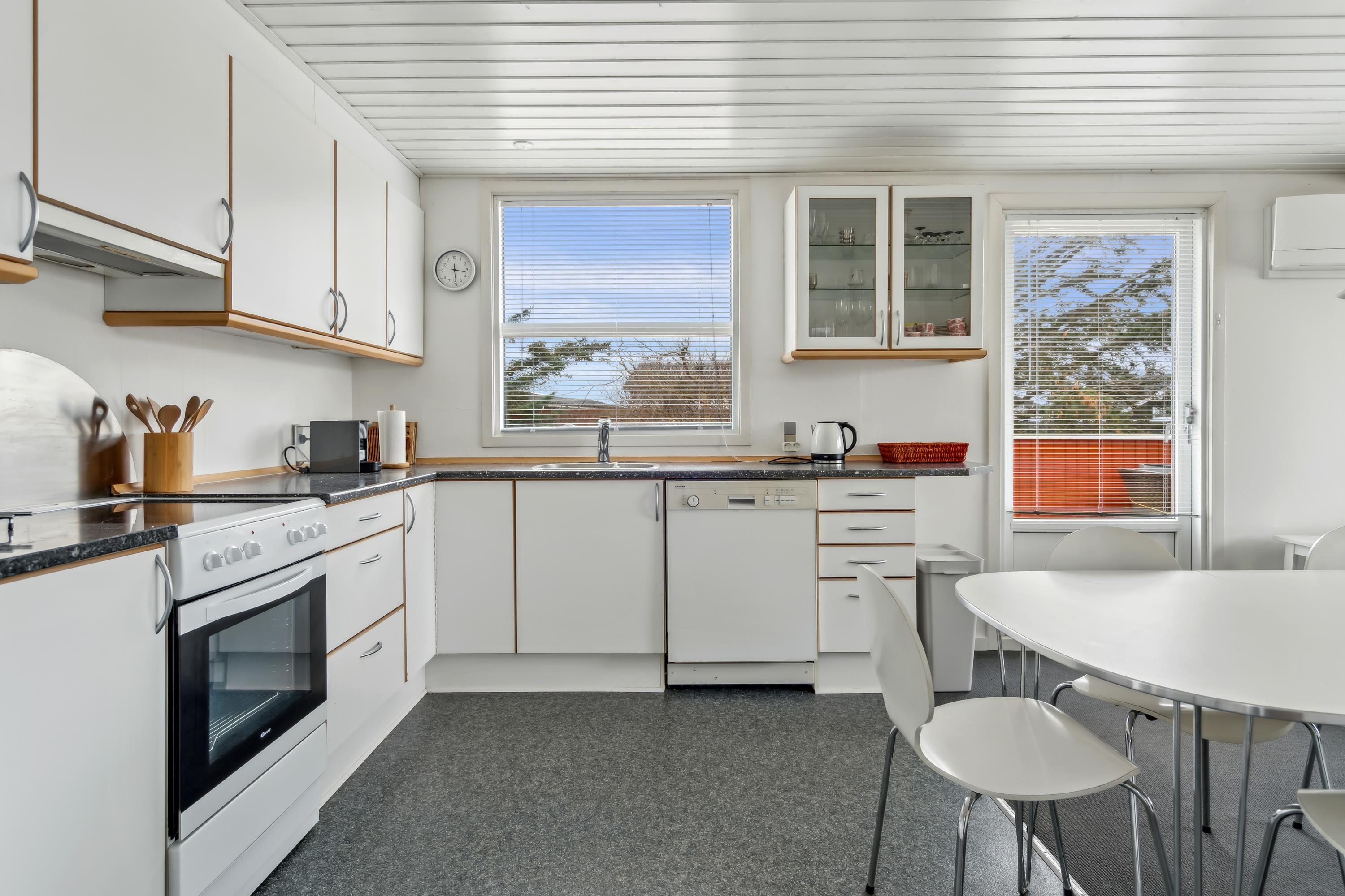 Det veludstyrede køkken gør det nemt at tilberede feriens måltider, uanset om det er hurtige frokoster eller hyggelige middage.