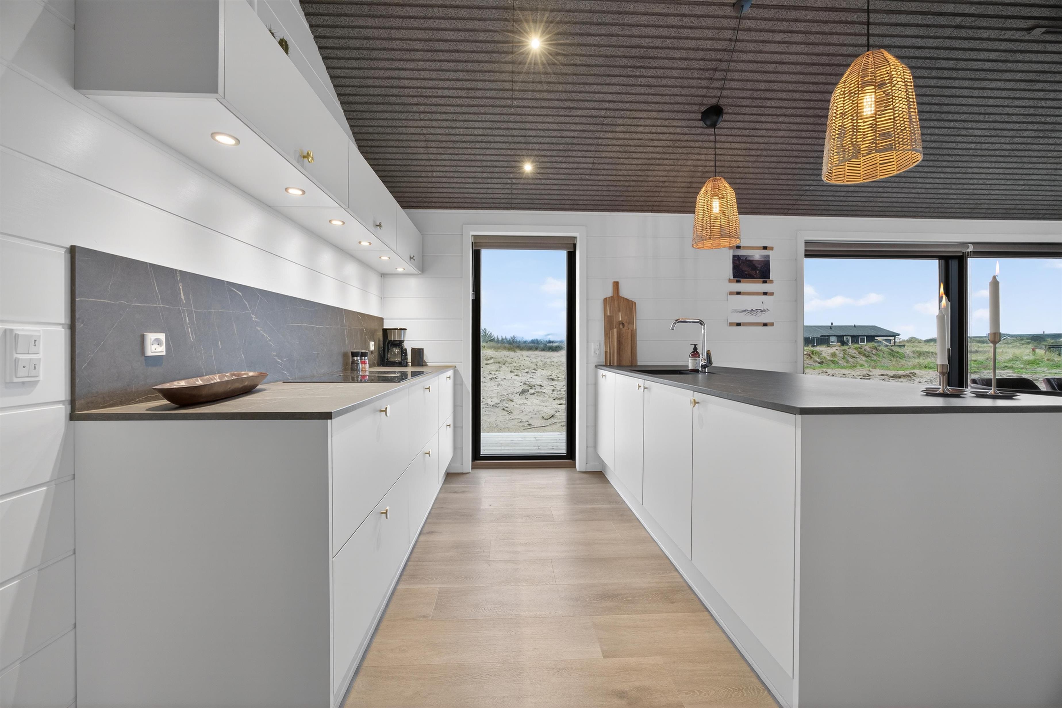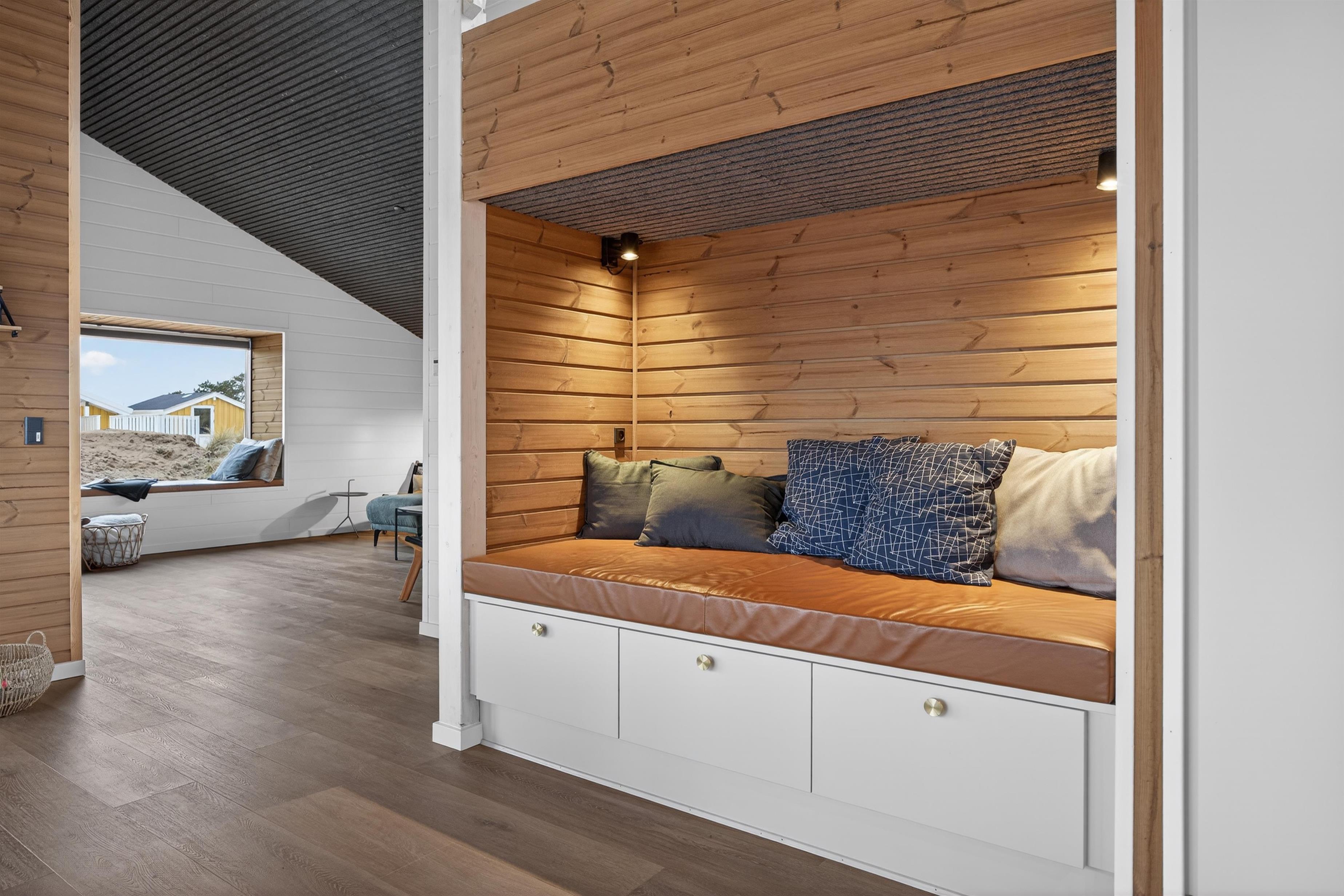 Køkkenet er veludstyret og rummer alt, hvad der skal til for at skabe lækre feriemåltider. Huset råder over i alt fire soveværelser, hvoraf ét er et stort aktivitetsrum kombineret med soveværelse. Derudover findes en hyggelig hems – en perfekt lille hule for både børn og voksne.