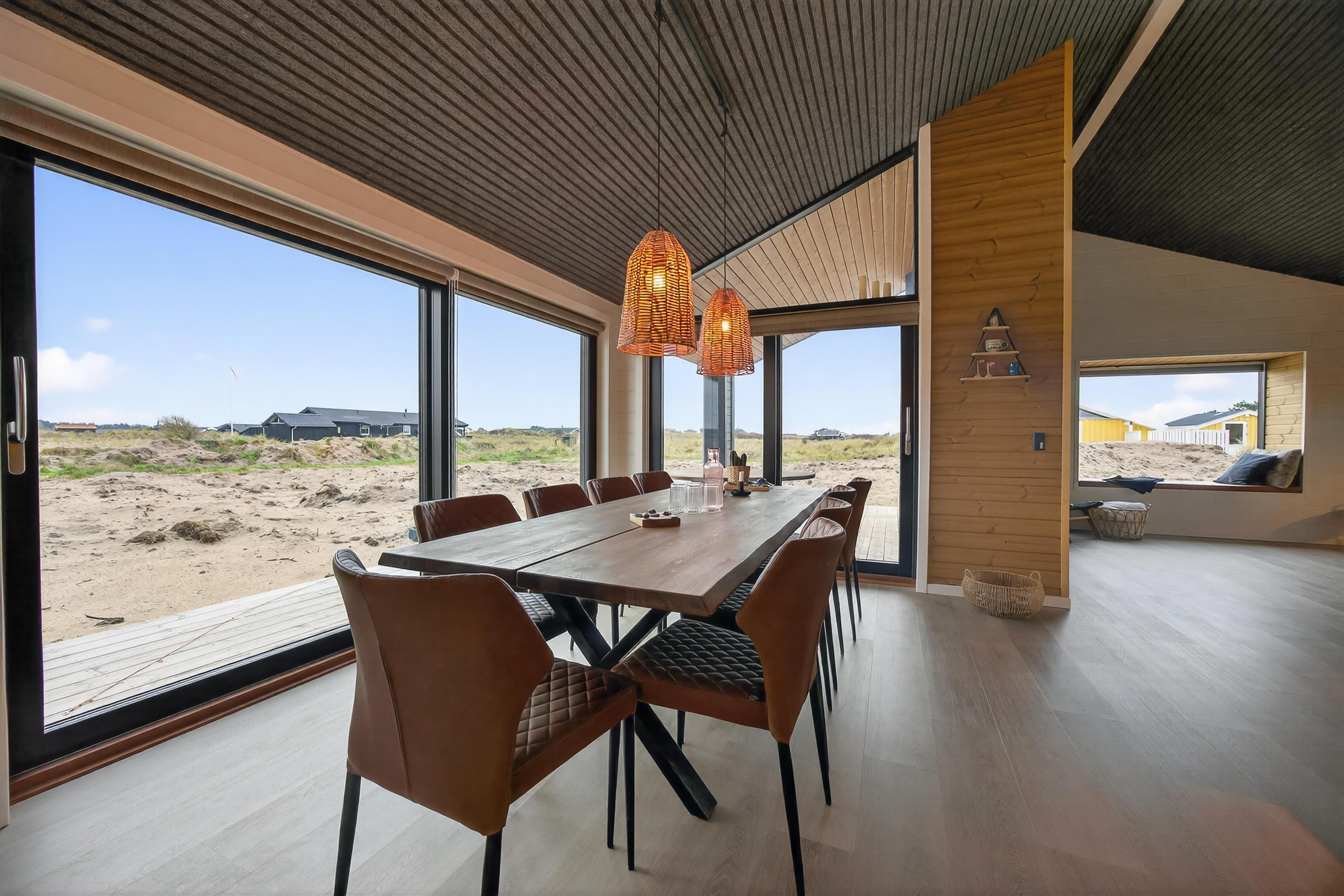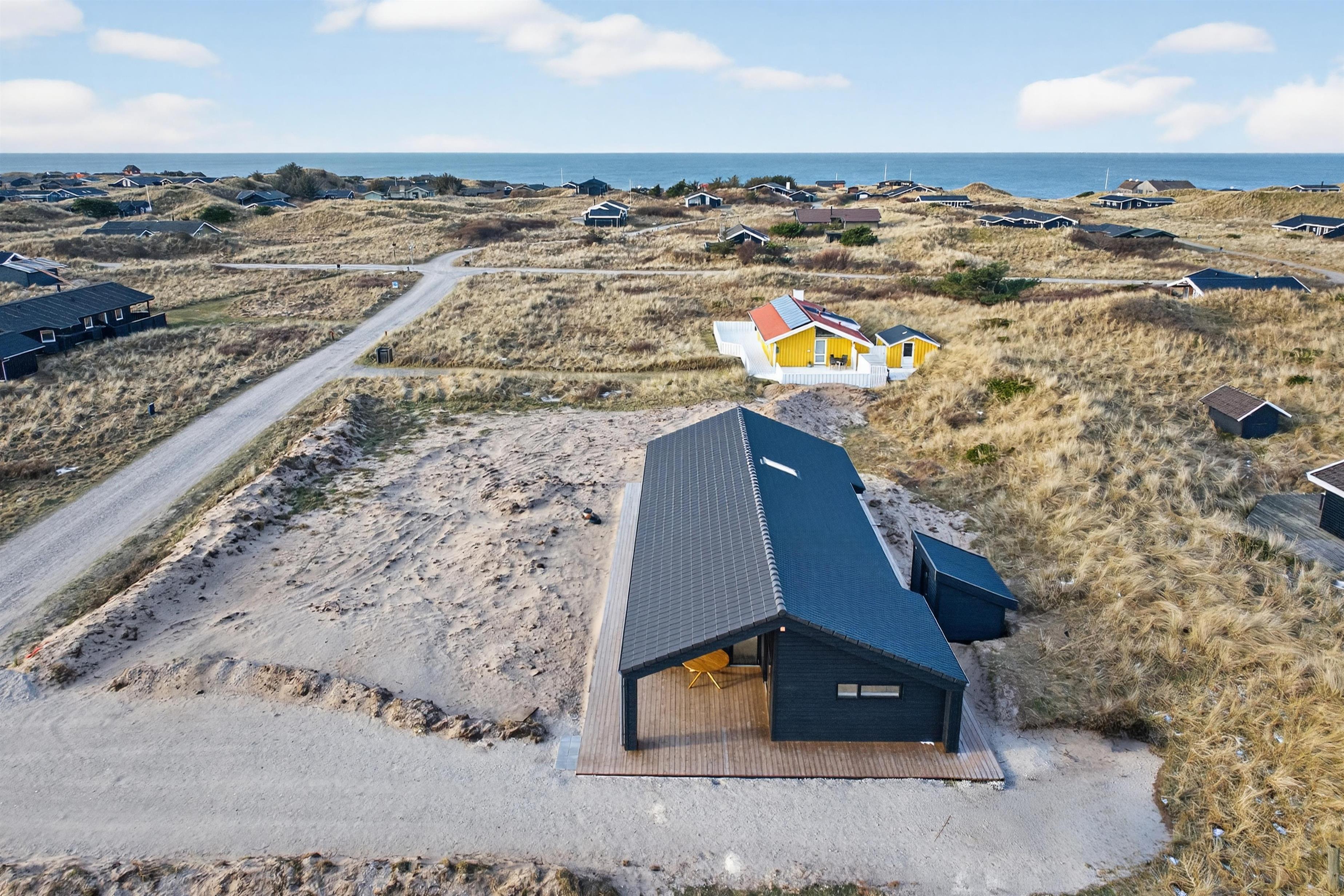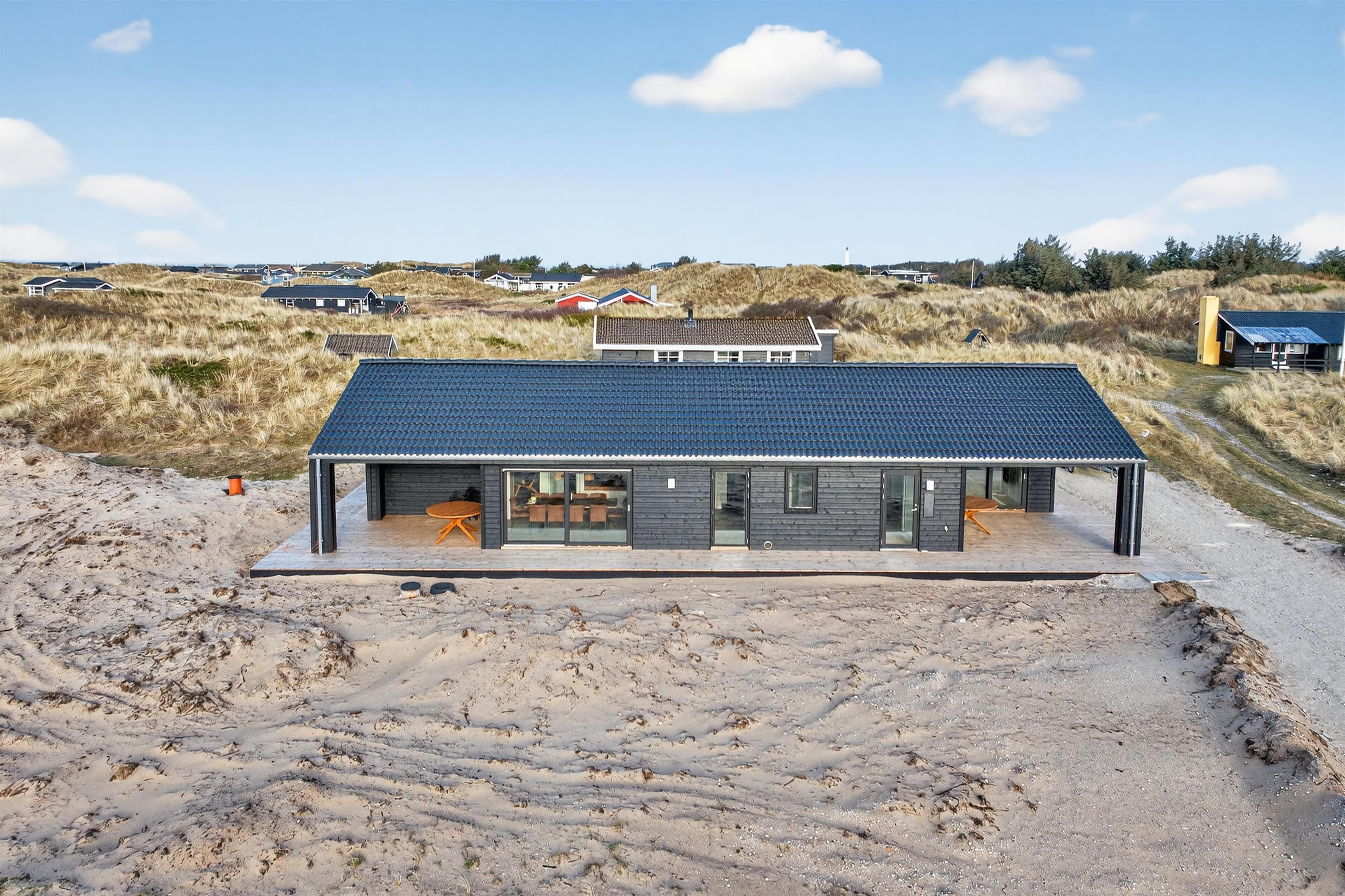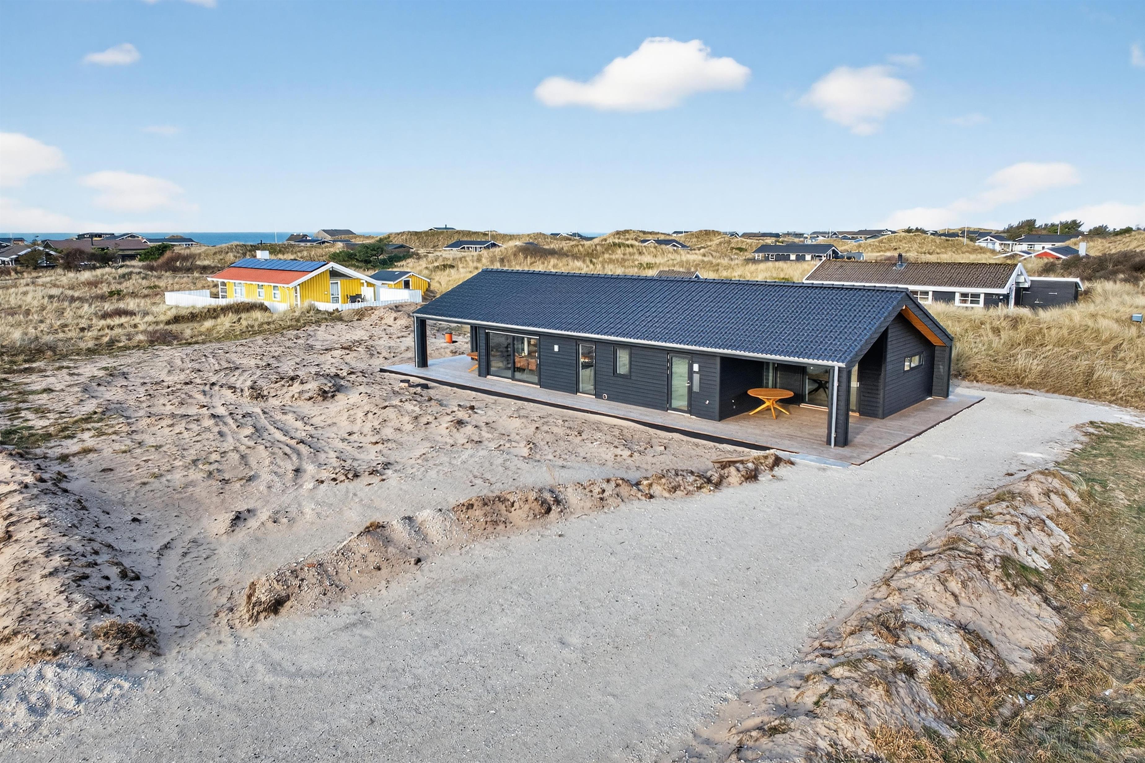 Fra feriehuset er der direkte adgang til flere skønne terrasser. I hver ende af huset finder I overdækkede terrasser, som forlænger sommeraftenerne og skaber læ for vind og dug. Den store grund indbyder til boldspil og leg, mens den korte afstand til Tornby Strand gør det nemt at nyde sandstrand, hav og frisk vestenvind. Her er rammerne sat for ægte afslapning ved Vestkysten.