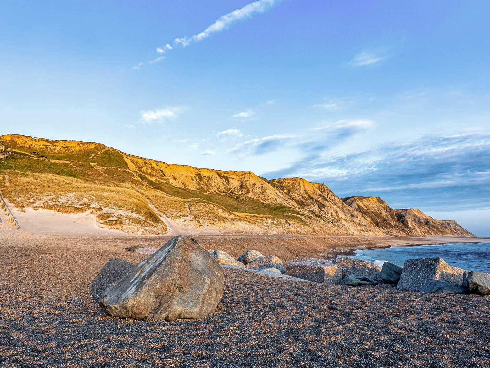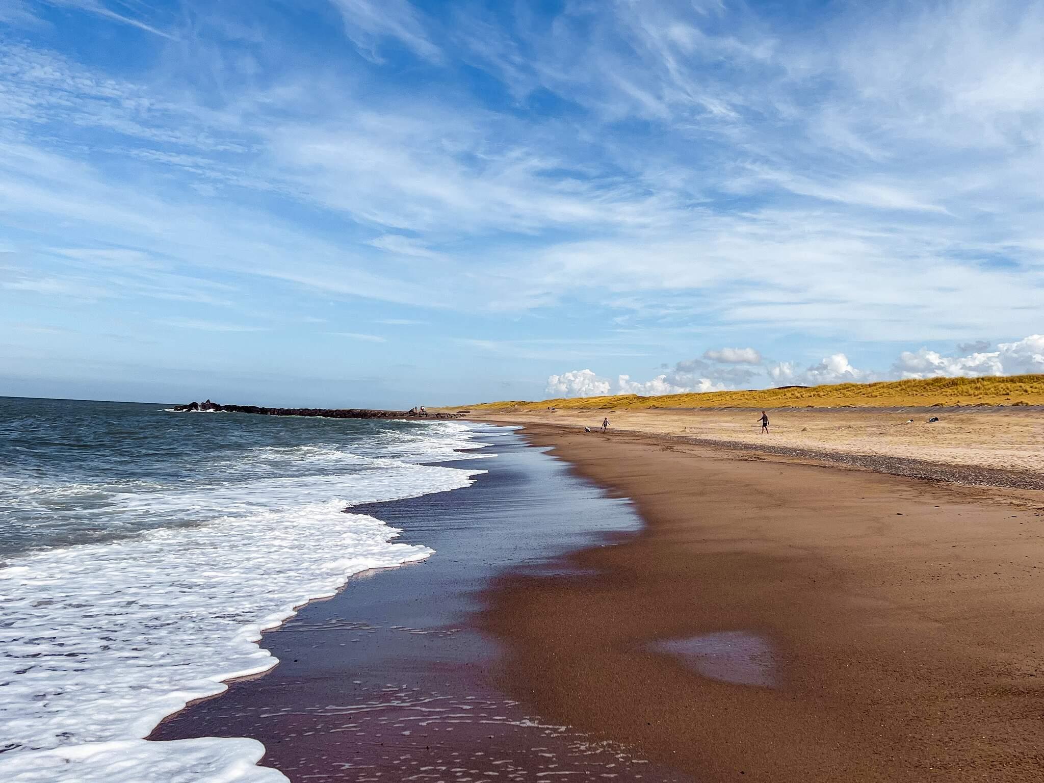 Sommerhus med havudsigt beliggende ca. 100 meter fra det brusende Vesterhavet med børnevenlig badestrand.
