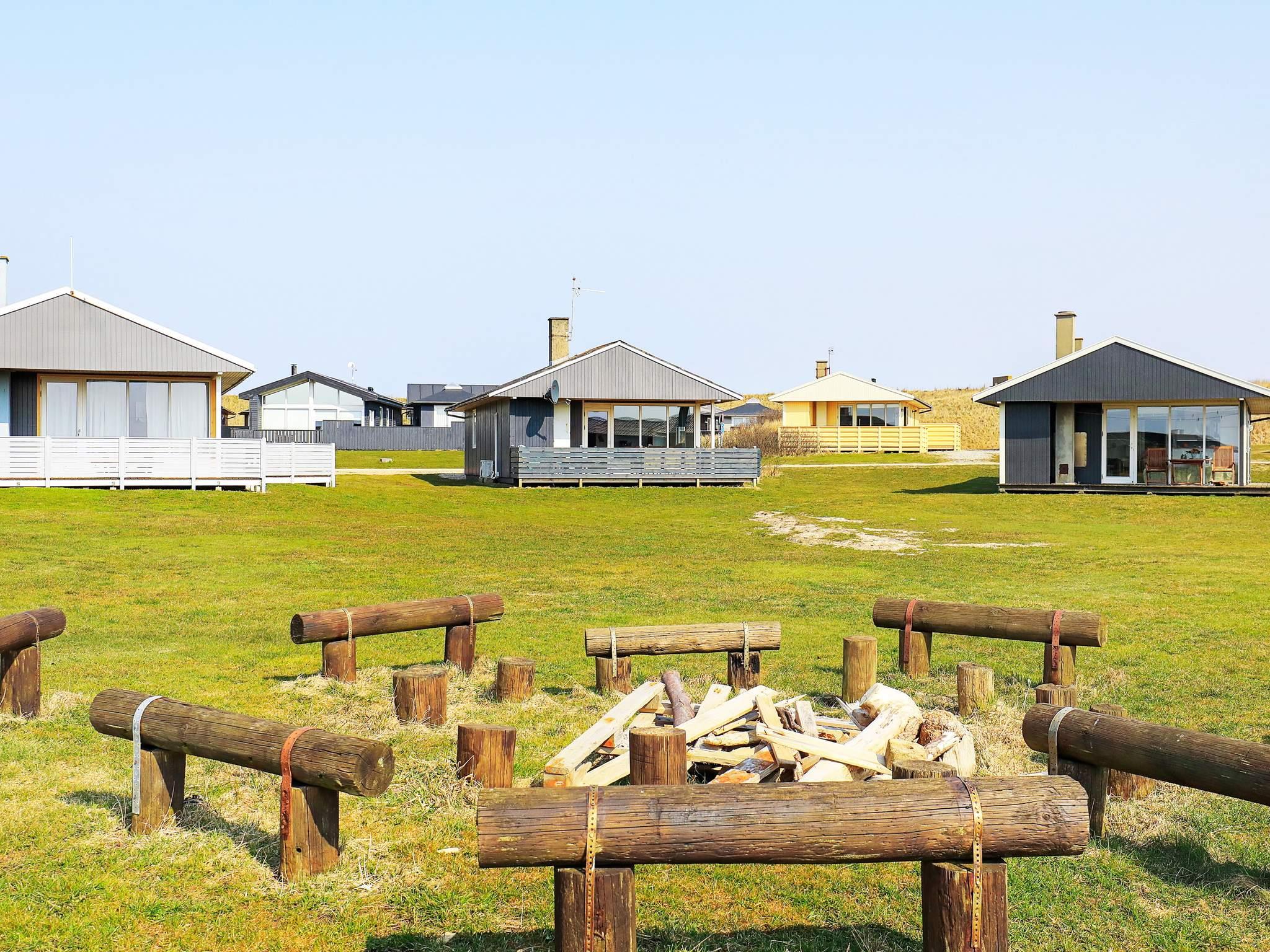 Der er både åben og overdækket terrasse med gode havemøbler samt grill, hvor I kan nyde aftensmaden mens solen går ned over Vesterhavet. Området byder også på et stort fællesområde med stor legeplads, fodboldbane samt bålplads, hvor I bl.a. kan lave snobrød samt skumfiduser. Udlejes ikke til ungdomsgrupper.