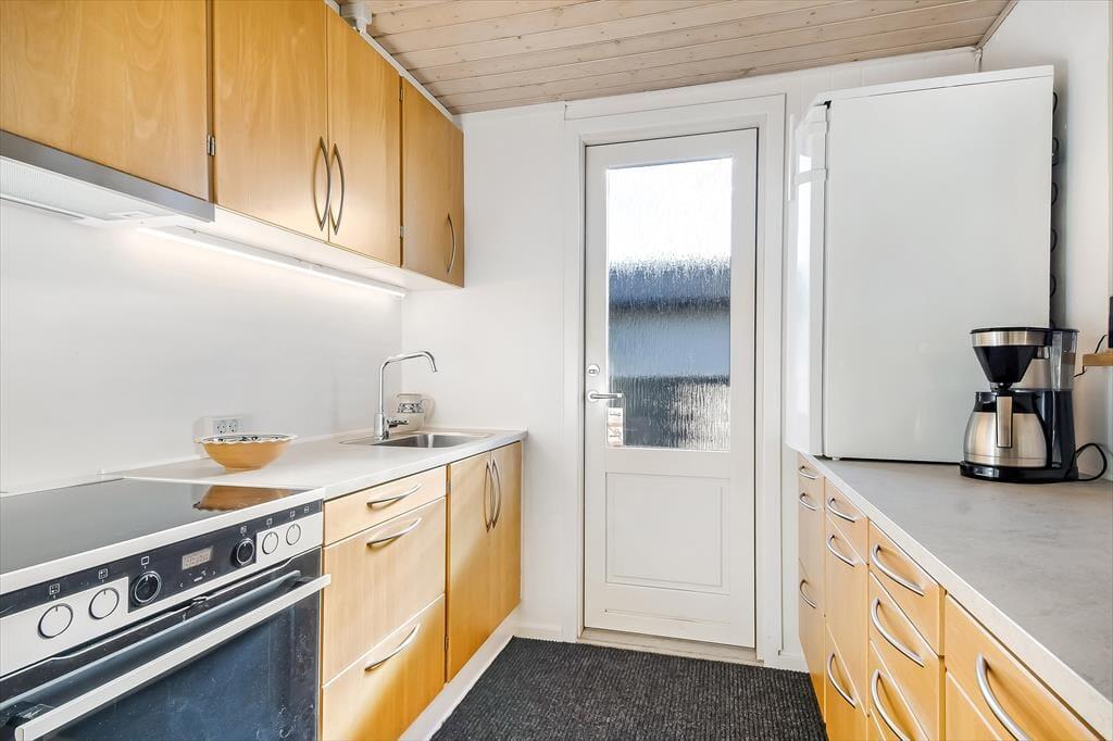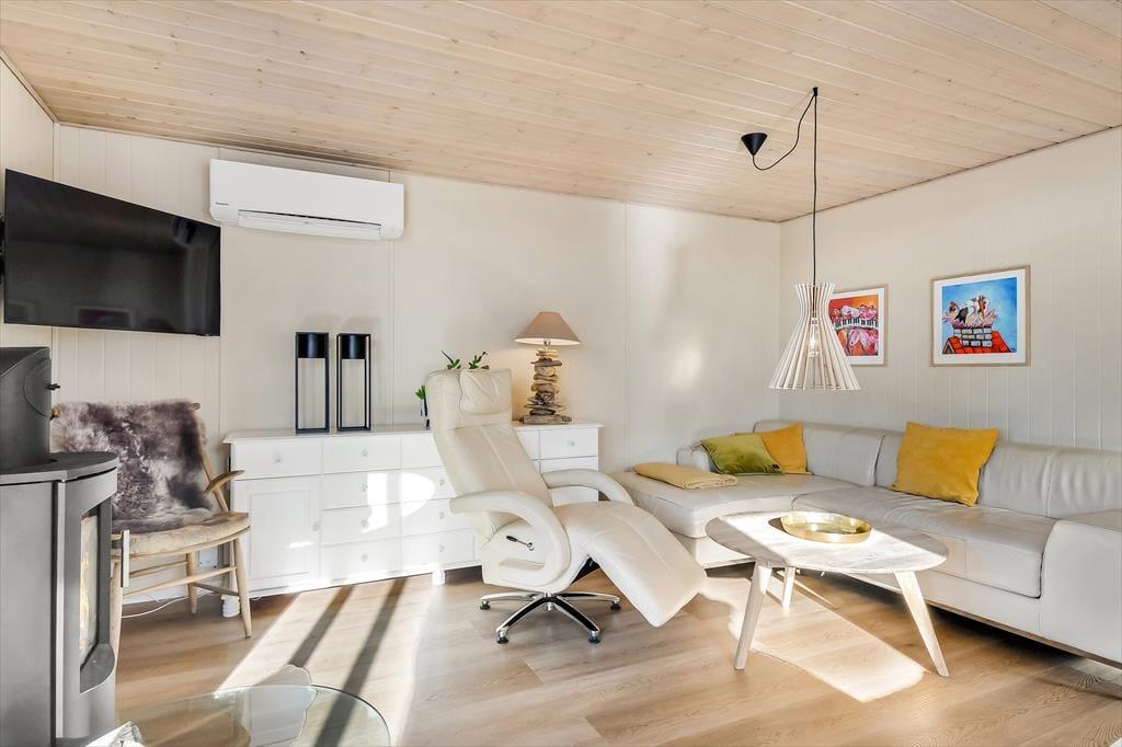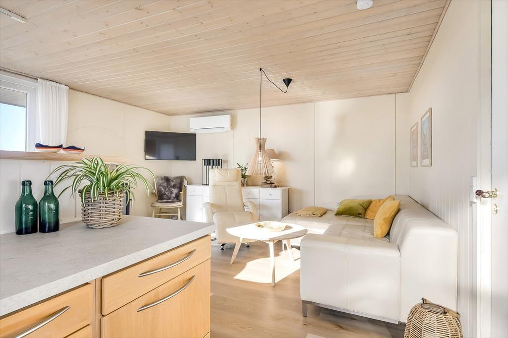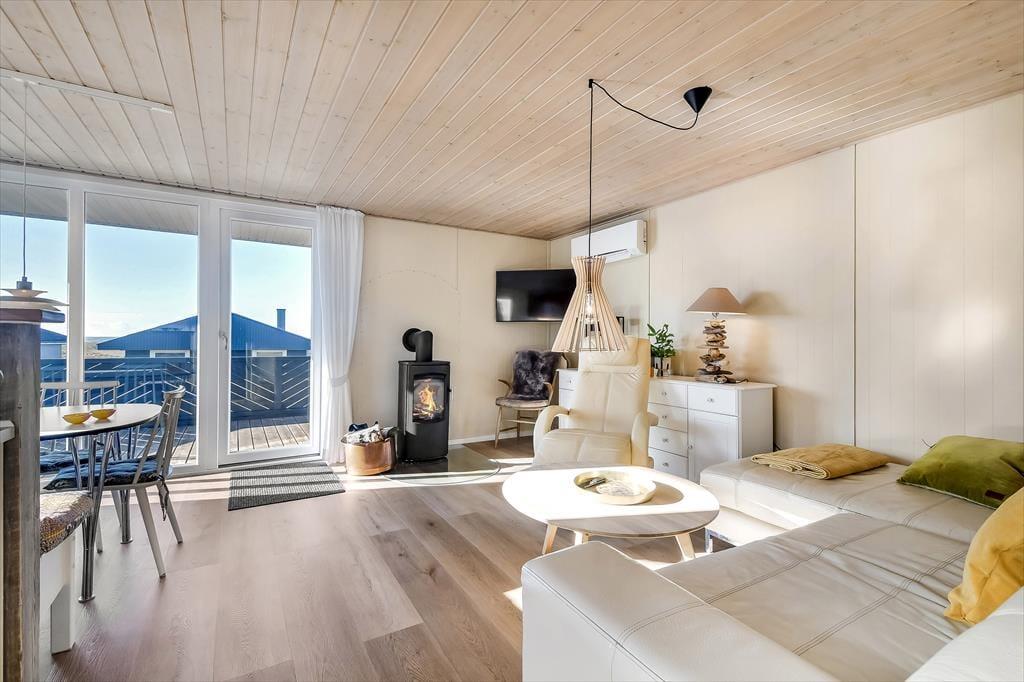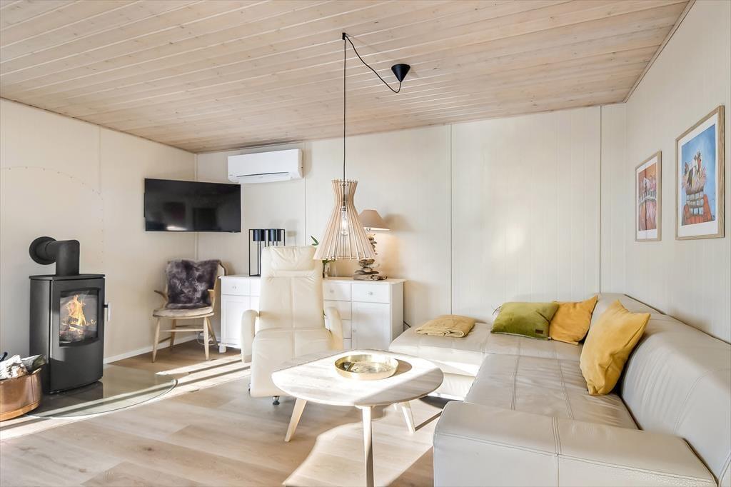 Når du træder ind i sommerhuset, mærker du med det samme den hyggelige og afslappende stemning. Her er en lys og varm indretning, som gør det nemt at føle sig hjemme – uanset om du er på ferie med familien, din partner eller måske medbringer en god bog og lidt alene-tid. Stuen er hjemmets hjerte, hvor sofaen og brændeovnen danner rammen om hyggelige aftener – især når vinden suser udenfor, og flammerne knitrer bag brændeovnens glas. Køkken og opholdsrum er forbundet i en åben løsning, så du kan være en del af fællesskabet, mens der laves mad eller drikkes eftermiddagskaffe. Lyset strømmer ind fra vinduerne og giver dig udsigt til det fredelige sommerhusområde, hvor Trans Ferieby forener landsbyidyl og feriestemning i skøn forening.