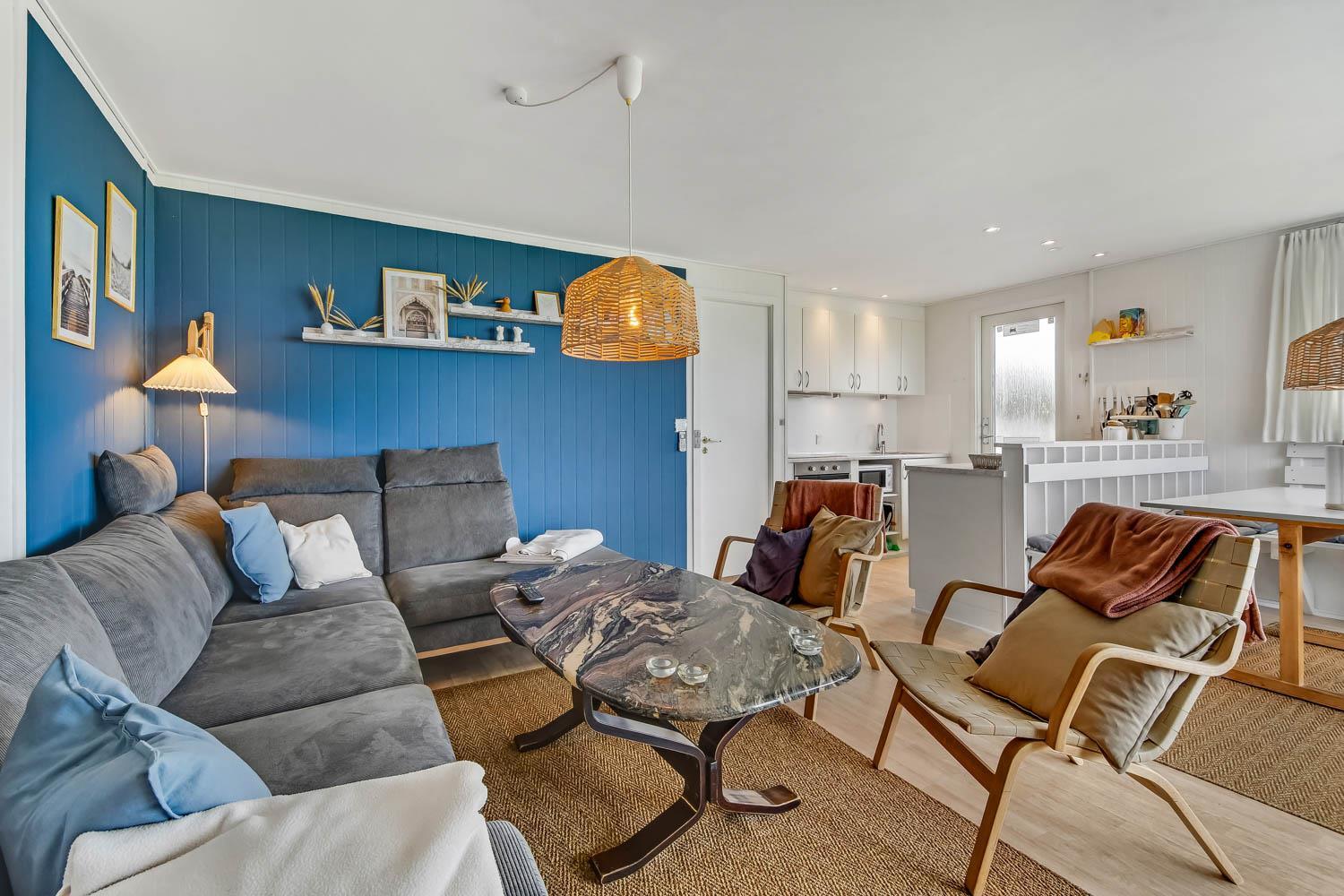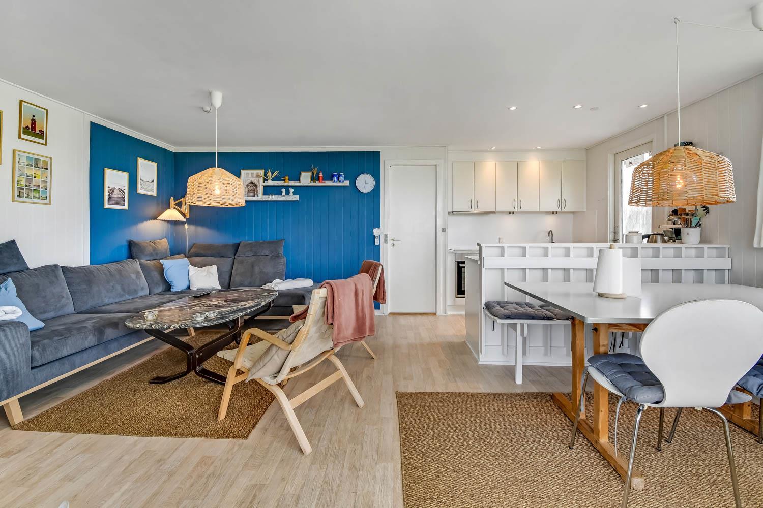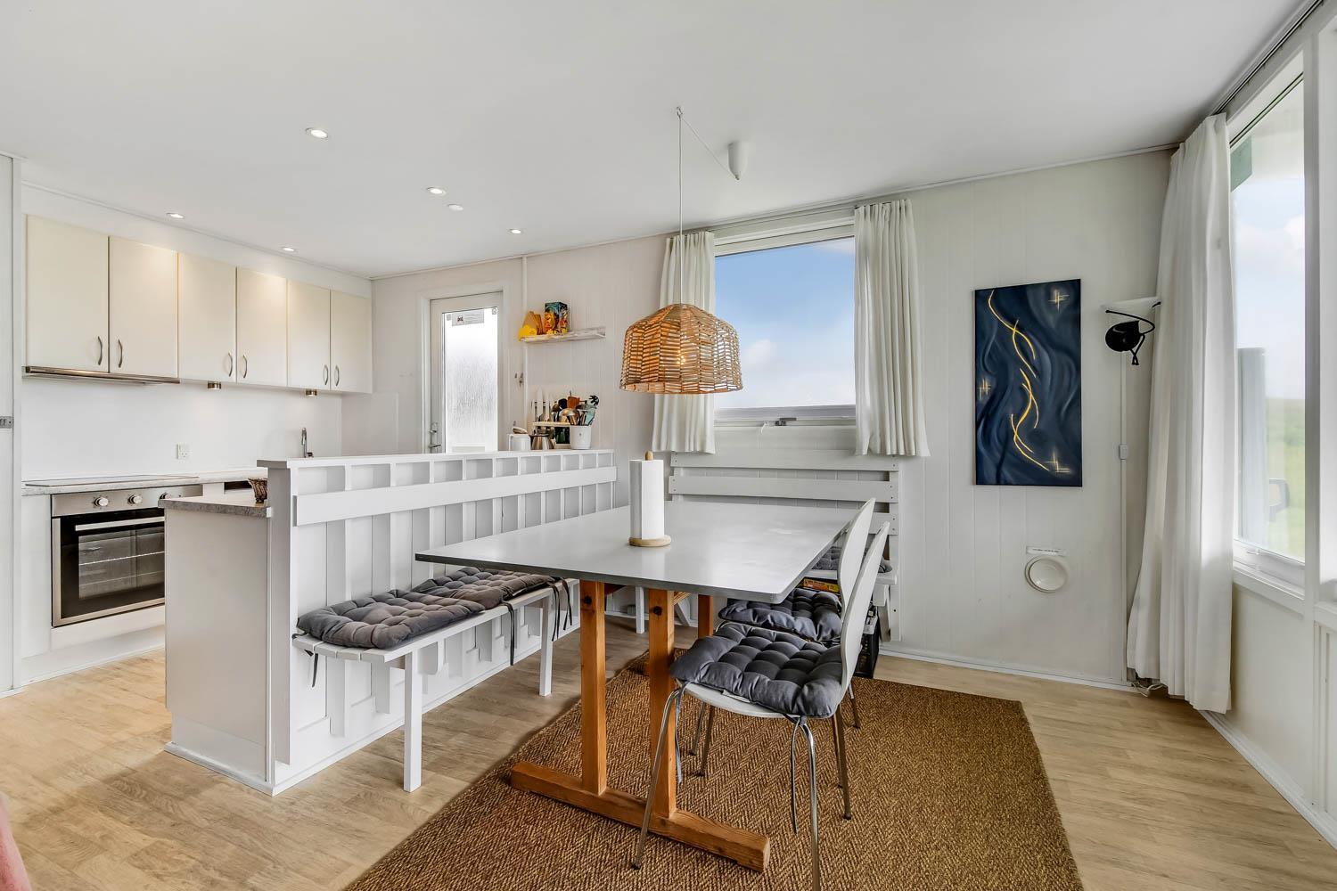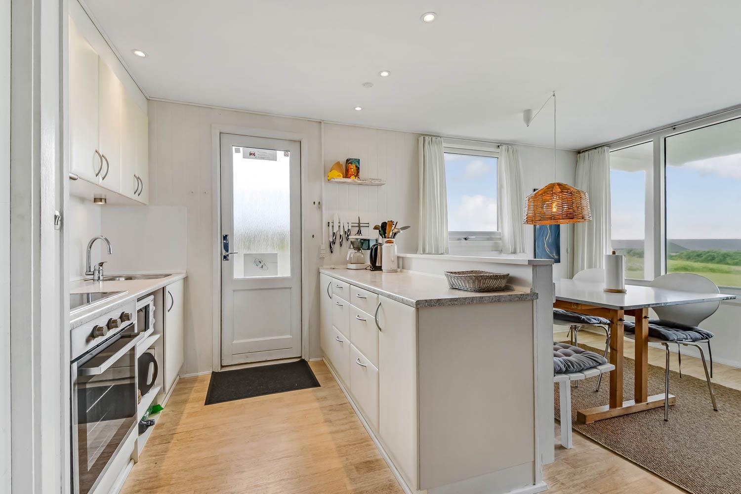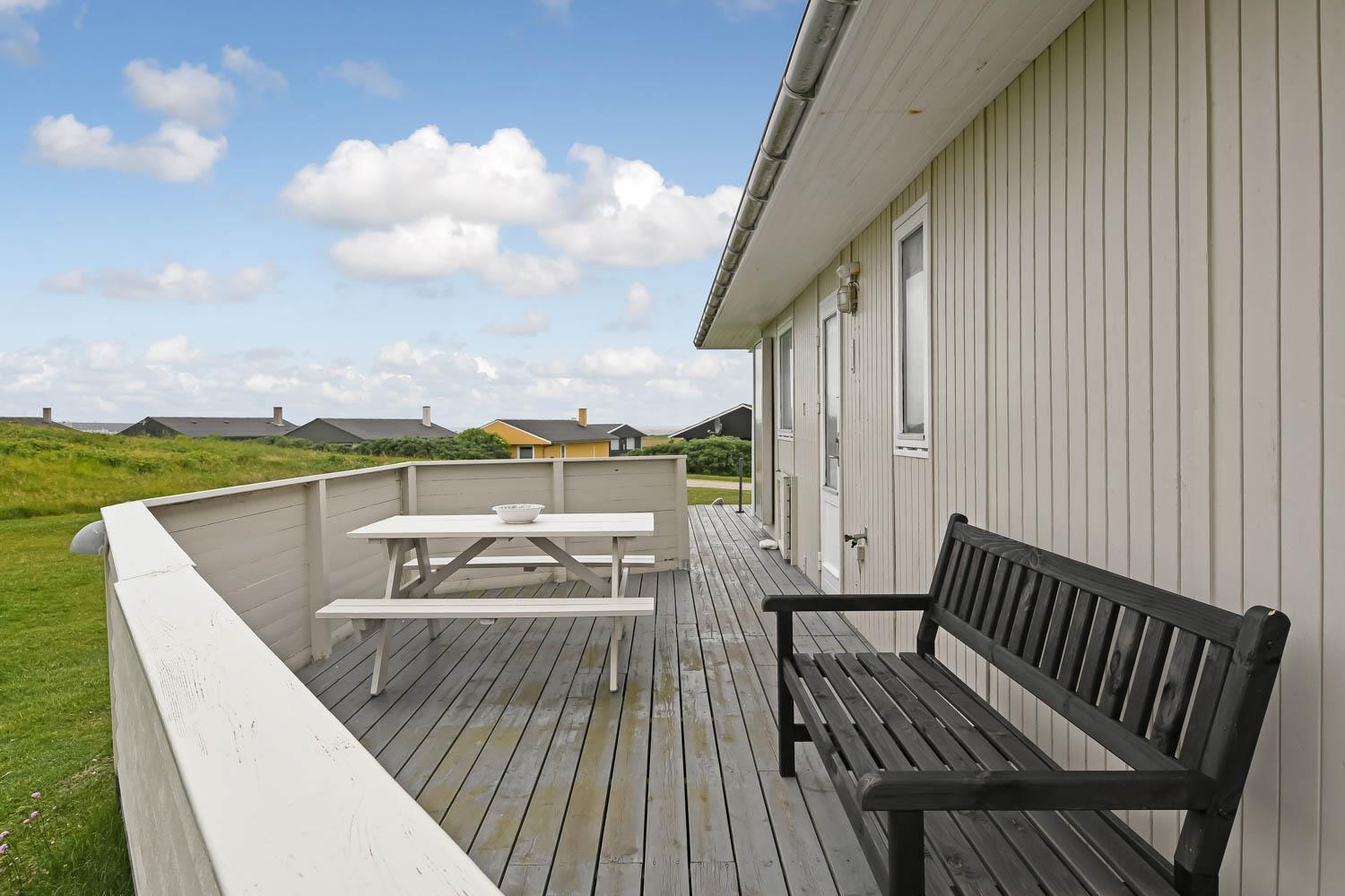 79 m2 træferiehus med 3 soveværelser (1DS, 2ES 1KS). I værelset med dobbeltseng er der et ekstra TV med tyske og danske kanaler. Kombineret opholdsstue og nyere køkkenhjørne. Lige på den anden side af køkkenhjørnet er spisebordet placeret. Herudover er der tv med danske og tyske kanaler samt mulighed for streaming af TV / radio / Apps via Chromecast. Så har du en mobiltelefon eller et andet device med kan du streame hvad du nu har abonnement. DVD/DC/DAB radio, stor hjørne polstersofa. En dejlig brændeovn og varmepumpe sørger for ekstra hygge og for at der altid er dejligt varm og ydermere til en billig pris grundet det installeret solaranlæg. Pænt køkkenhjørne med komfur med keramiske kogeplader, emhætte, køleskab med lille fryseboks. I udhuset står der en seperat fryser og et ekstra køleskab. Pænt badeværelse med toilet, bruser og håndvask. Fra stuen er er kig til Vesterhavet og klitterne. Der er trægulve i alle opholds- og soverum. Ikke ryger hus. Max 1. Husdyr tilladt.