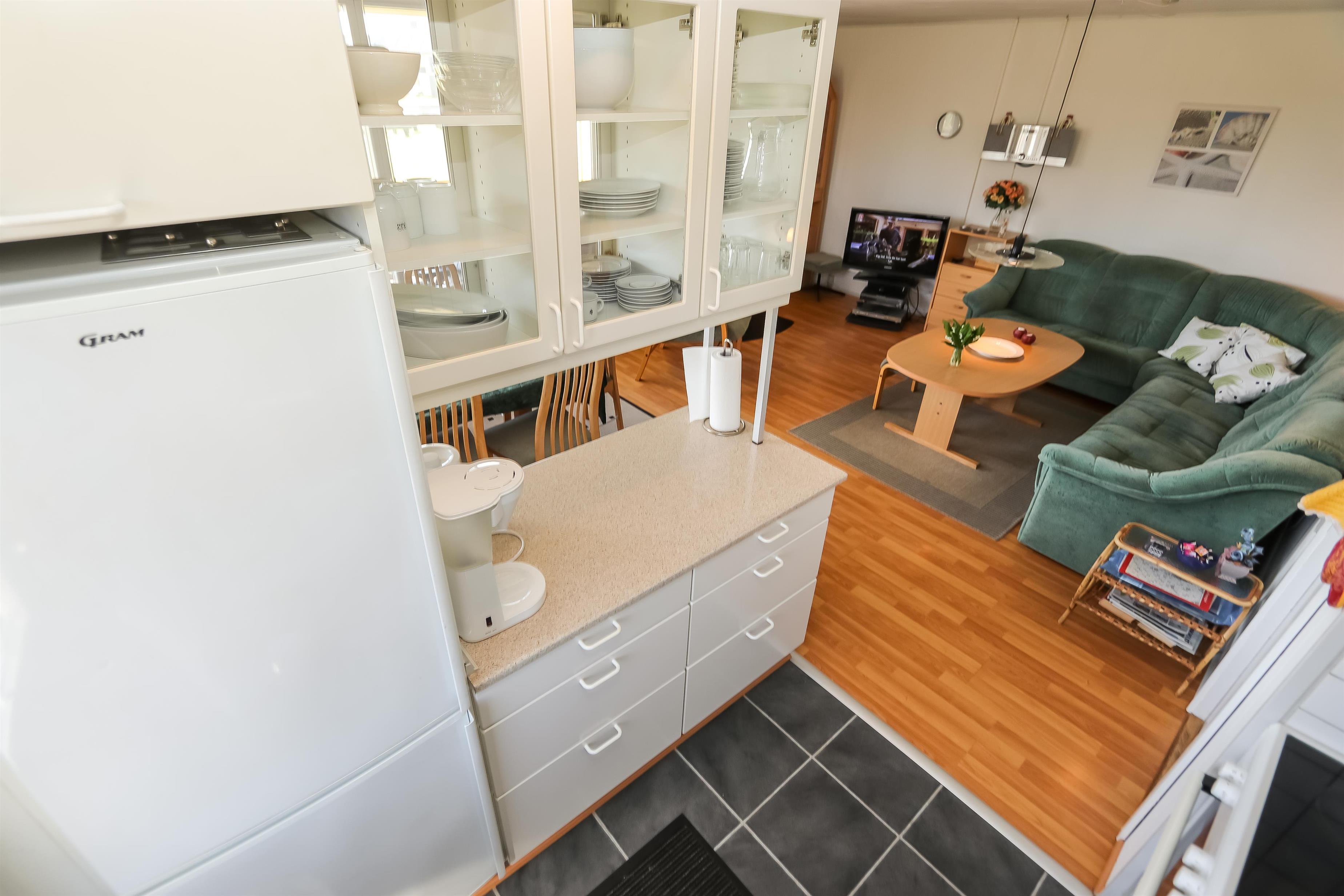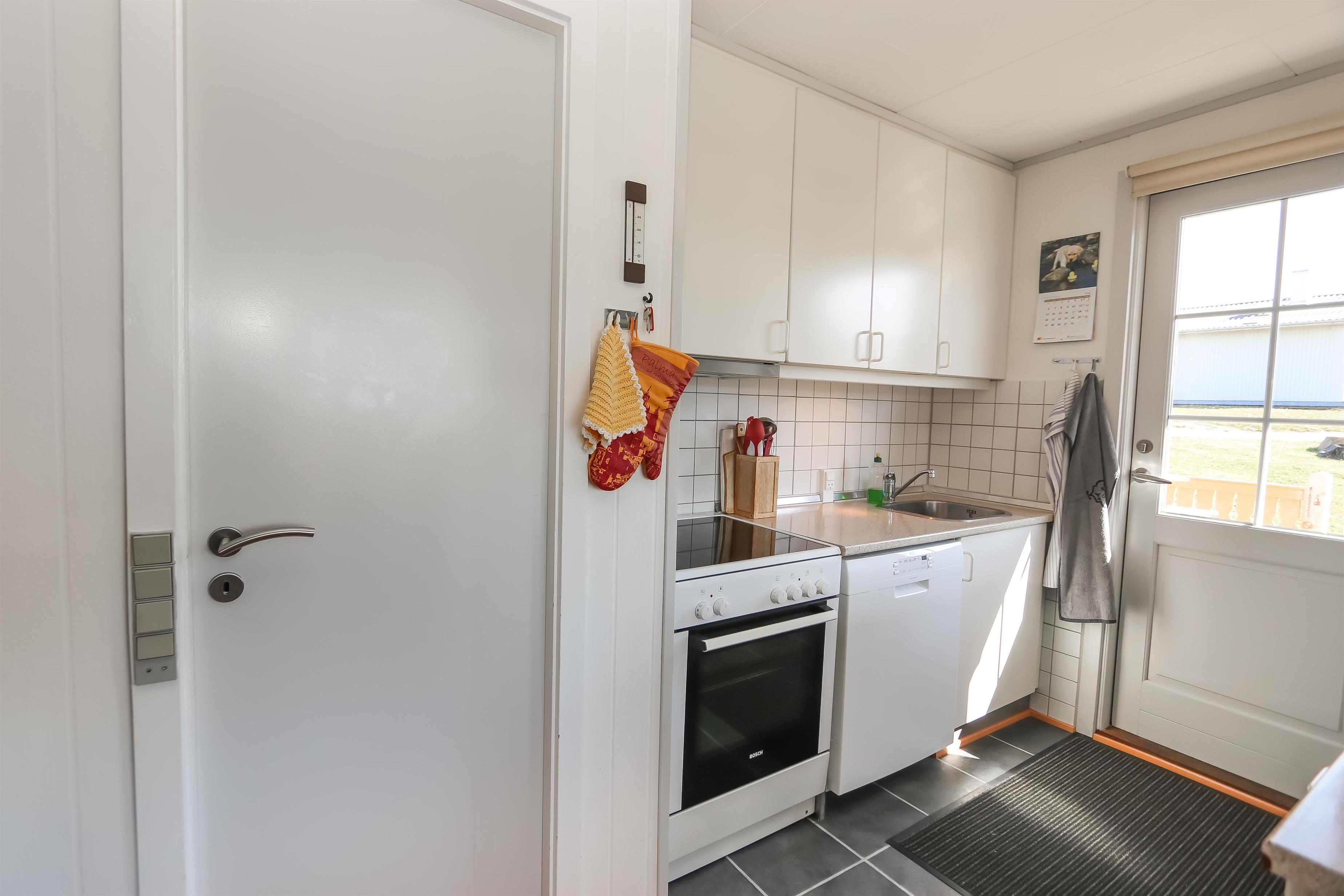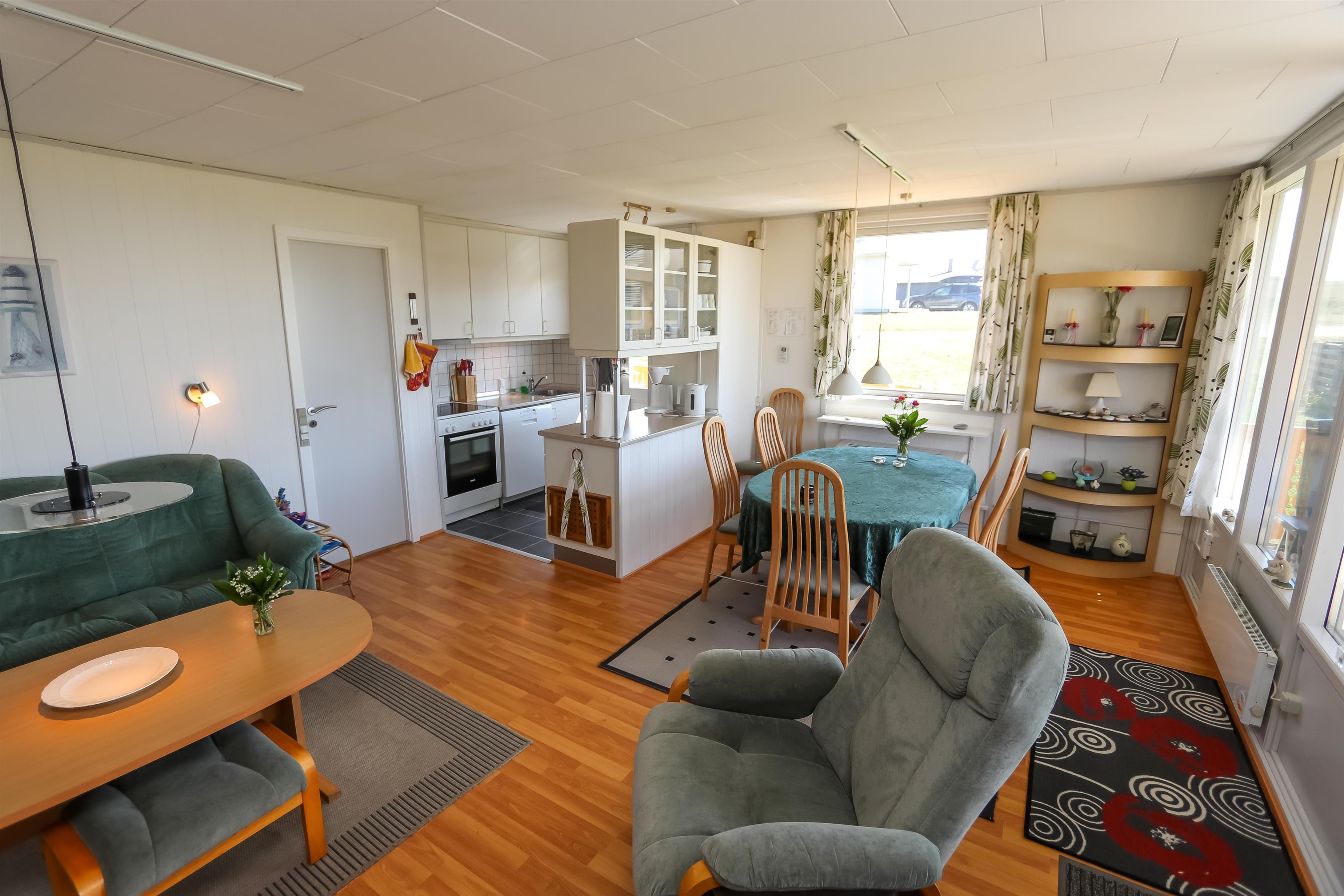 55 m2 træferiehus som er bygget i 1971 og delvis renoveret i 2015. 3 soveværelser (1DS, 1DS, 1KS). Kombineret opholdsstue og pænt, nyere køkkenhjørne. Lige på den anden side af køkkenhjørnet er spisebordet placeret. Herudover er der tv med danske og tyske kanaler, DVD/radio/CD. Varmepumpe og en dejlig brændeovn søger for en billig varmeregning og ekstra hygge. Pænt veludstyret køkkenhjørne med komfur med kogeplader og ovn, emhætte og køleskab med lille fryseboks. Flot badeværelse med toilet, bruser, håndvask, vaskemaskine og klinkegulv med gulvvarme. Fra stuen er er kig til Vesterhavet og klitterne. Der er trægulv i hele huset. Køle-/fryseskab i køjerummet. Ikke ryger hus. Max 1. husdyr tilladt.