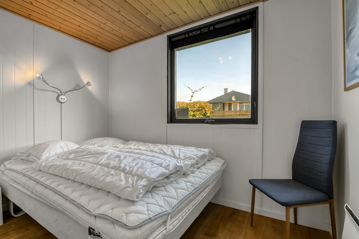 Roligt og velbeliggende træferiehus med gratis internet, delvis havudsigt og kun 100m fra Vesterhavet. Et dejligt og overskueligt hus til familien eller til parret som ønsker et dejligt hus i et område med mange muligheder.