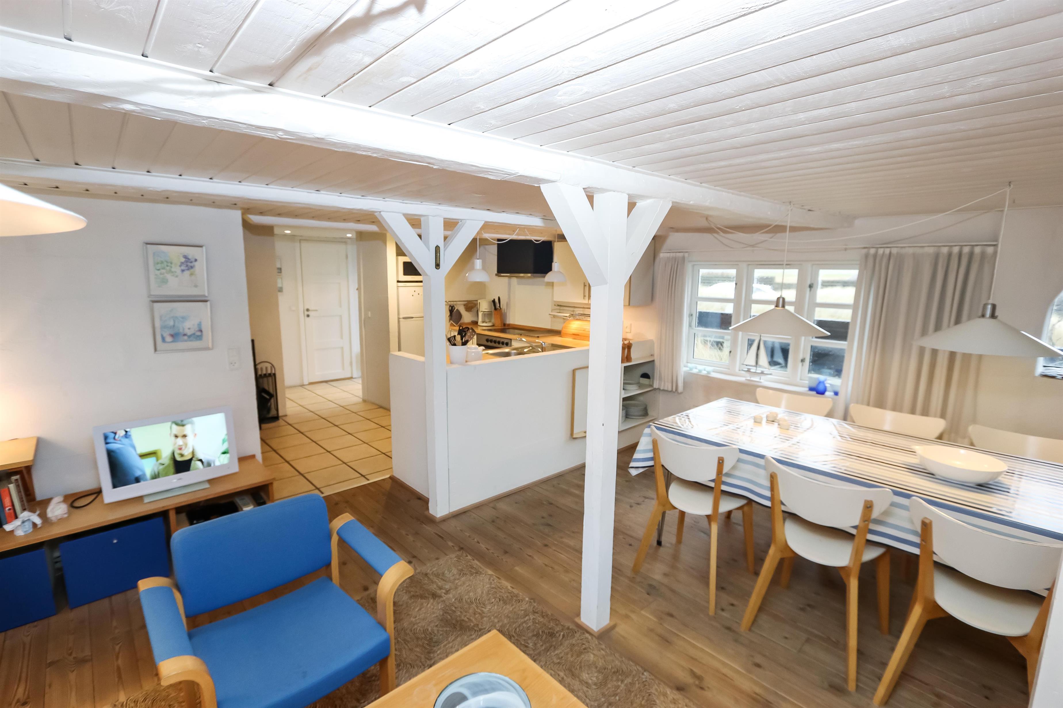 Kun 100 meter fra Nordsøen og den brede sandstrand ligger denne skønne ferielejlighed i to plan i en gammel, trelænget strandfogedgård. Her bor I midt i den vestjyske natur med ro, luft og havet lige i nærheden.