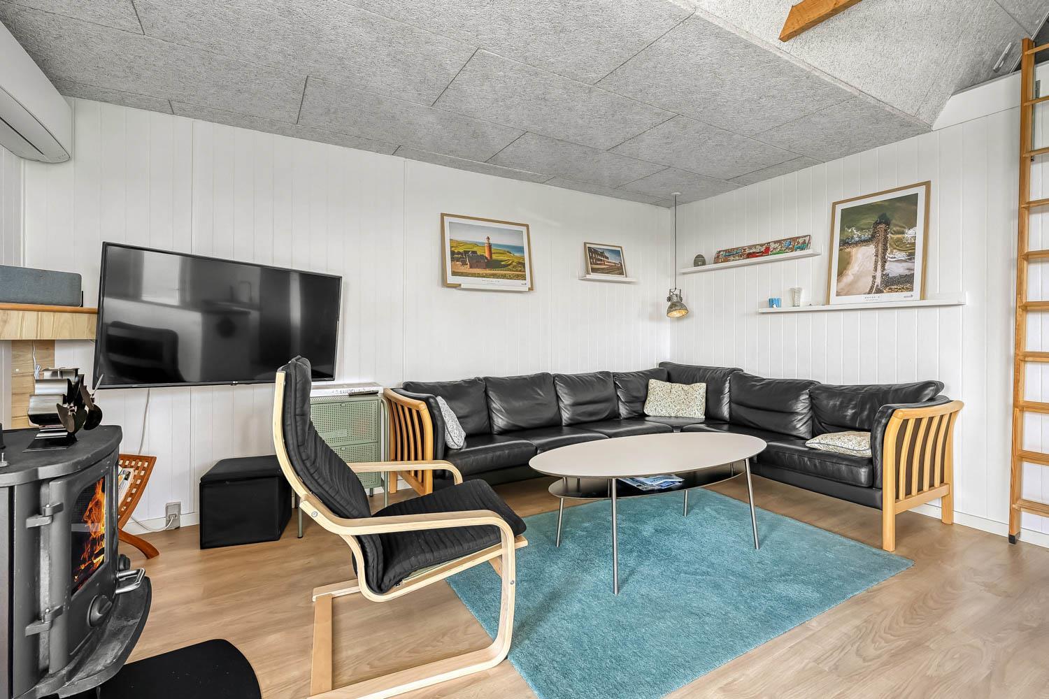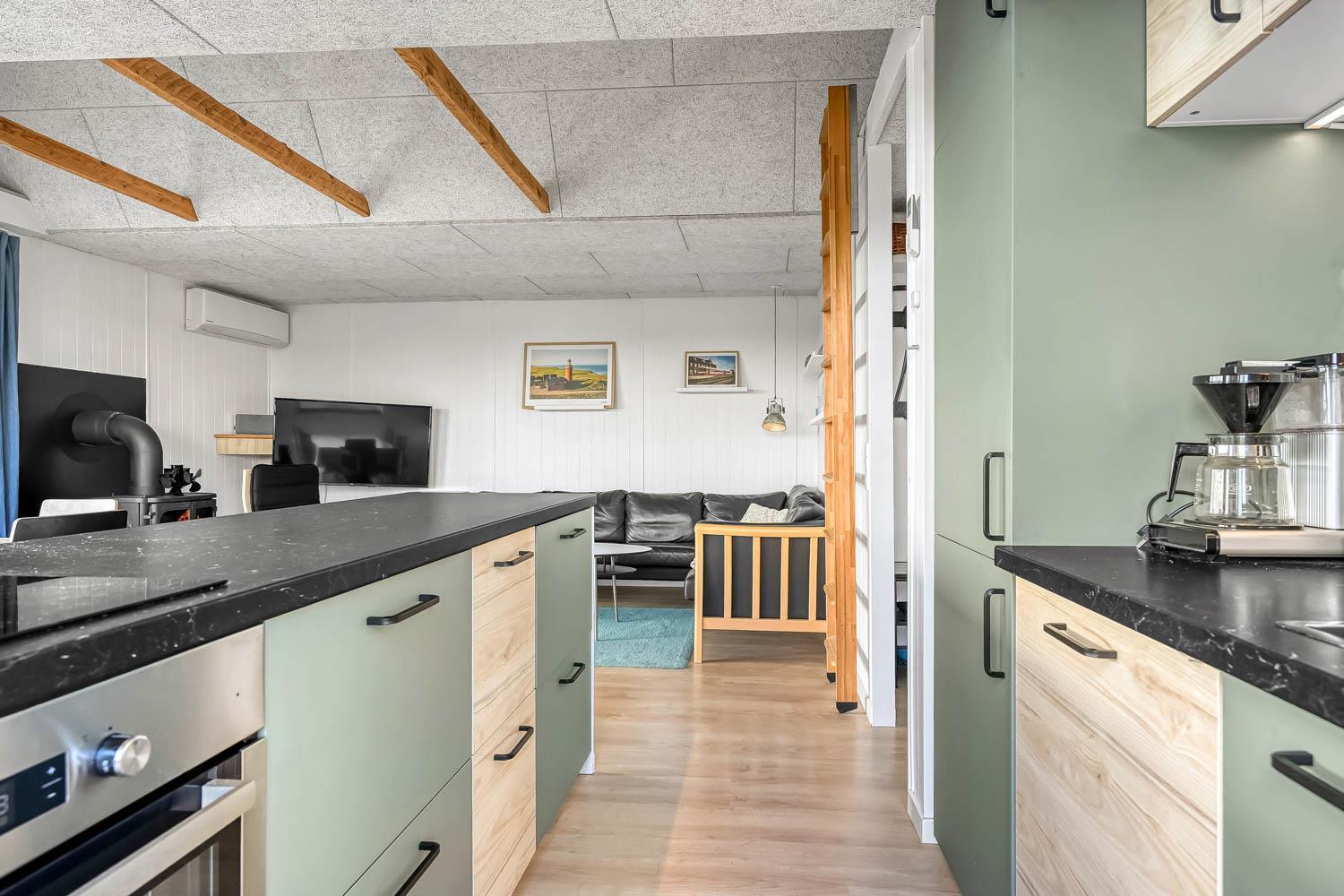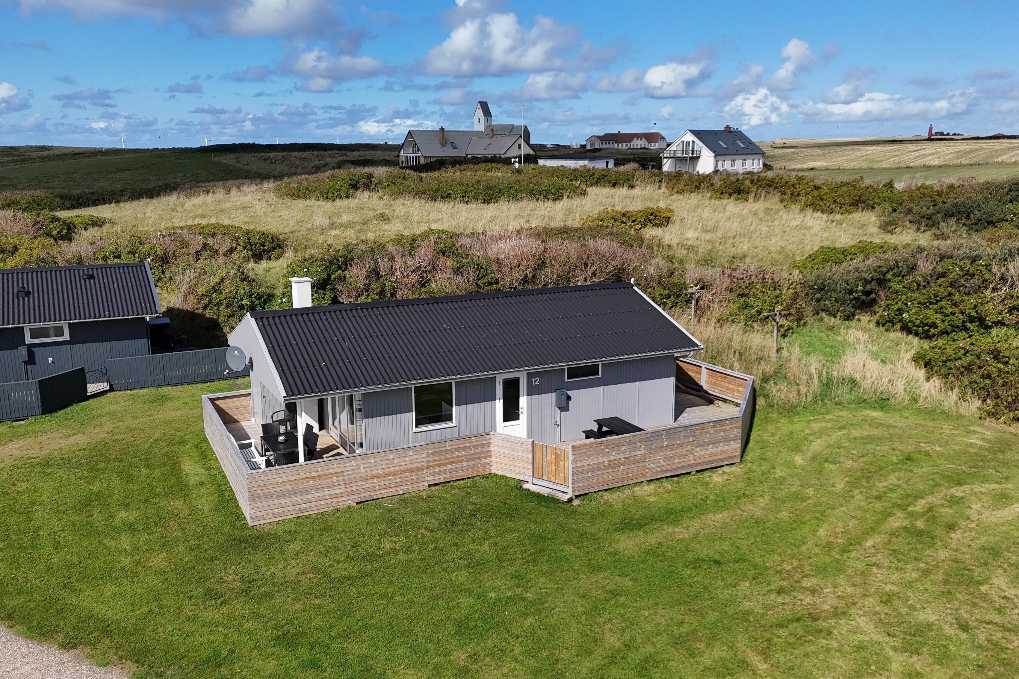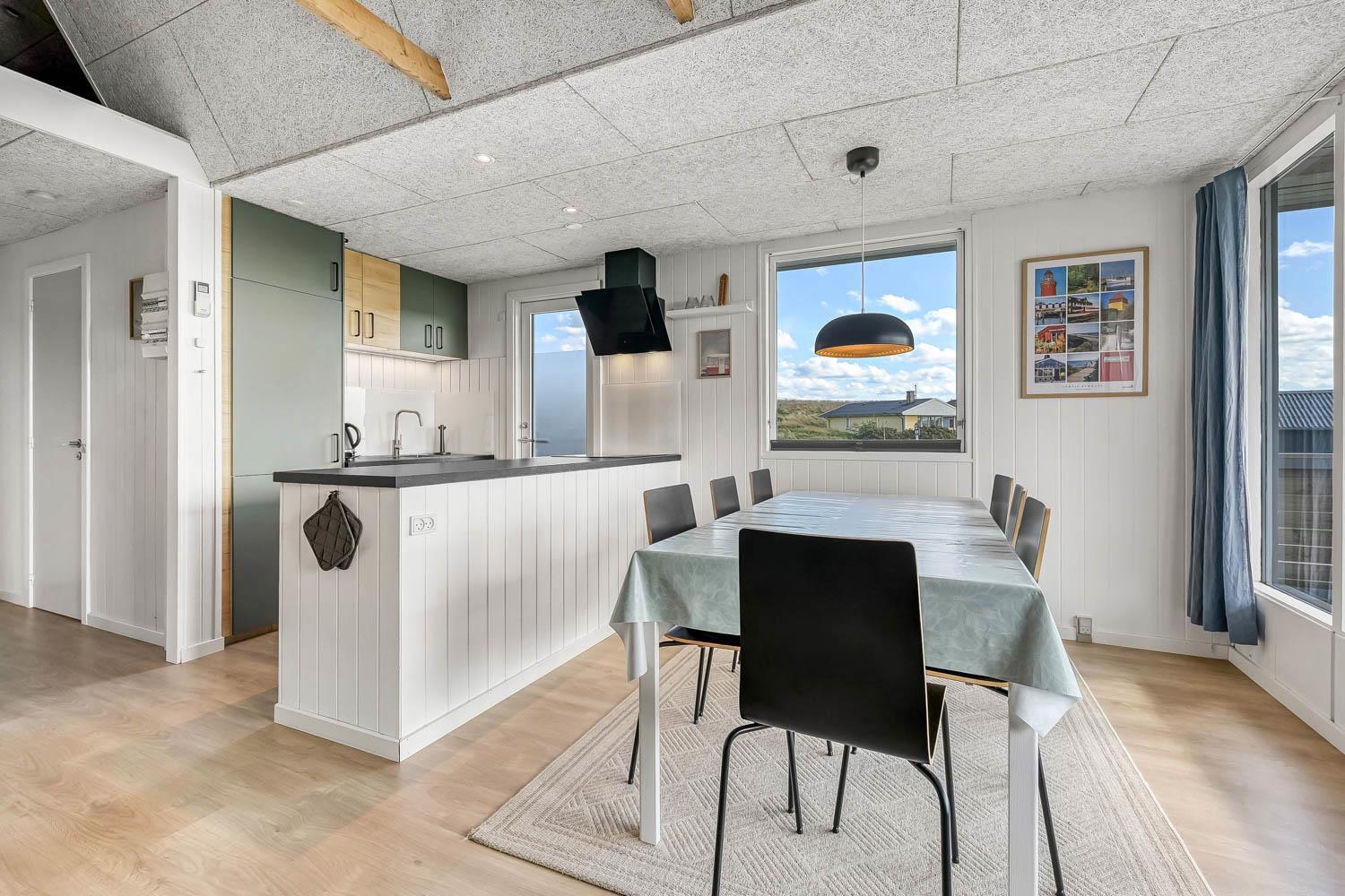 Pænt og hyggeligt inderettet, 55 m2 træferiehus med 3 soveværelser (1DS, 2ES 1S). Kombineret opholdsstue og nyt køkkenhjørne. Lige på den anden side af køkkenhjørnet er spisebordet placeret. Herudover er der tv med danske og tyske kanaler samt mulighed for streaming af TV / radio / Apps via Chromecast. En dejlig brændeovn og varmepumpe sørger for ekstra hygge og for at der altid er dejligt varmt uanset årstid og hjælper til med en billigere forbrugsafregning. Pænt og nyt køkkenhjørne med komfur med induktions kogeplader, emhætte, opvaskemaskine, mikroovn, køle-/fryseskab. Pænt badeværelse med toilet, bruser og håndvask. Fra stuen er er kig til Vesterhavet og klitterne. Der er Linoliumsgulve i alle opholds- og i soverum med 2S, i værelse med 1S og værelset med 1DS er der gulvtæppe. Ikke ryger hus. Husdyr ikke tilladt.