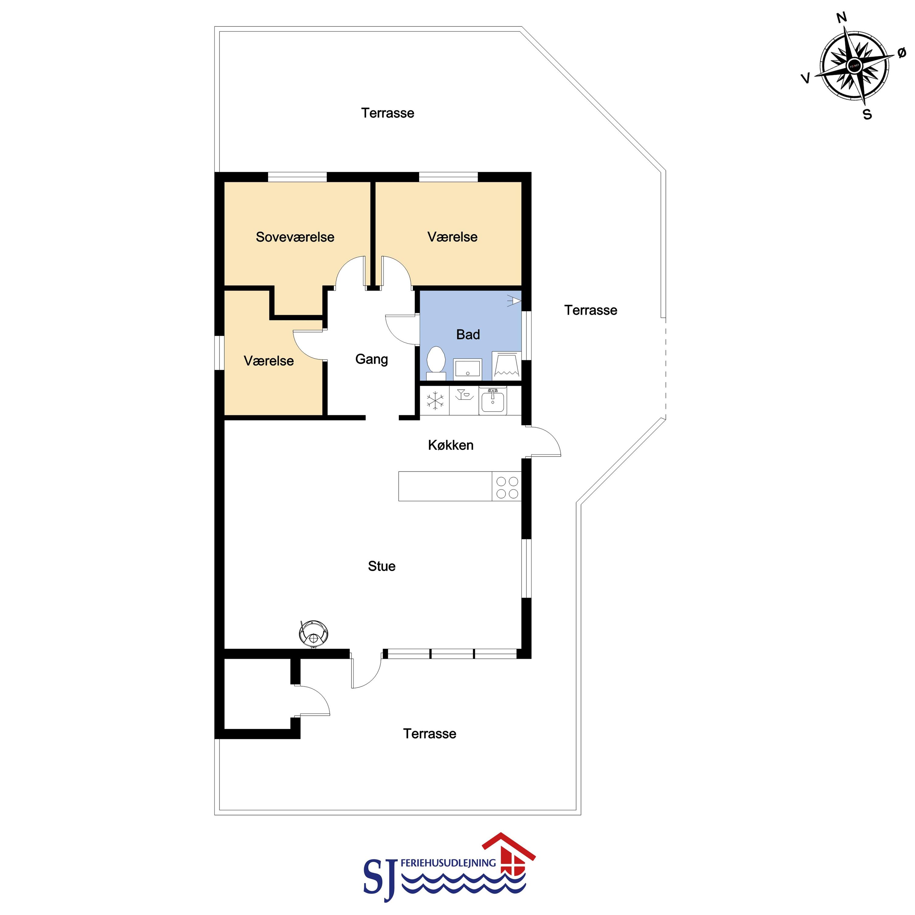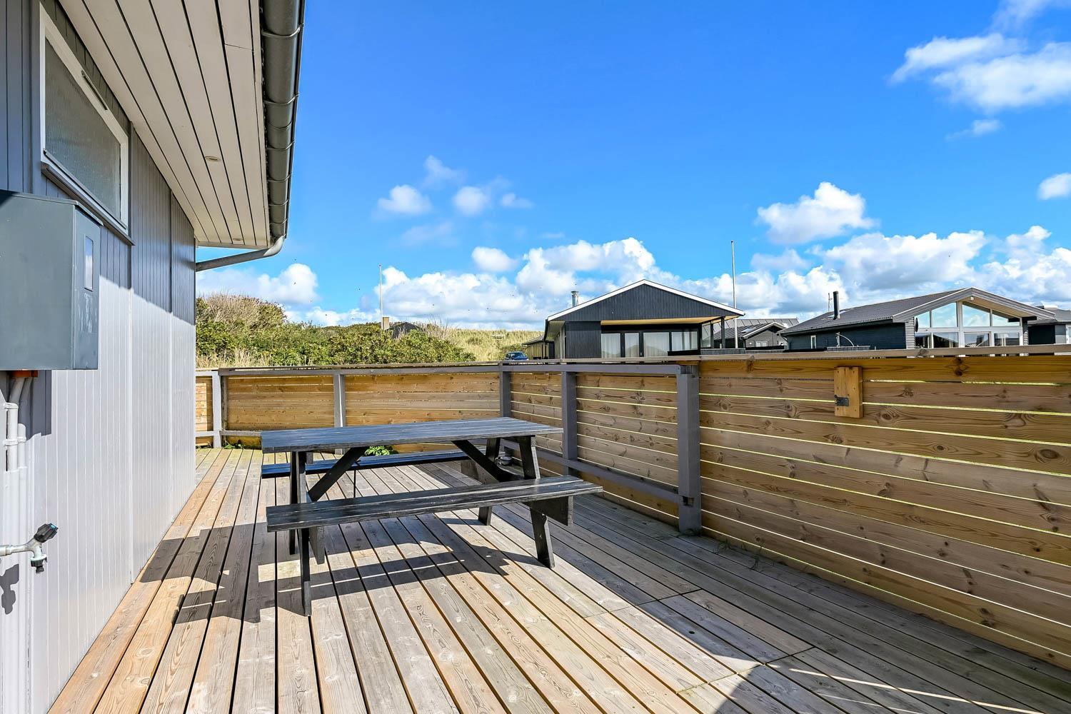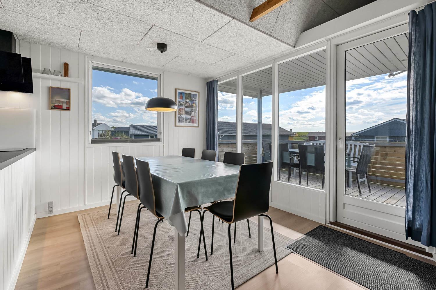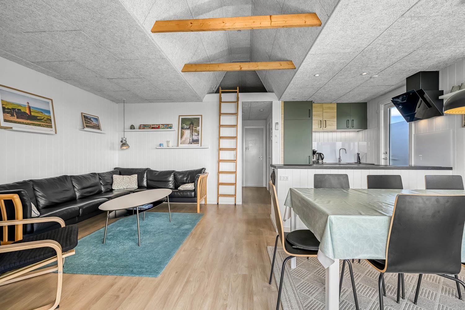 Pænt og hyggeligt inderettet, 55 m2 træferiehus med 3 soveværelser (1DS, 2ES 1S). Kombineret opholdsstue og nyt køkkenhjørne. Lige på den anden side af køkkenhjørnet er spisebordet placeret. Herudover er der tv med danske og tyske kanaler samt mulighed for streaming af TV / radio / Apps via Chromecast. En dejlig brændeovn og varmepumpe sørger for ekstra hygge og for at der altid er dejligt varmt uanset årstid og hjælper til med en billigere forbrugsafregning. Pænt og nyt køkkenhjørne med komfur med induktions kogeplader, emhætte, opvaskemaskine, mikroovn, køle-/fryseskab. Pænt badeværelse med toilet, bruser og håndvask. Fra stuen er er kig til Vesterhavet og klitterne. Der er Linoliumsgulve i alle opholds- og i soverum med 2S, i værelse med 1S og værelset med 1DS er der gulvtæppe. Ikke ryger hus. Husdyr ikke tilladt.