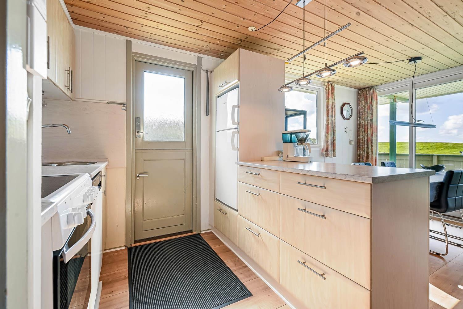 Pænt og hyggeligt indettet, 56 m2 træferiehus fra 1971 og renoveret i 2008. Vægge og lofter er i træ og der er 3 soveværelser (1DS, 2ES 1ES). Kombineret opholdsstue og køkkenhjørne. Lige på den anden side af køkkenhjørnet er spisebordet placeret. Opholdsstue med polstermøbler, tv med danske og tyske kanaler og cromecast til streaming, radio/CD og en dejlig brændeovn samt varmepumpe som skaber ekstra hygge og hjælper med at sparer på varmeregningen. Pænt køkkenhjørne med Induktions kogeplader, emhætte, mikroovn, køleskab med fryseboks og opvaskemaskine. Ekstra fryser på 80L i køjerummet. Pænt badeværelse med toilet, bruser og håndvask samt en minivaskemaskine. Der er linoleumsgulve i alle rum, som gør at huset er nemt at rengøre. Ikke ryger hus. Max 1 husdyr tilladt.