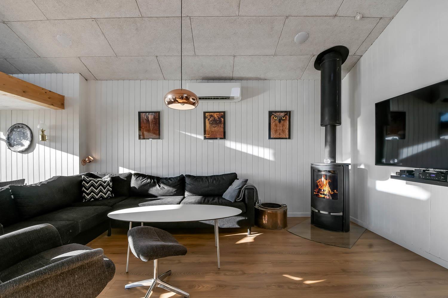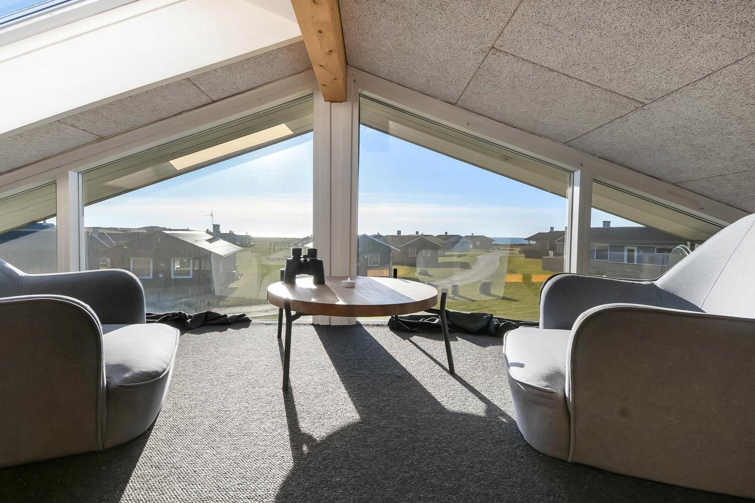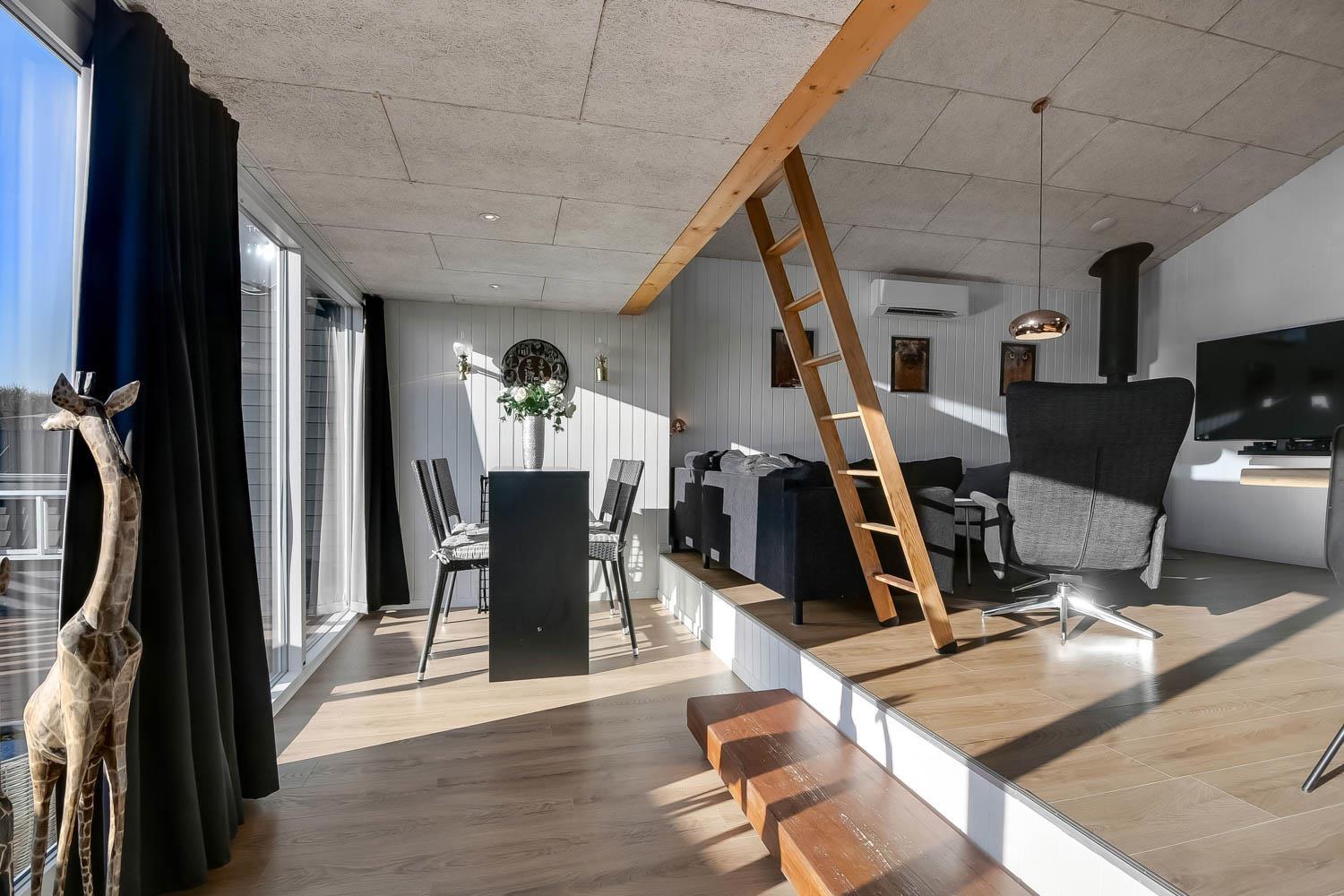 Der er rig mulighed for at nyde ferien i ro og mag i dette feriehus som byder på flere hyggelige siddepladser, som er perfekte til at læse en god bog, mens børnene leger i området, herfra er der også mulighed for at nyde udsigten til Vesterhavet og området. Sommerhuset er udstyret med en energibesparende varmepumpe og en brændeovn, som begge giver en behagelig varme og hvilket betyder lavere varmeudgifter. Huset er indrettet med et åbent køkken/opholdsrum som er med moderne møbler, højhastighedsinternet og Smart TV med mulighed for at streame dine egne tv-tjenester. Køkkenet byder blandt andet på induktionskomfur, separat ovn med grill, mikroovn, opvaskemaskine, kaffemaskine og køle/fryseskab. Badeværelse: brusekabine, toilet og 2 personers spa. Gæstetoilet: toilet og håndvask, samt vaskemaskine og tørretumbler. Der er to soveværelser i selve huset, begge med gode dobbeltsenge og tv. Der er også hems under taget med yderligere tre sovepladser og havudsigt. Sidst, men ikke mindst, ved siden af hovedhuset ??er der et separat anneks med en dobbeltseng og en enkeltseng.
