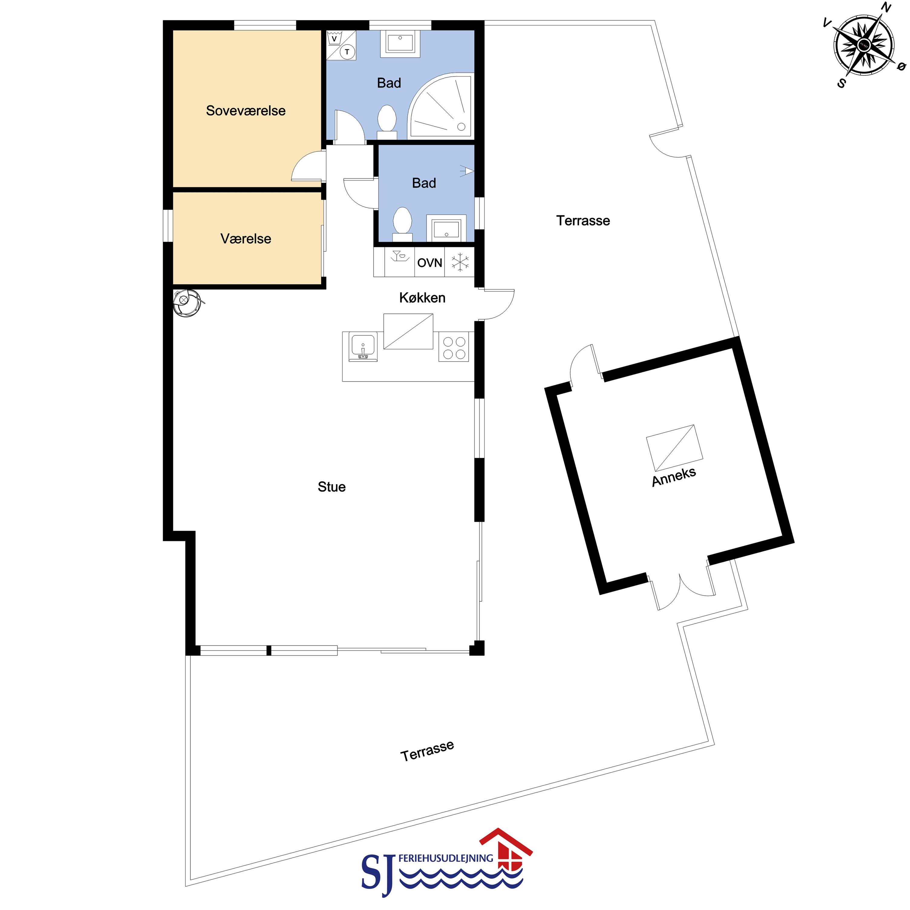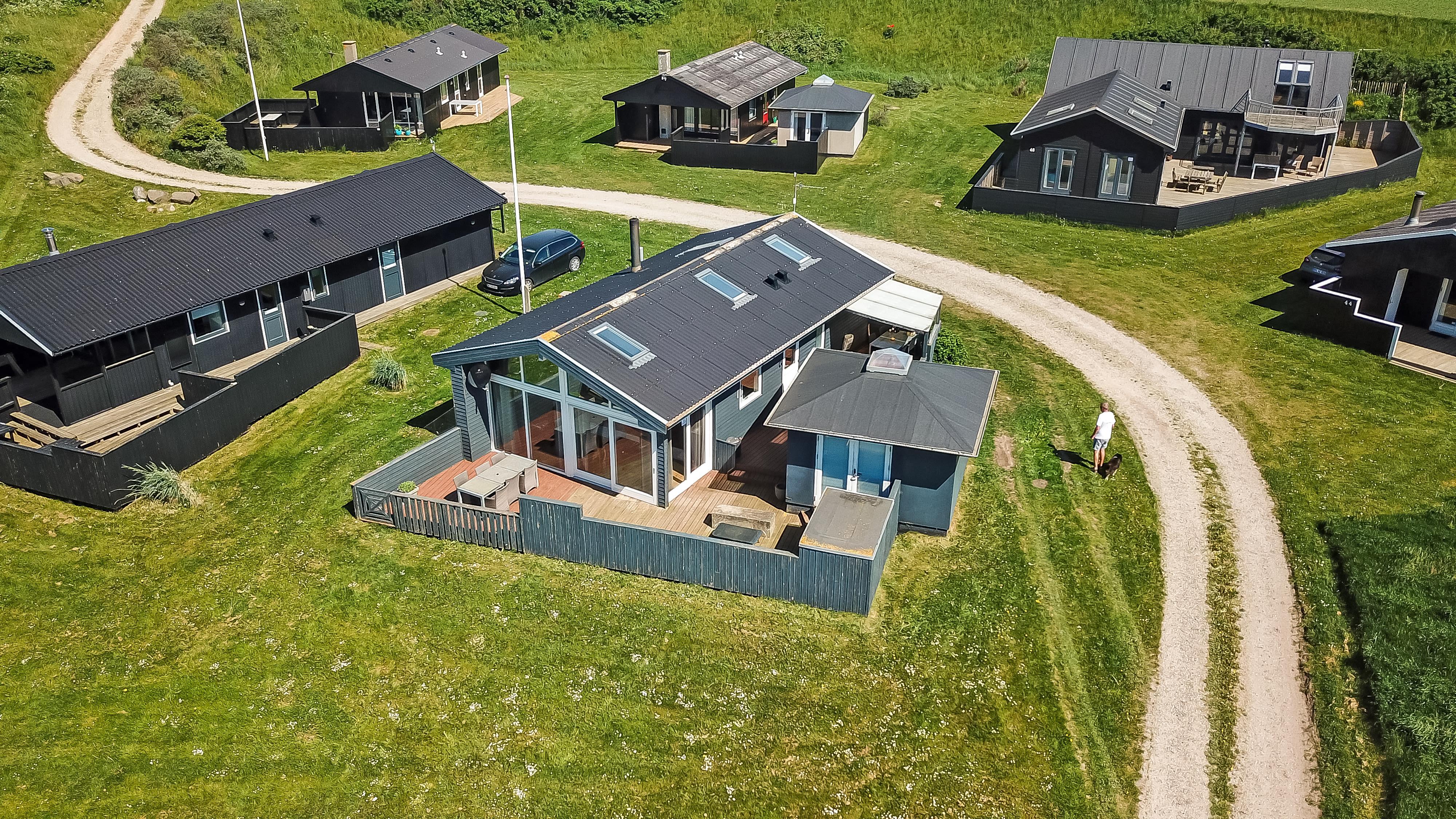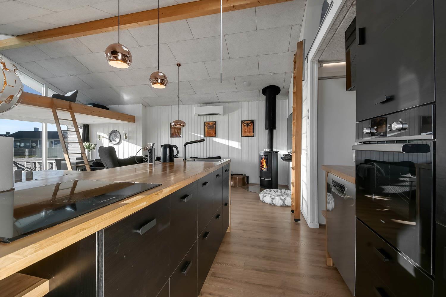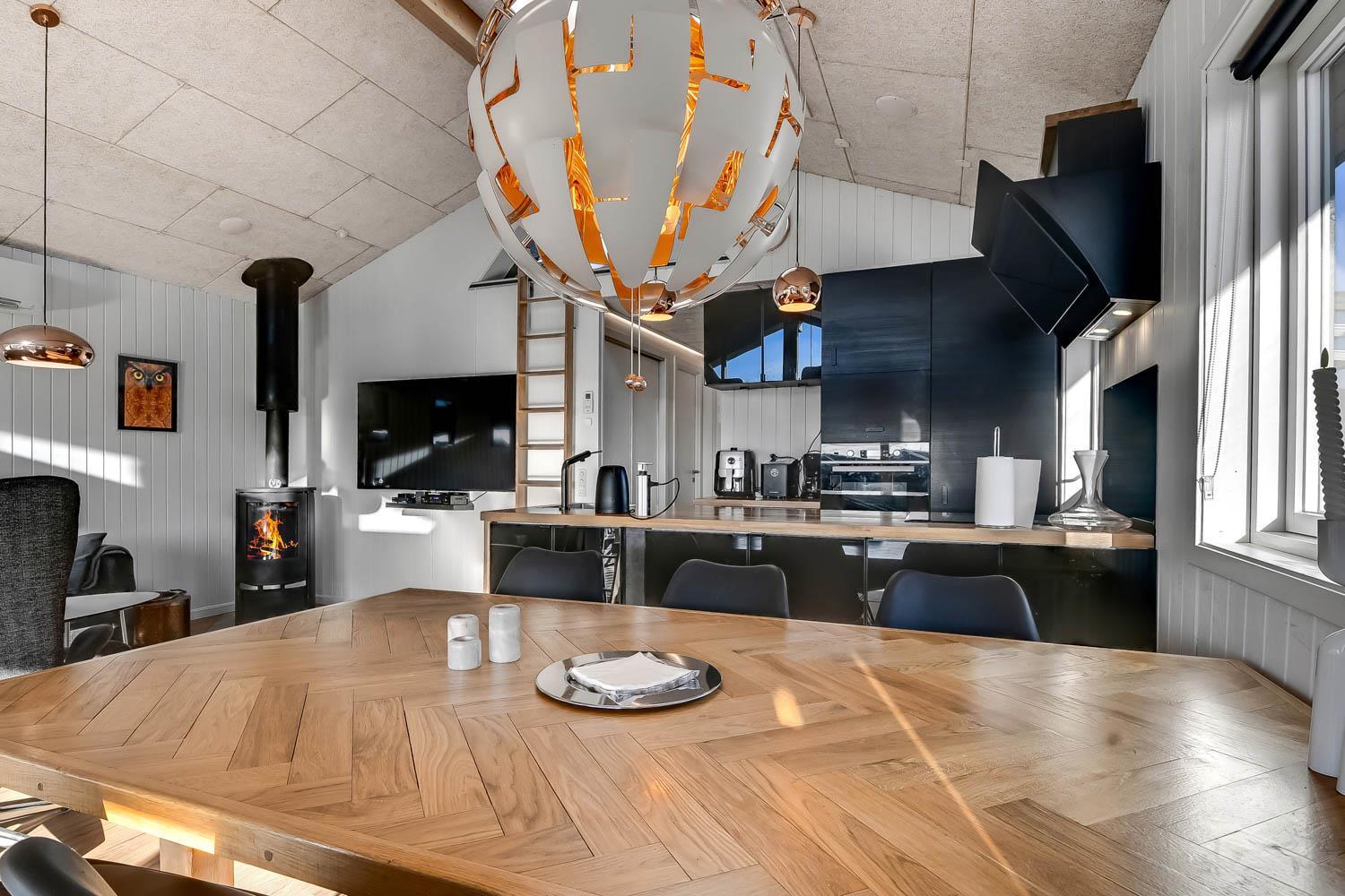 Der er rig mulighed for at nyde ferien i ro og mag i dette feriehus som byder på flere hyggelige siddepladser, som er perfekte til at læse en god bog, mens børnene leger i området, herfra er der også mulighed for at nyde udsigten til Vesterhavet og området. Sommerhuset er udstyret med en energibesparende varmepumpe og en brændeovn, som begge giver en behagelig varme og hvilket betyder lavere varmeudgifter. Huset er indrettet med et åbent køkken/opholdsrum som er med moderne møbler, højhastighedsinternet og Smart TV med mulighed for at streame dine egne tv-tjenester. Køkkenet byder blandt andet på induktionskomfur, separat ovn med grill, mikroovn, opvaskemaskine, kaffemaskine og køle/fryseskab. Badeværelse: brusekabine, toilet og 2 personers spa. Gæstetoilet: toilet og håndvask, samt vaskemaskine og tørretumbler. Der er to soveværelser i selve huset, begge med gode dobbeltsenge og tv. Der er også hems under taget med yderligere tre sovepladser og havudsigt. Sidst, men ikke mindst, ved siden af hovedhuset ??er der et separat anneks med en dobbeltseng og en enkeltseng.