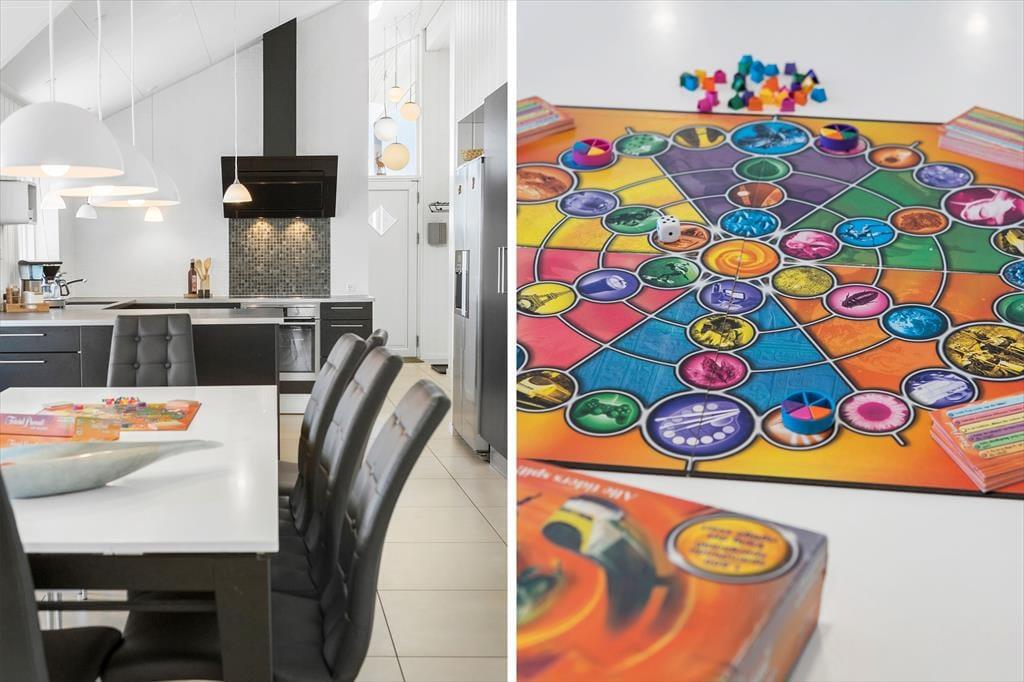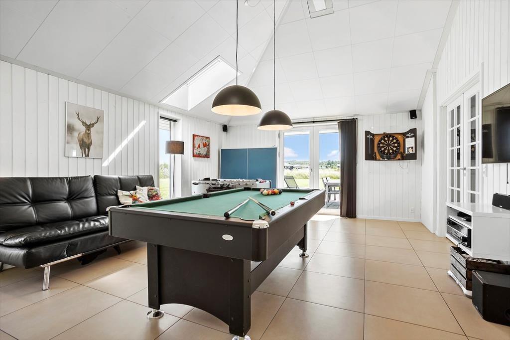 I den ene ende af sommerhuset finder man et aktivitetsrum med sofa, sækkestol, bordfodbold, pool/billard, tv og wii-spillekonsol. Et rigtigt hyggeligt rum, hvor børnene kan more sig i flere timer, og hele familien kan dyste mod hinanden, hvis vejret en dag er trist og gråt.