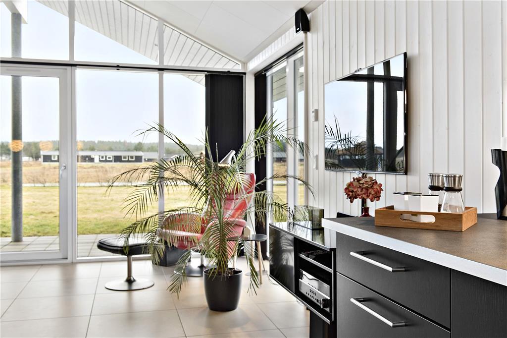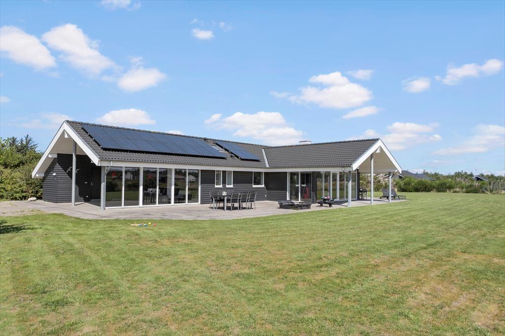 Dette sommerhus er noget af det bedste, vi kan tilbyde i Tranum- området, ja faktisk i hele Nordjylland. Her kan være op til 12 personer, og her er så godt udstyret med moderne faciliteter og aktiviteter, at man stort set ikke behøver at bevæge sig udenfor huset eller grunden under hele ferien. Bl.a. kan nævnes amerikansk køleskab, smart tv, internet med lynhurtig forbindelse (300/300mbit), 8 prs spabad, stor sauna og en gennemgående høj kvalitet i alt fra inventar til senge og dyner og puder. Ydermere er der installeret anlæg til genanvendelse af regnvand og til solenergi og jordvarme - der derfor ingen forbrugsomkostninger knyttet til brugen af dette sommerhus.