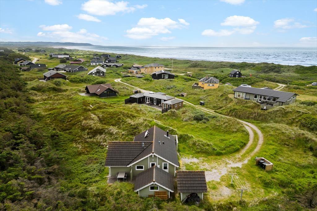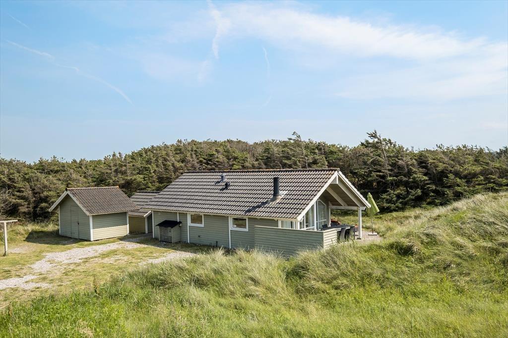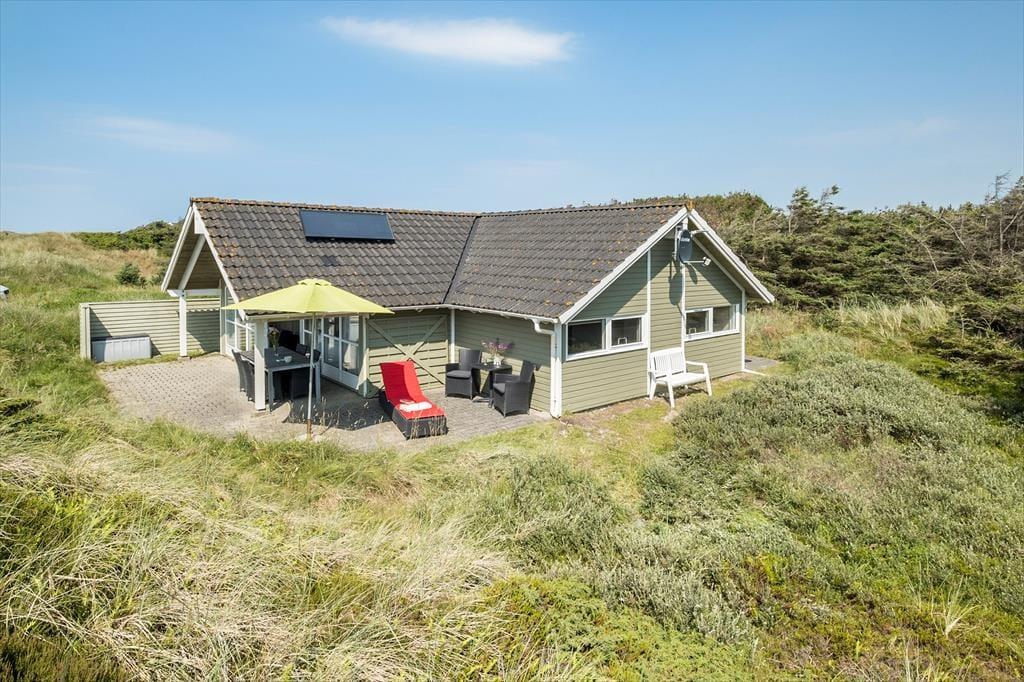 Den flotte og kuperede naturgrund er fyldt med lyng, højt græs og klitter og ligger i komplet fred og ro. Mod sydvest ligger en stor og delvist overdækket terrasse, helt oplagt til at nyde alle de gode soltimer og tilberede det ene lækre grillmåltid efter det andet.