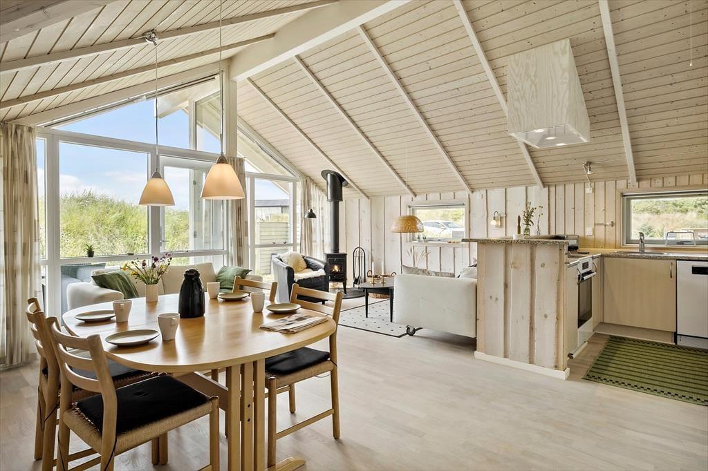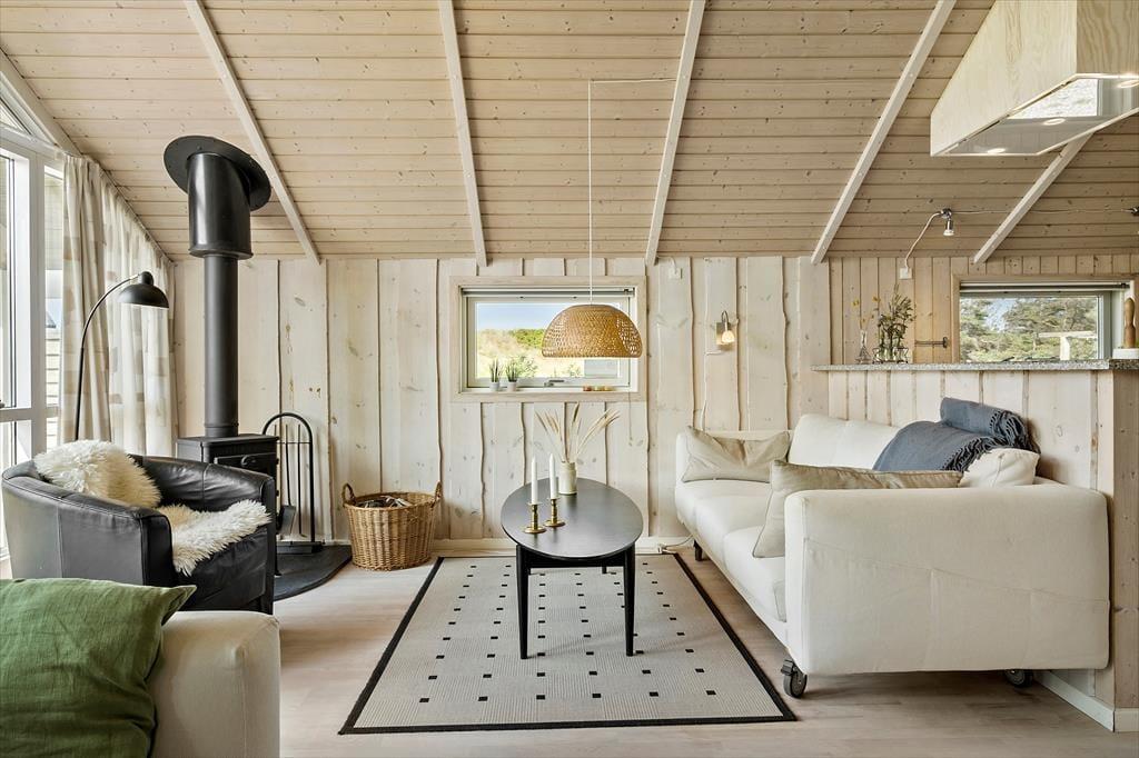 Sommerhuset er lyst og tidssvarende indrettet, og alle vil hurtigt føle sig velkomne og godt tilpas i disse rammer. Det helt centrale rum er det åbne og kombinerede køkken-og opholdsrum med et stort vinduesparti og en dejlig udsigt til naturen udenfor. I det ene hjørne står en flot brændeovn, og med ild i den indfinder den helt rigtige feriestemning sig på ingen tid, og enhver gråvejrsdag er reddet. Derudover råder sommerhuset over to soveværelser med dobbeltsenge og et badeværelse med bruser og vaskemaskine. Medbring gerne pc eller tablet hjemmefra, og brug det trådløse internet til at søge oplysninger om områdets mange attraktioner og seværdigheder. Alt i alt tilbyder dette sommerhus de helt ideelle rammer for den næste par- eller familieferie i Nordjylland.