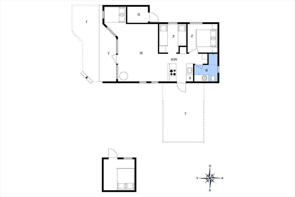 Huset er opført i 2005 og måler 63 m2, og det har følgeskab af et anneks på 8 m2. Er I fem personer, kan I fint være her alle sammen, for der er to gode soveværelser og en alkove i selve sommerhuset, og derudover kan anneksets dobbeltseng tages i brug. Et badeværelse med bruser hører med til sommerhusets planløsning – foruden køkken og stue, der tilsammen udgør et skønt opholdsrum. Med loft til kip, brændeovn og den fornævnte alkove emmer opholdsrummet af hygge og charme, og det er nemt at forestille sig, at en stor del af ferien kommer til at foregå her. Trænger I til underholdning, har I mulighed for at streame film og serier på fladskærms-tv’et, og der er også wi-fi-forbindelse i huset, hvis I vil følge med i nyhedsstrømmen eller surfe på nettet.