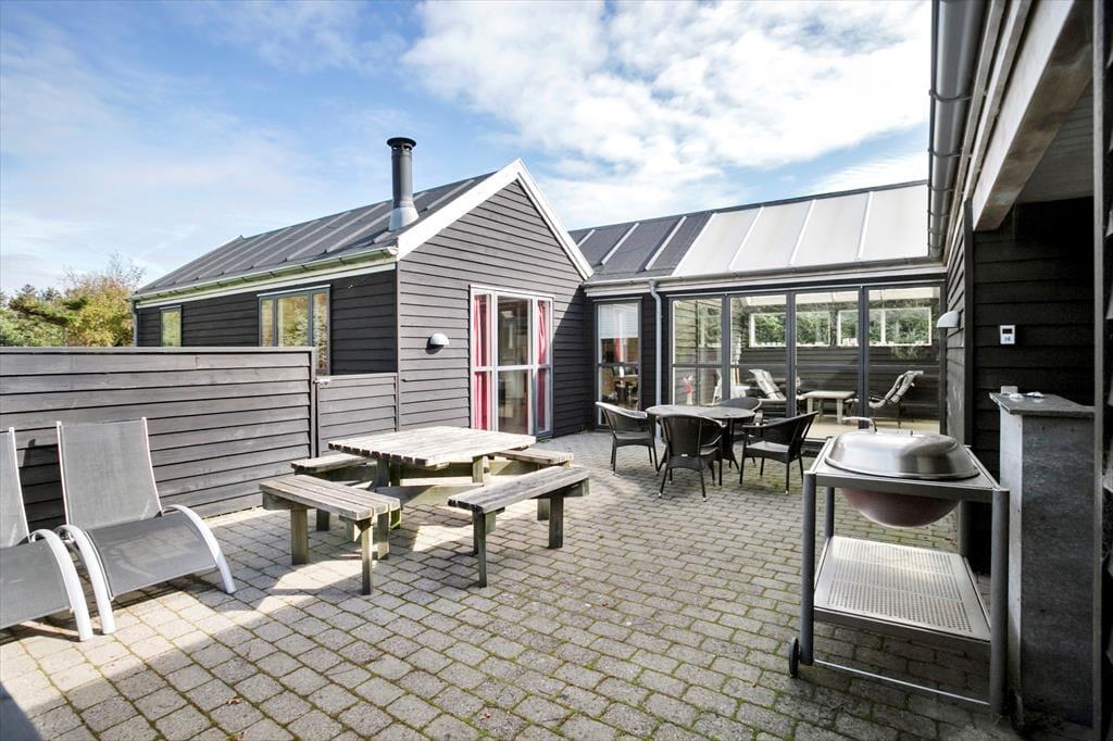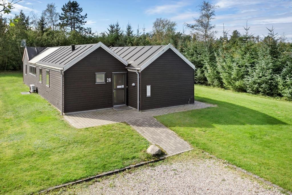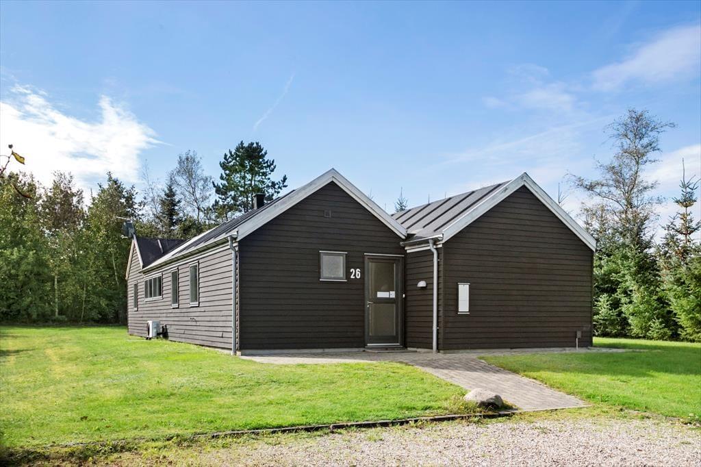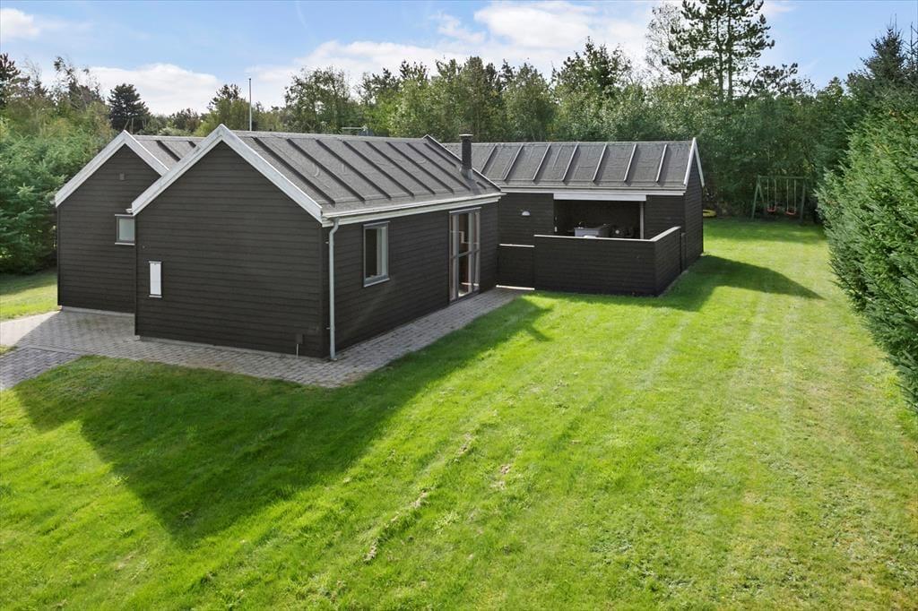 I kommer til at bo i bekvem gå afstand til Trend Strand og samtidig fredeligt på en lukket vej, når I holder ferie i dette store og velindrettede sommerhus, der er indrettet med spabad og sauna.