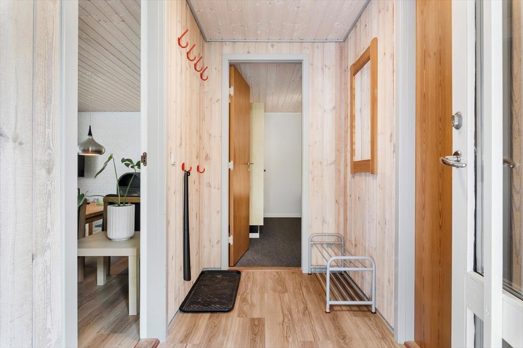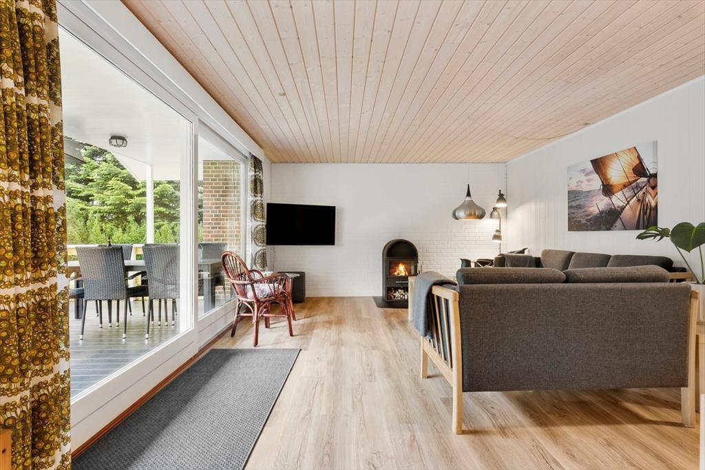 Både ude og inde kan du se frem til at nyde ferielivet i dette dejlige sommerhus, der ligger bare 500 meter fra Trend Strand. Huset har en pæn og indbydende indretning, og ude får hele familien rig mulighed for at lege, hygge og slænge sig i grundens grønne og ugenerede omgivelser.