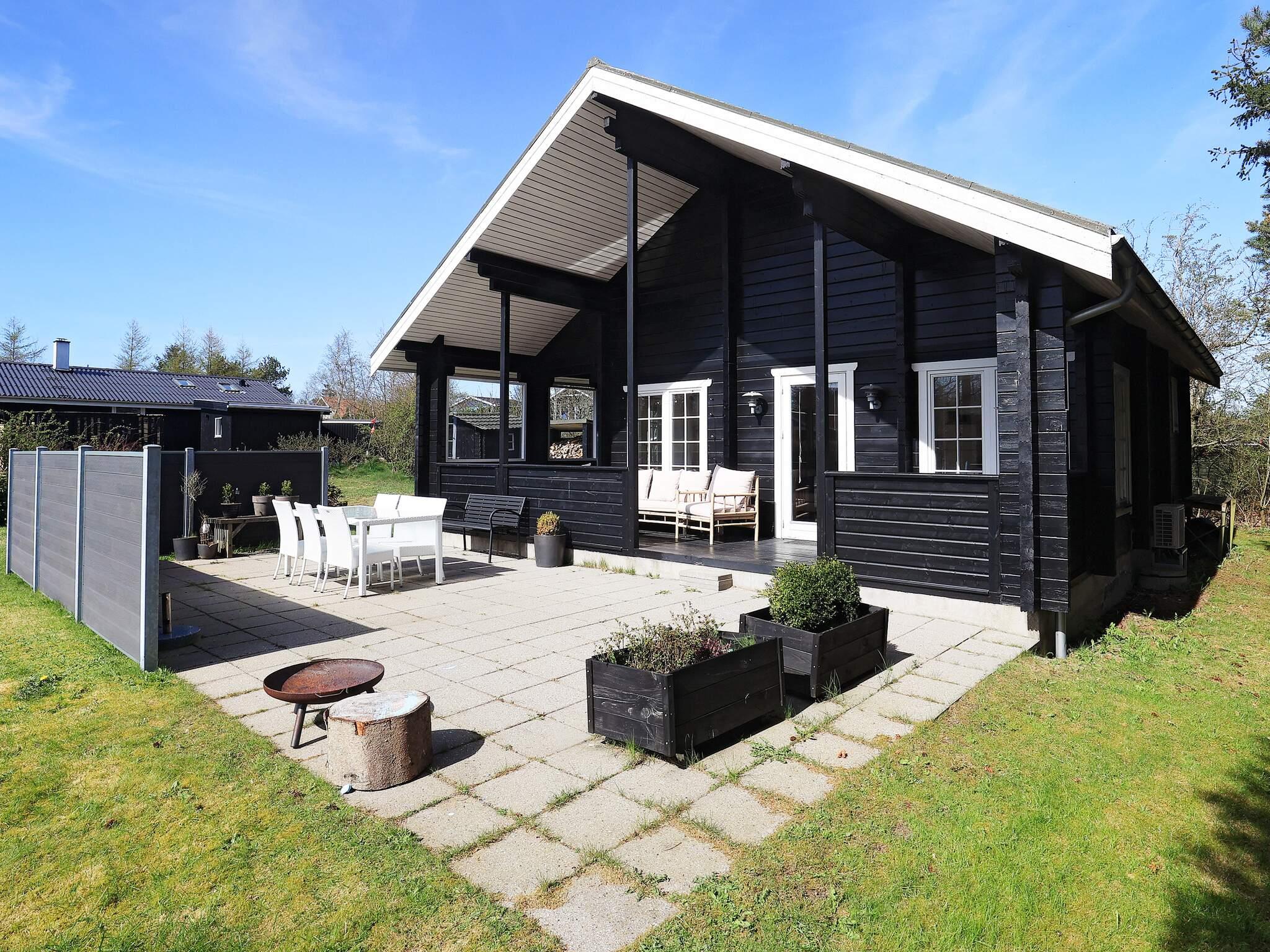 Udenfor venter en skøn terrasse med havemøbler, liggestole og kuglegrill. Her kan I nyde morgenkaffen i solopgangen, lange sommeraftener og den friske luft på den store, fredelige naturgrund på 1101 m².