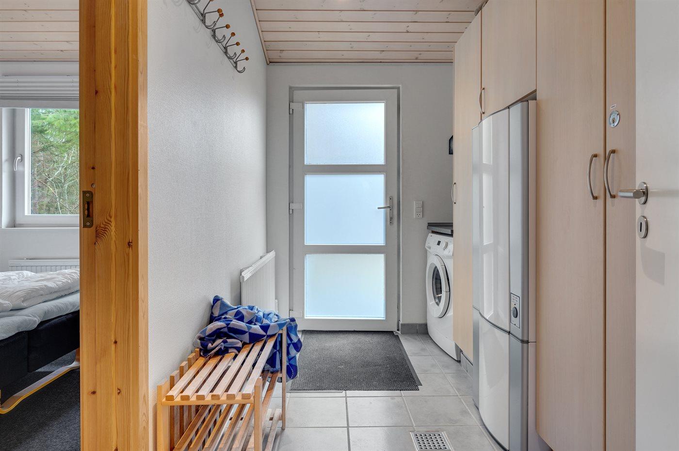 Køkkenet er udstyret med 1 køleskab. Der er 4 keramiske kogeplader, varmluftovn, mikrobølgeovn samt opvaskemaskine.