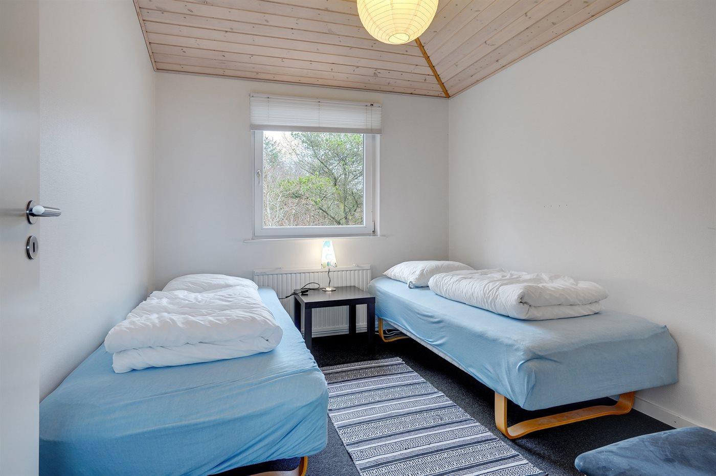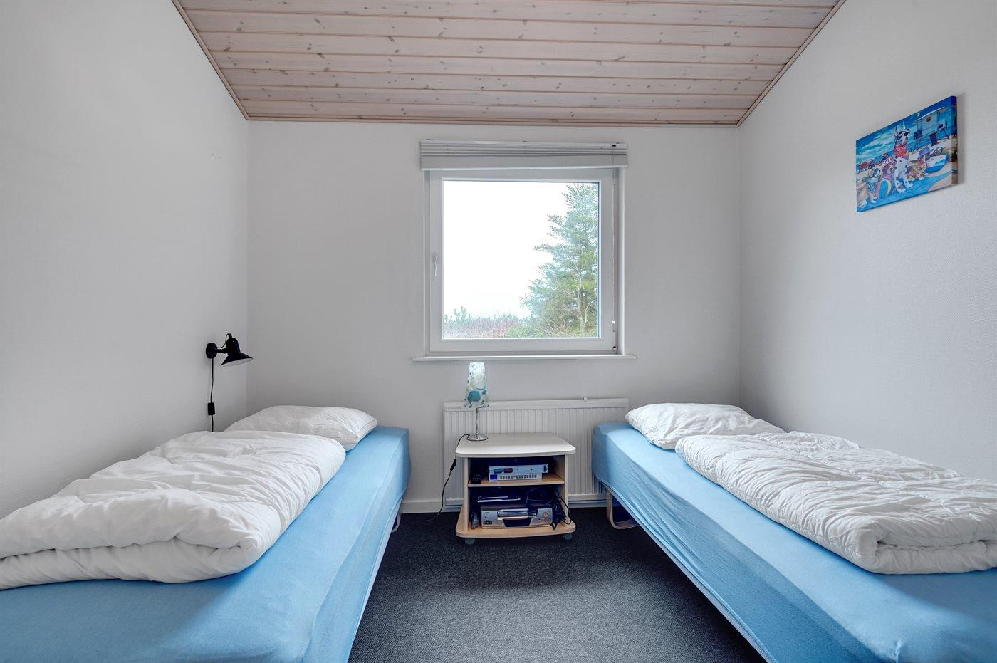Der er i alt 4 soveværelser. Sovepladserne fordeler sig på: 4 sovepladser i dobbeltsenge. 4 sovepladser i enkeltsenge. Derudover er der 1 stk. barneseng.