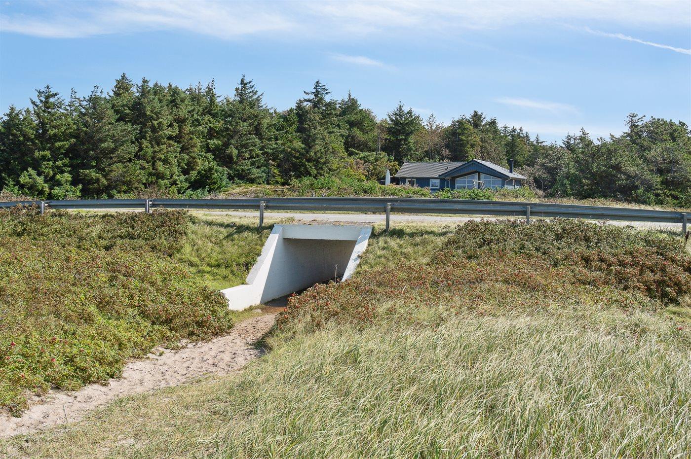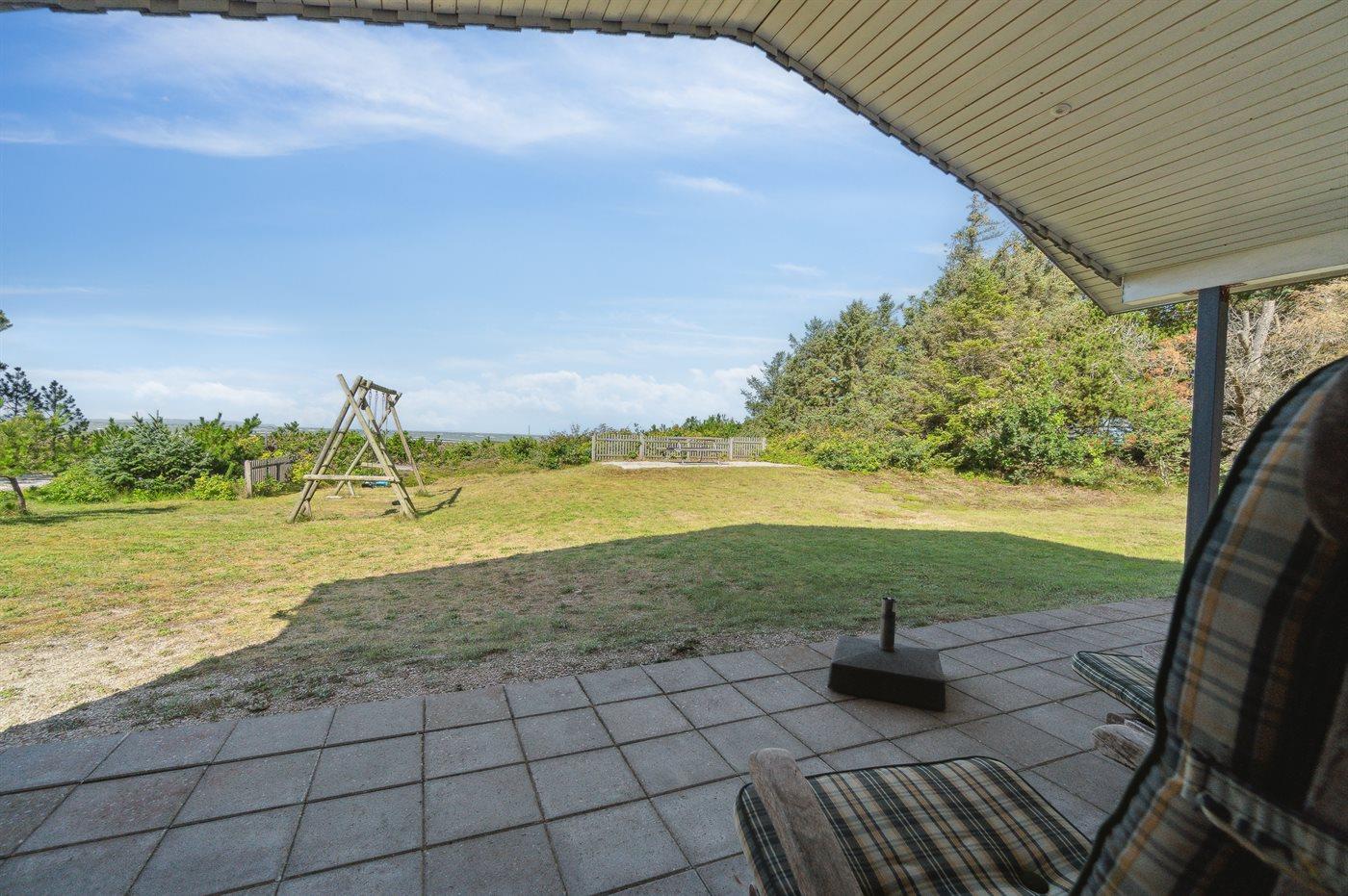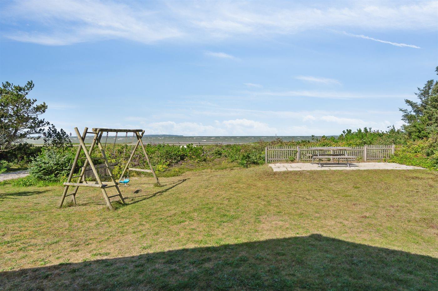 Ferieboligen er beliggende på en 2415 m² stor naturgrund. Der er 50 m til fjorden. Nærmeste forretning er beliggende i en afstand af 5000 m. Til ferieboligen hører 70 m² terrasseareal. Desuden er der 35 m² overdækket terrasse. Der er redskabsrum. Gynge. Sandkasse. Der er installeret stik til opladning af elbil. Parkering ved ferieboligen.