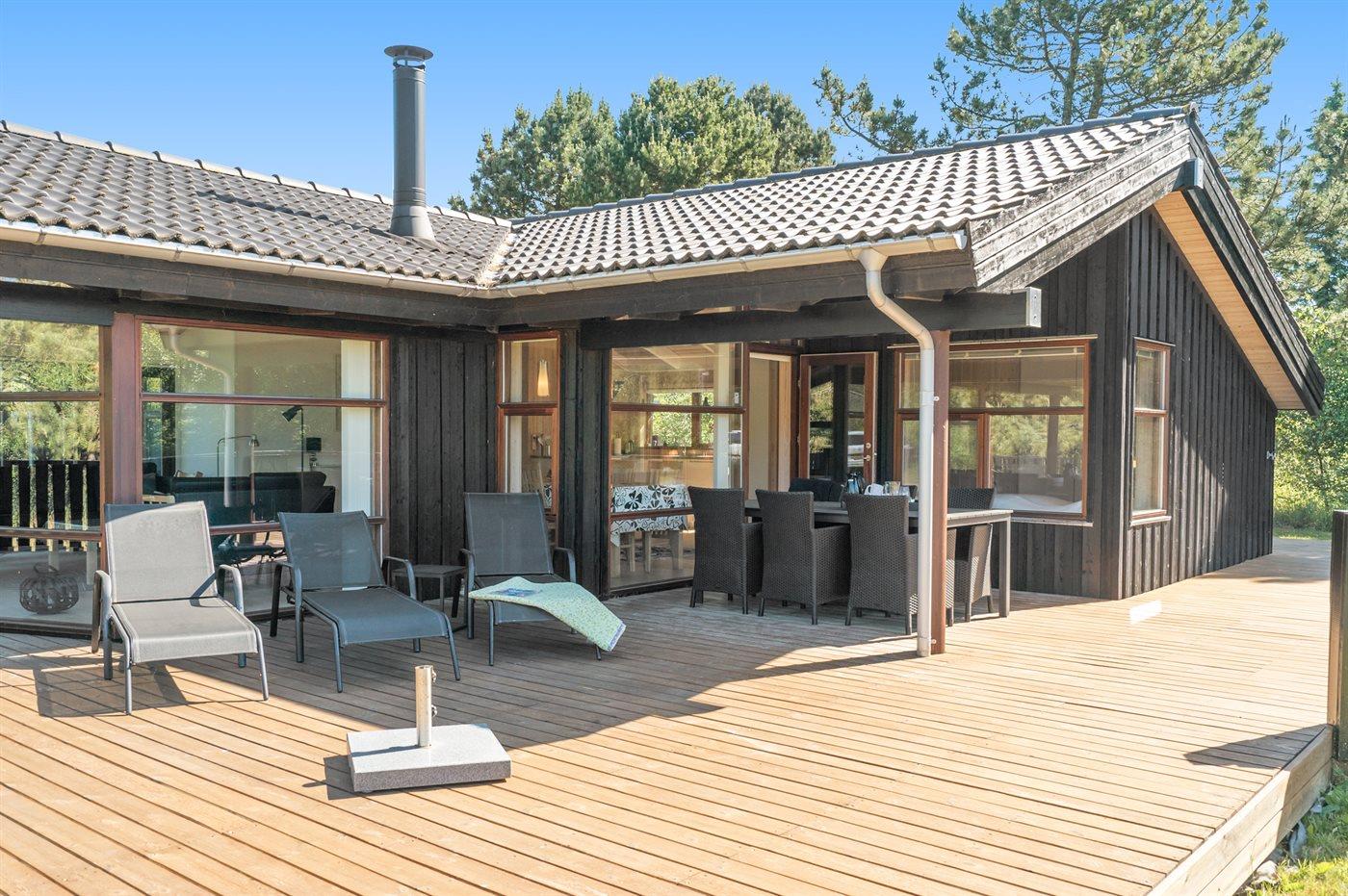 Et super flot sommerhus, med en skøn, til dels overdækket terrasse og lækre havemøbler. Huset ligger i det populære sommerhusområde Trend ved Limfjorden, hvor der er gode bade og surfmuligheder. Et godt udgangspunkt for den perfekte ferie med familien.