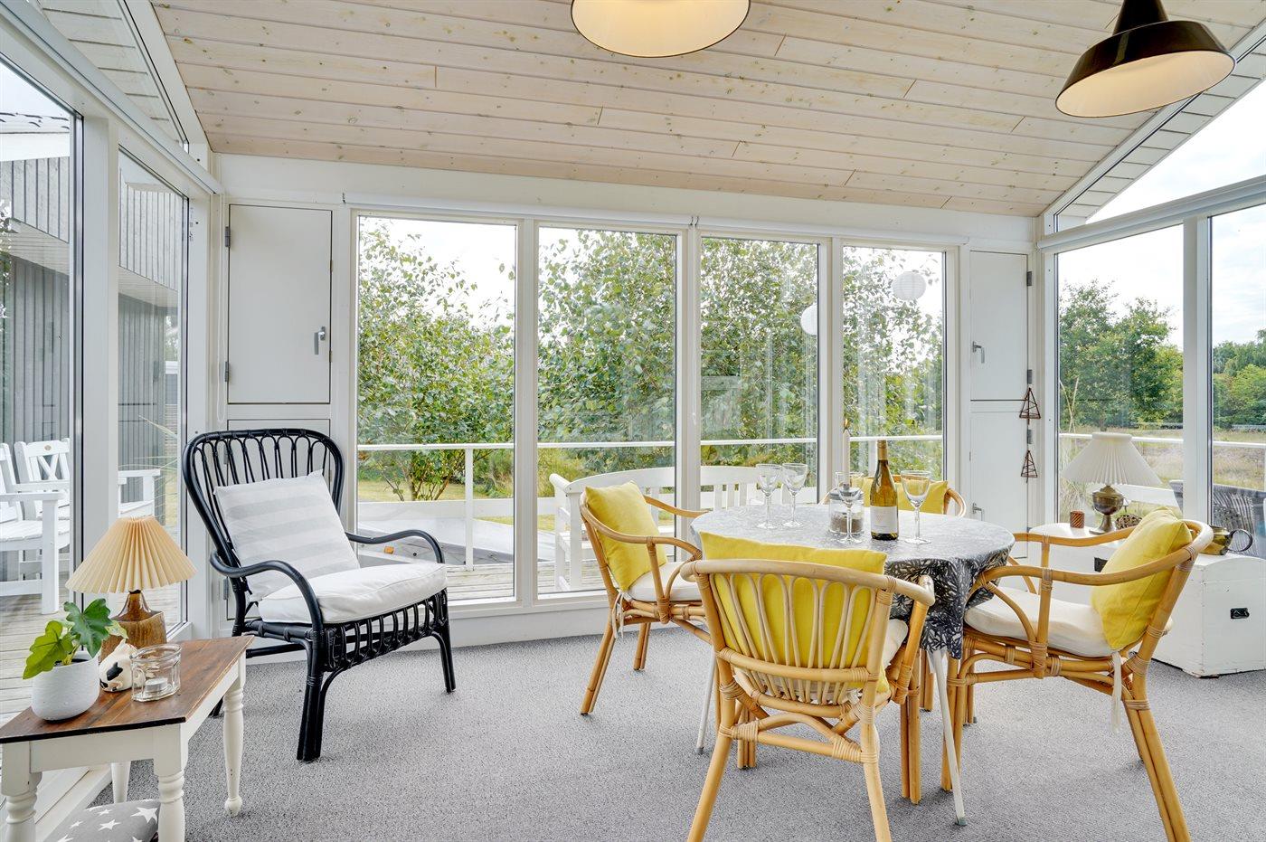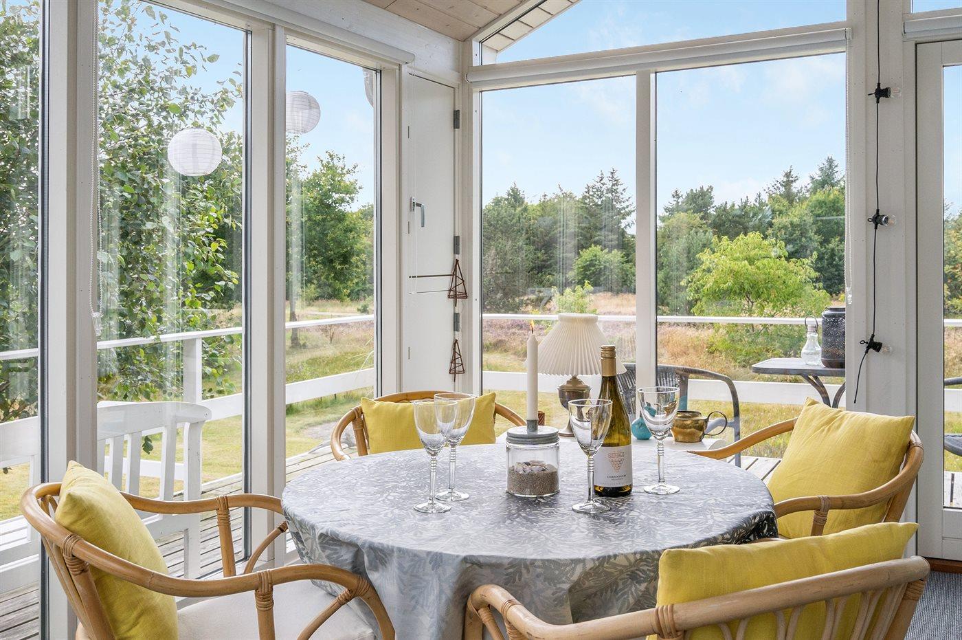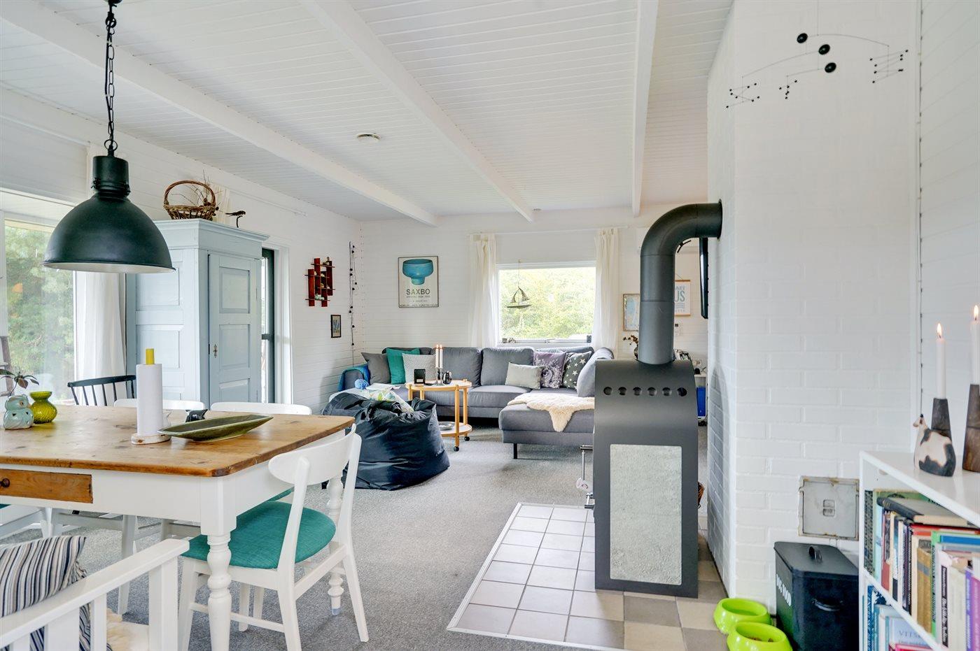 Dette hyggelige sommerhus ligger i et populært sommerhusområde ved Limfjorden. Til huset hører gode terrasser og en udestue samt et anneks, som er indrettet med 2 af de i alt 6 sovepladser.
