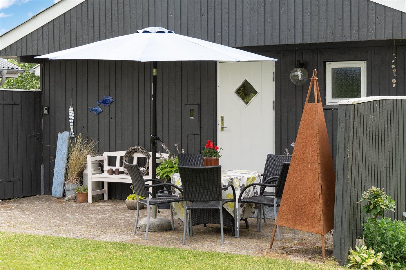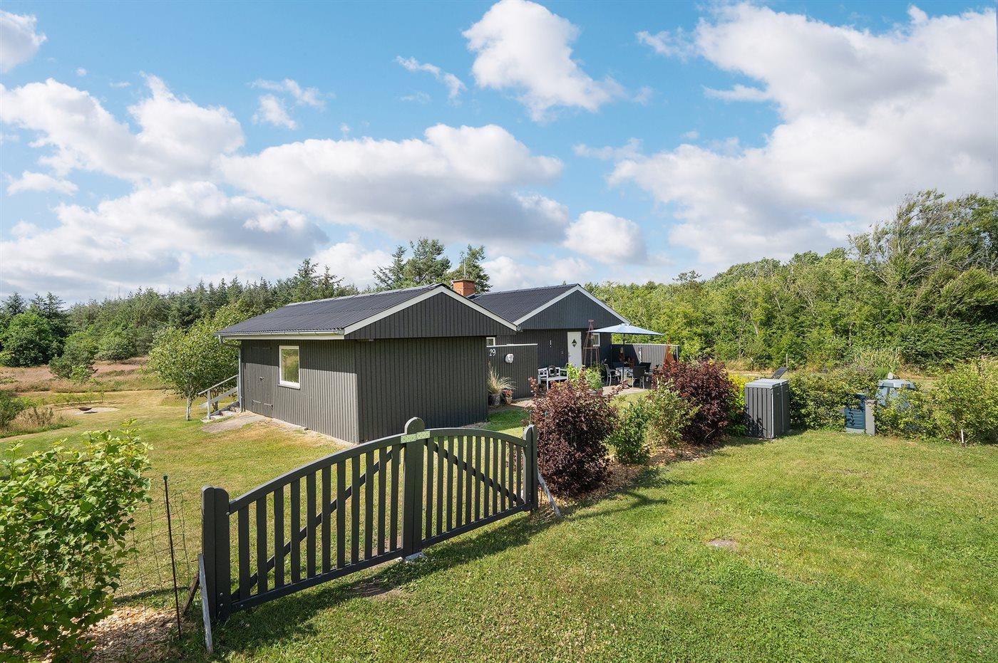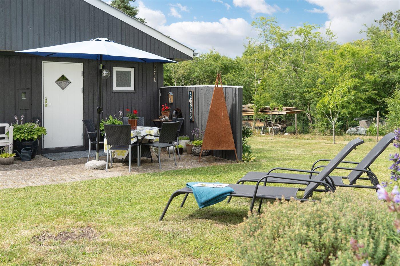 Ferieboligen er beliggende på en 1200 m² stor naturgrund. Der er 500 m til fjorden. Nærmeste forretning er beliggende i en afstand af 4000 m. Der er en golfbane i en afstand af 15000 m. Til ferieboligen hører 45 m² terrasseareal. Ligeledes er der adgang til udestue. Bålsted. Udendørs bruser. Grill til rådighed. Parkering ved ferieboligen.