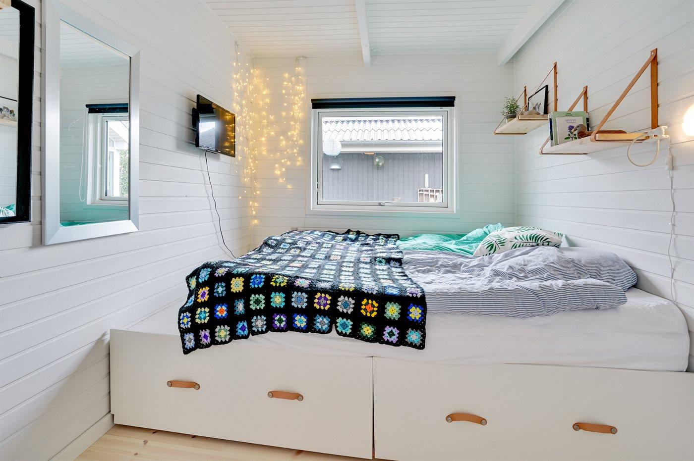 Der er i alt 3 soveværelser. Sovepladserne fordeler sig på: 4 sovepladser i dobbeltsenge. 2 sovepladser i enkeltsenge.- 2 af disse sovepladser befinder sig i et anneks.