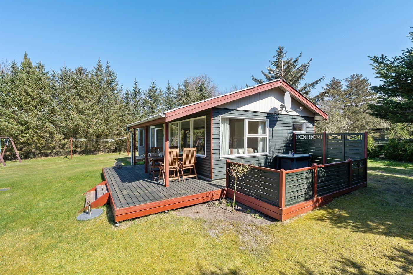 Ferieboligen er beliggende på en 1200 m² stor naturgrund. Der er 450 m til fjorden. Nærmeste forretning er beliggende i en afstand af 3000 m. Til ferieboligen hører 10 m² terrasseareal. Desuden er der 15 m² overdækket terrasse. Gynge. Sandkasse. Der ligger en legeplads i en afstand af 500 m. Parkering ved ferieboligen.