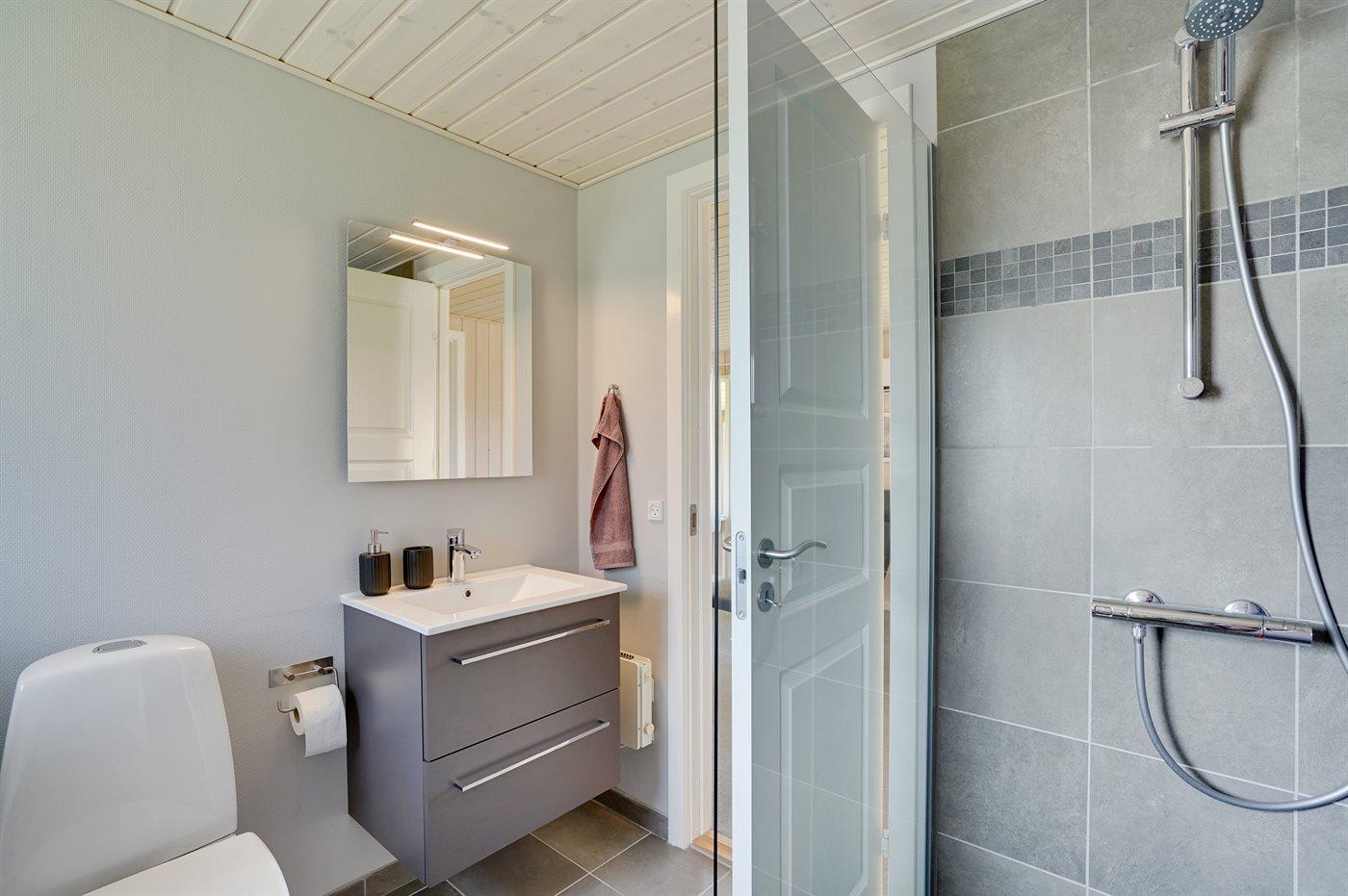 Der er 1 badeværelse med bruseniche og 1 toilet.. Der er gulvvarme på 1 badeværelse.