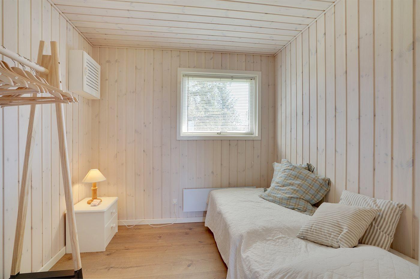 Der er i alt 3 soveværelser. Sovepladserne fordeler sig på: 2 sovepladser i dobbeltseng. 2 sovepladser i enkeltsenge. Derudover er der 1 stk. barneseng.