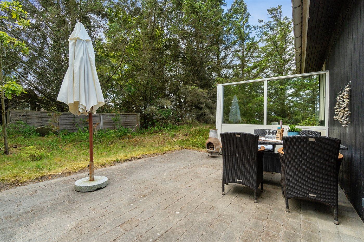 Ferieboligen er beliggende på en 2588 m² stor naturgrund. Der er 100 m til fjorden. Nærmeste forretning er beliggende i en afstand af 4000 m. Der er en golfbane i en afstand af 11000 m. Til ferieboligen hører 10 m² terrasseareal. Desuden er der 15 m² overdækket terrasse. Grill til rådighed. Der er installeret stik til opladning af elbil. Parkering ved ferieboligen.
