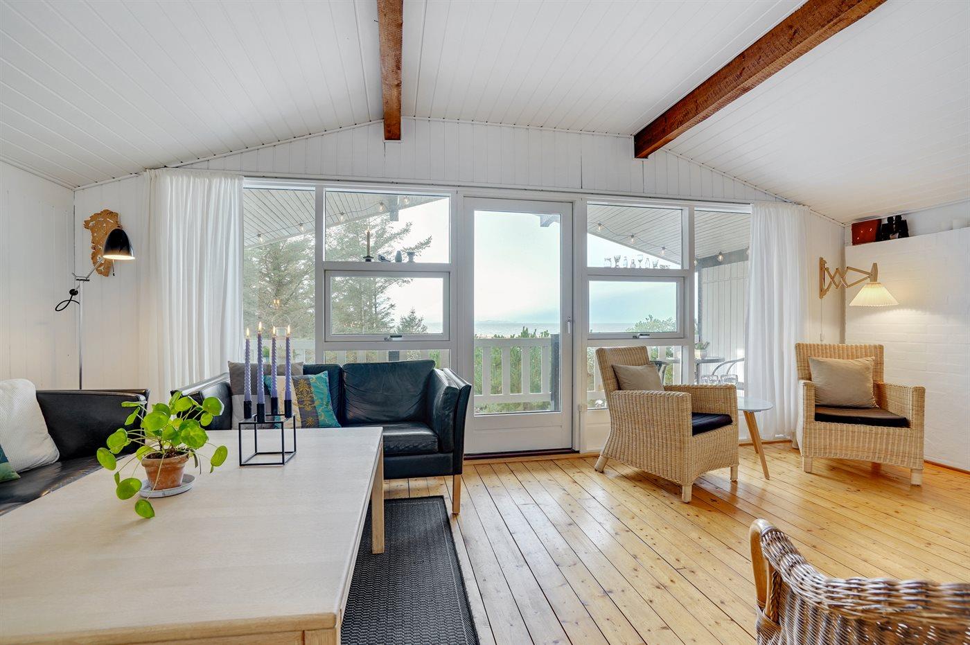 Dejligt sommerhus kun 100 meter fra Trends børnevenlige badestrand med udsigt over Limfjorden og energibesparende varmepumpe.