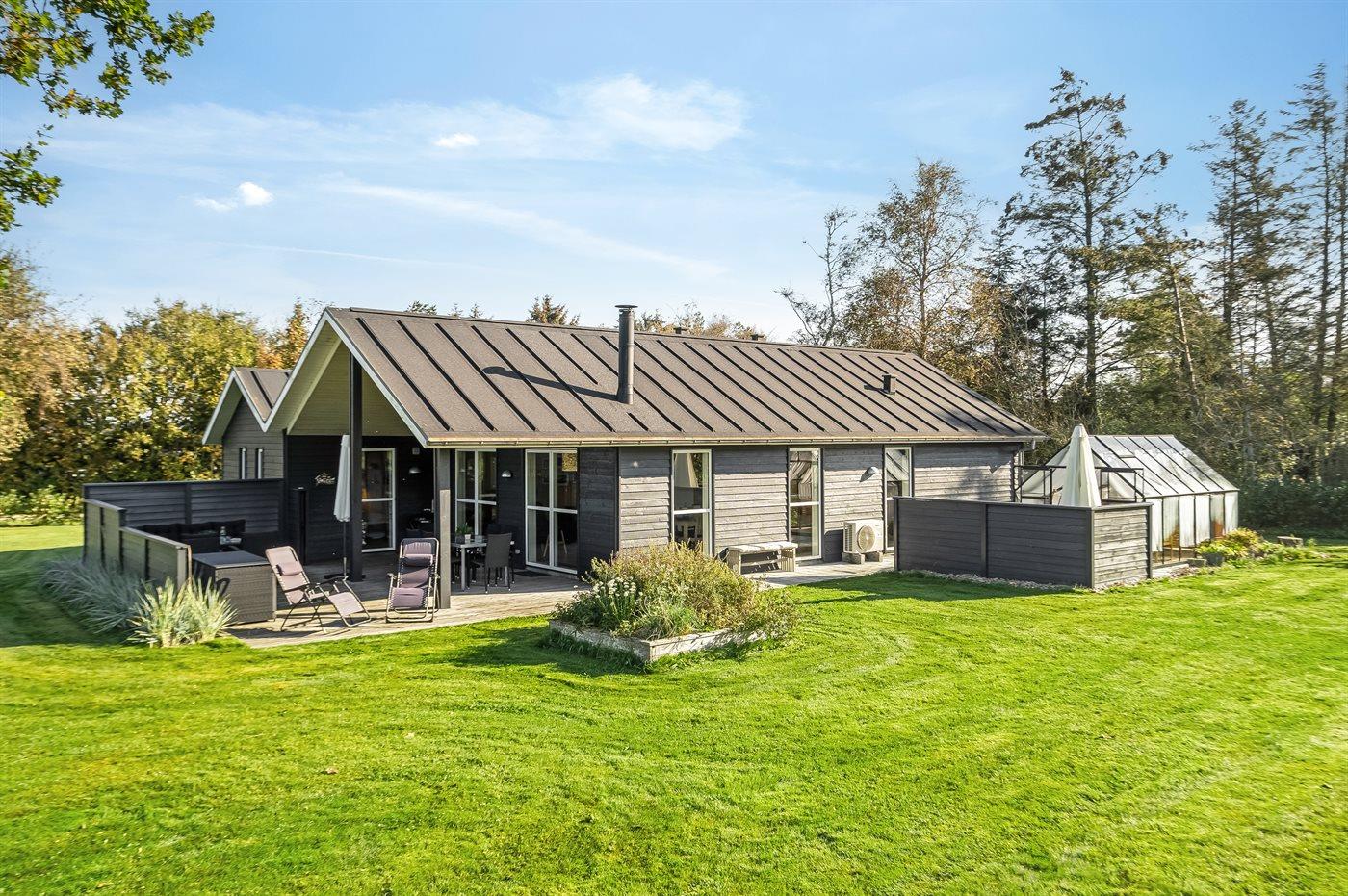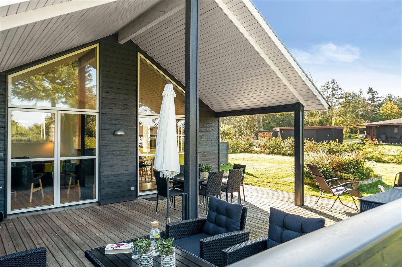 Moderne sommerhus i Trend med aktivitetsrum, spa og stor have tæt på fjorden.