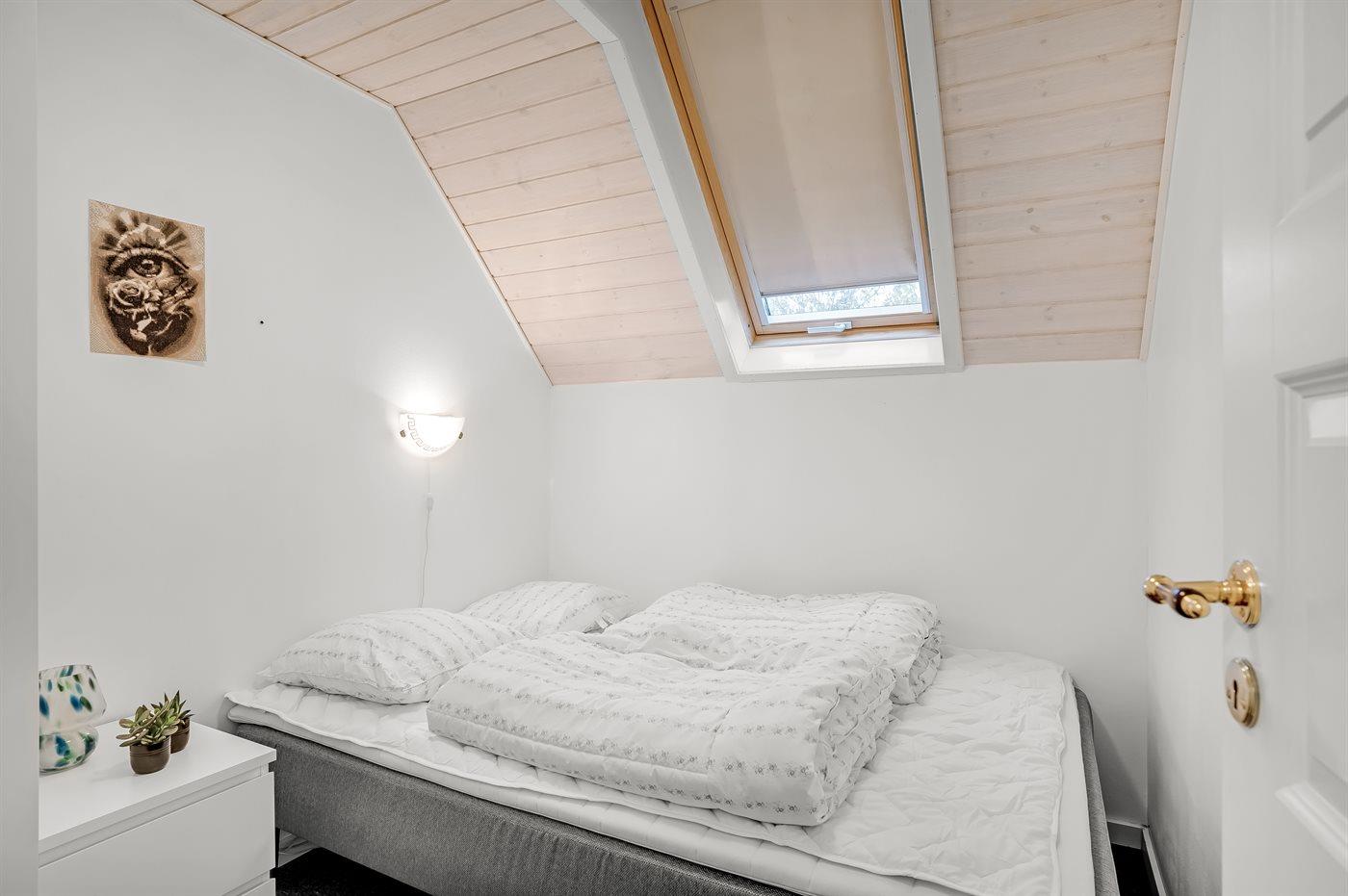 Der er i alt 3 soveværelser. Sovepladserne fordeler sig på: 4 sovepladser i dobbeltsenge. 1 soveplads i enkeltseng. Derudover er der 1 stk. barneseng.