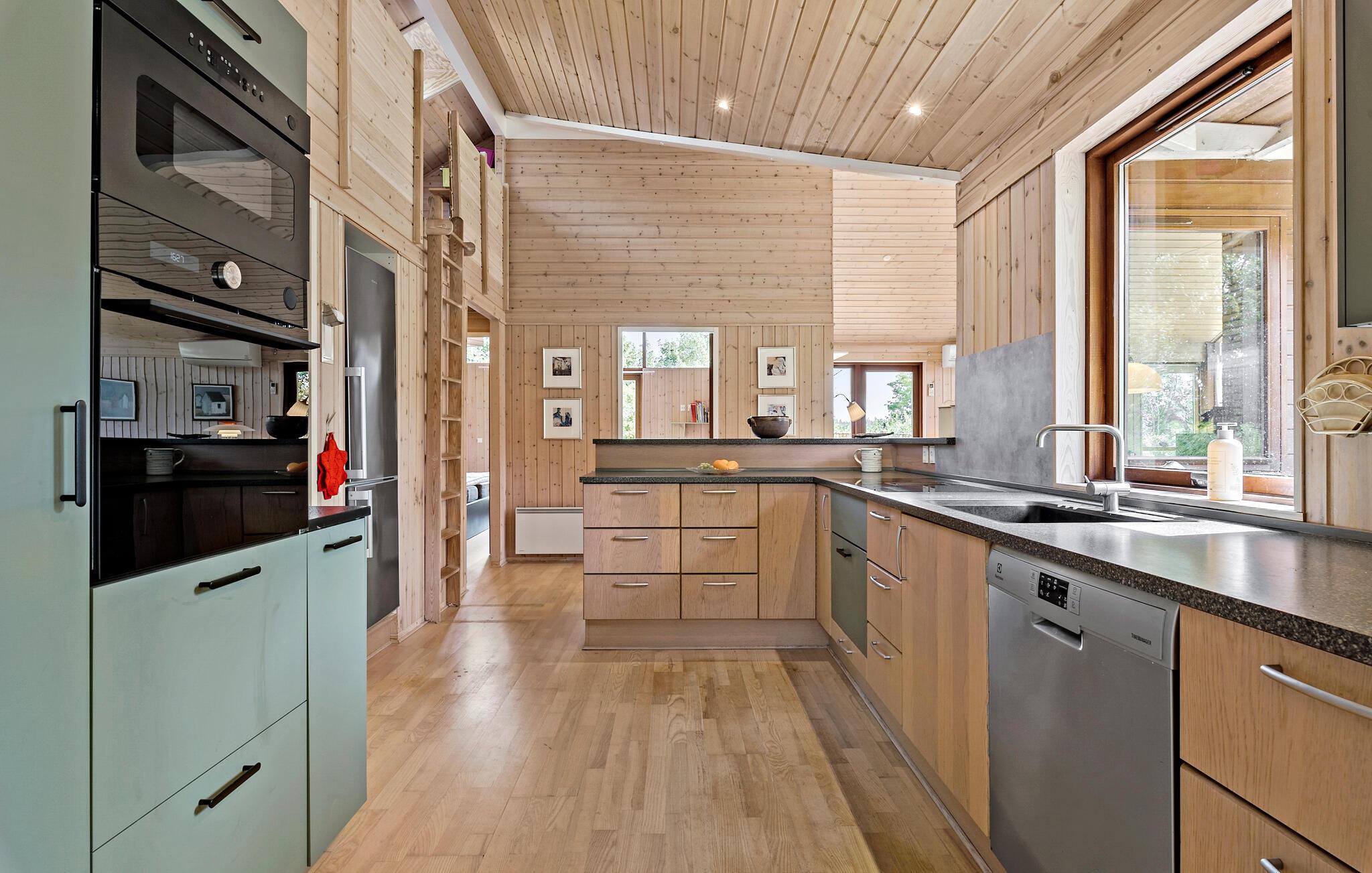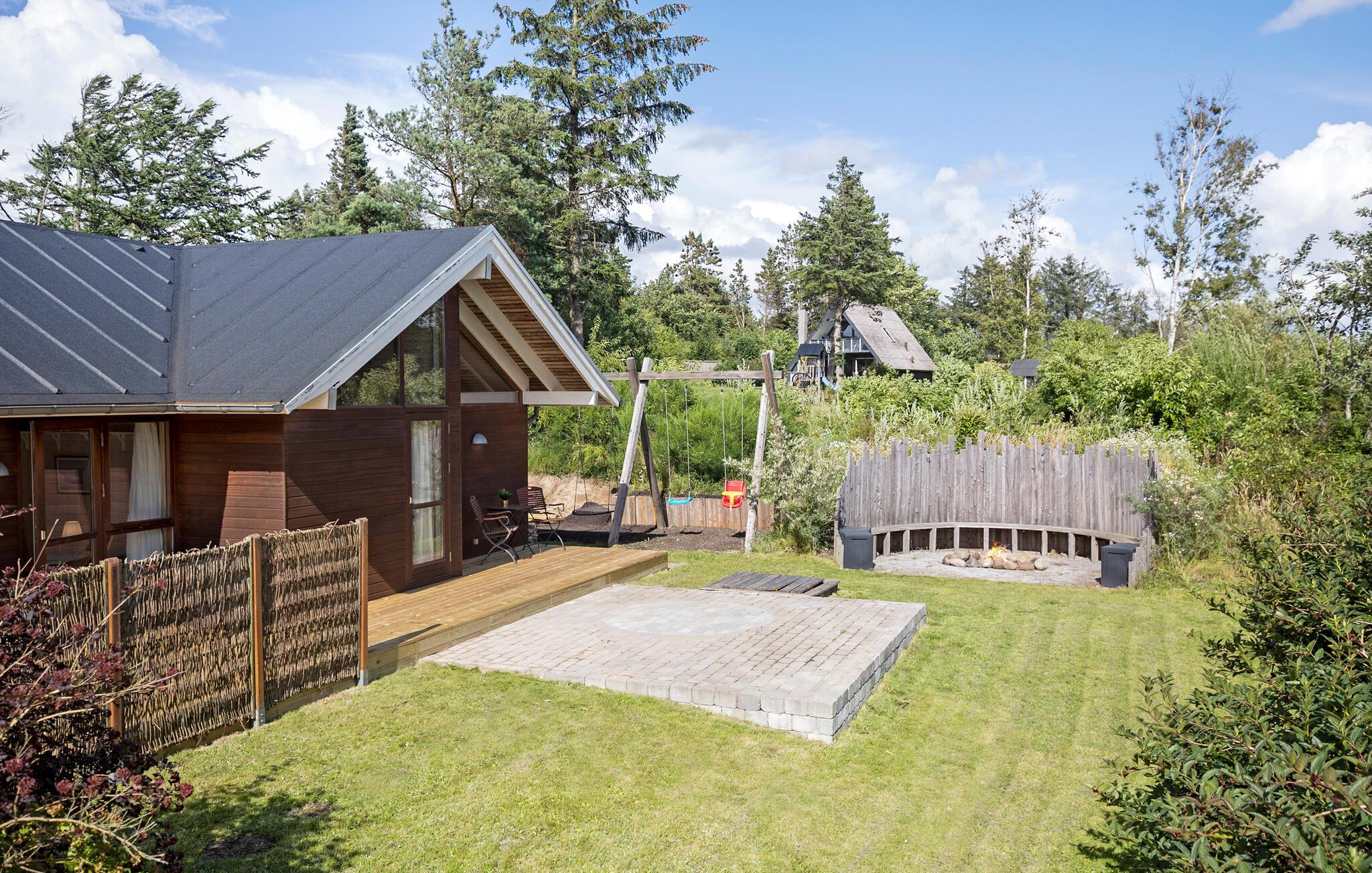 Velkommen til Vesthimmerland og de naturskønne rammer ved Bjørnsholm Bugt. Her kan I begynde jeres feriedage i stille tempo efter en rolig nat, for her står tiden næsten stille. Sæt kaffen over i det veludstyrede, rummelige køkken og dæk op til en hyggelig morgenstund med familien. Fyld dagene med afslappende sysler, en god bog i sofaen eller en film, som alle er med på. Når vejret er lunt, kan I rykke ud på den solrige terrasse, hvor der er flere gode kroge. Fyr op i grillen og gør klar til den store sommermiddag i grønne rammer. Er det blevet koldt udenfor, kan I gøre det ekstra stemningsfuldt med ild i brændeovnen.