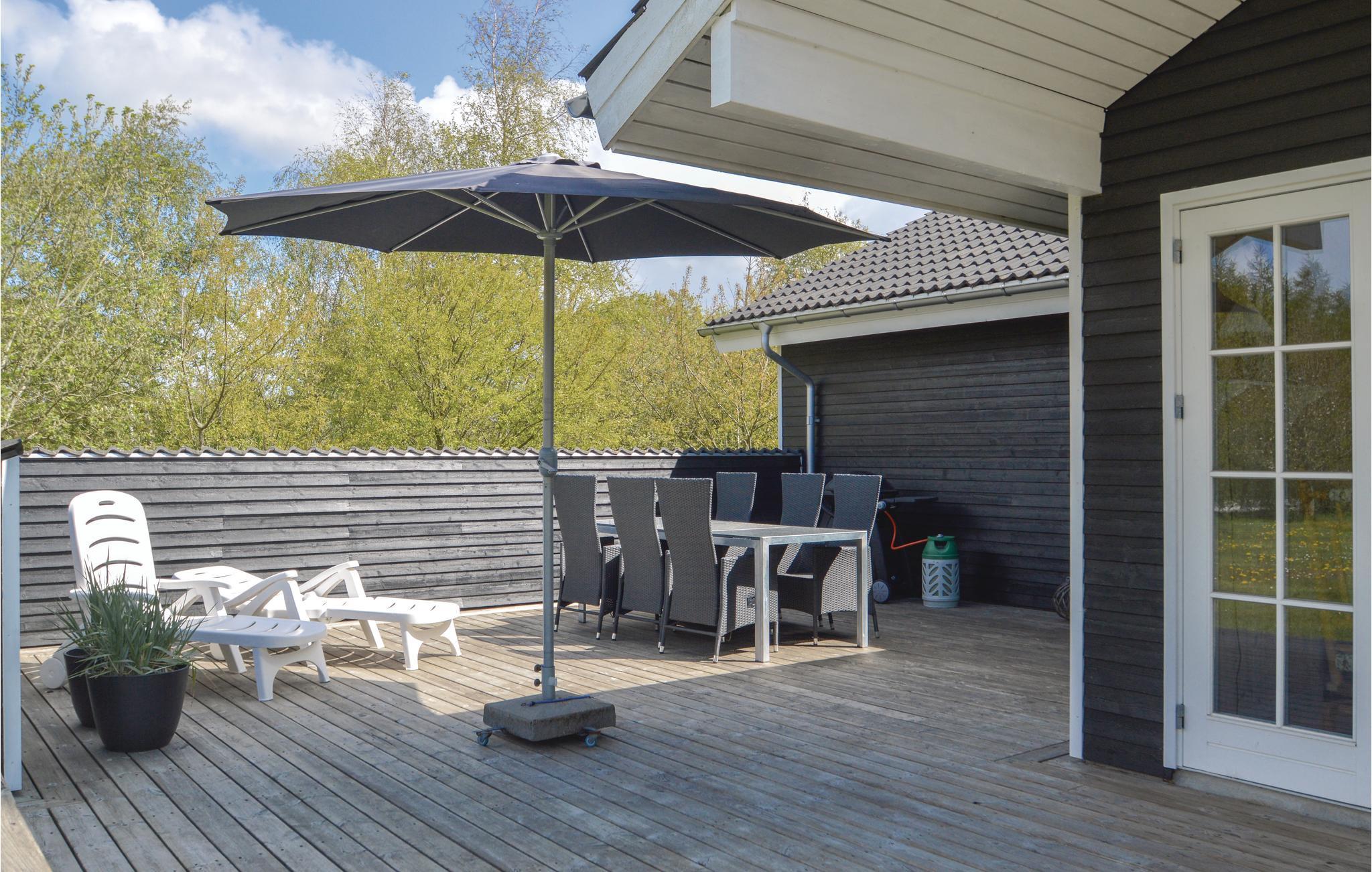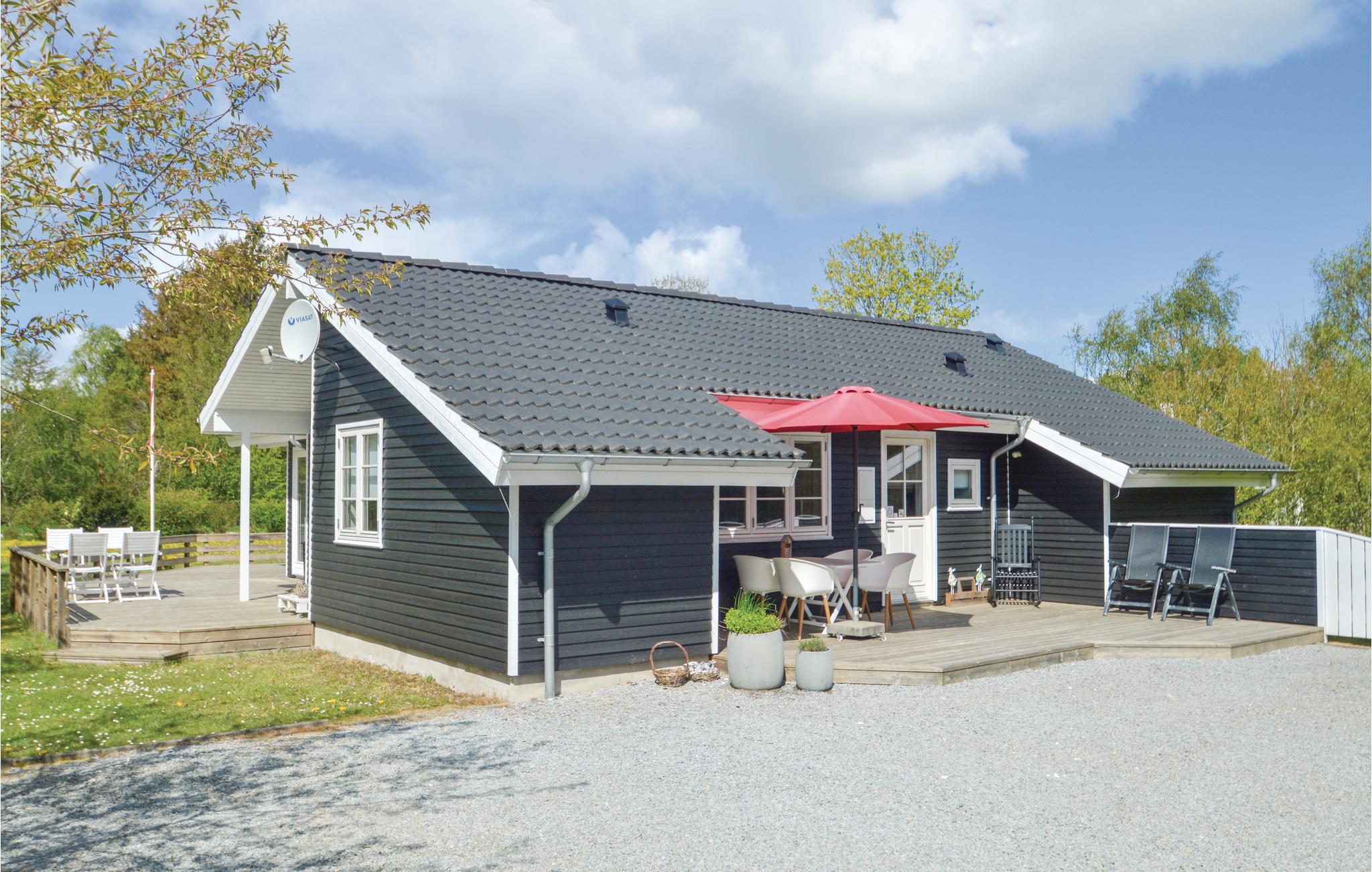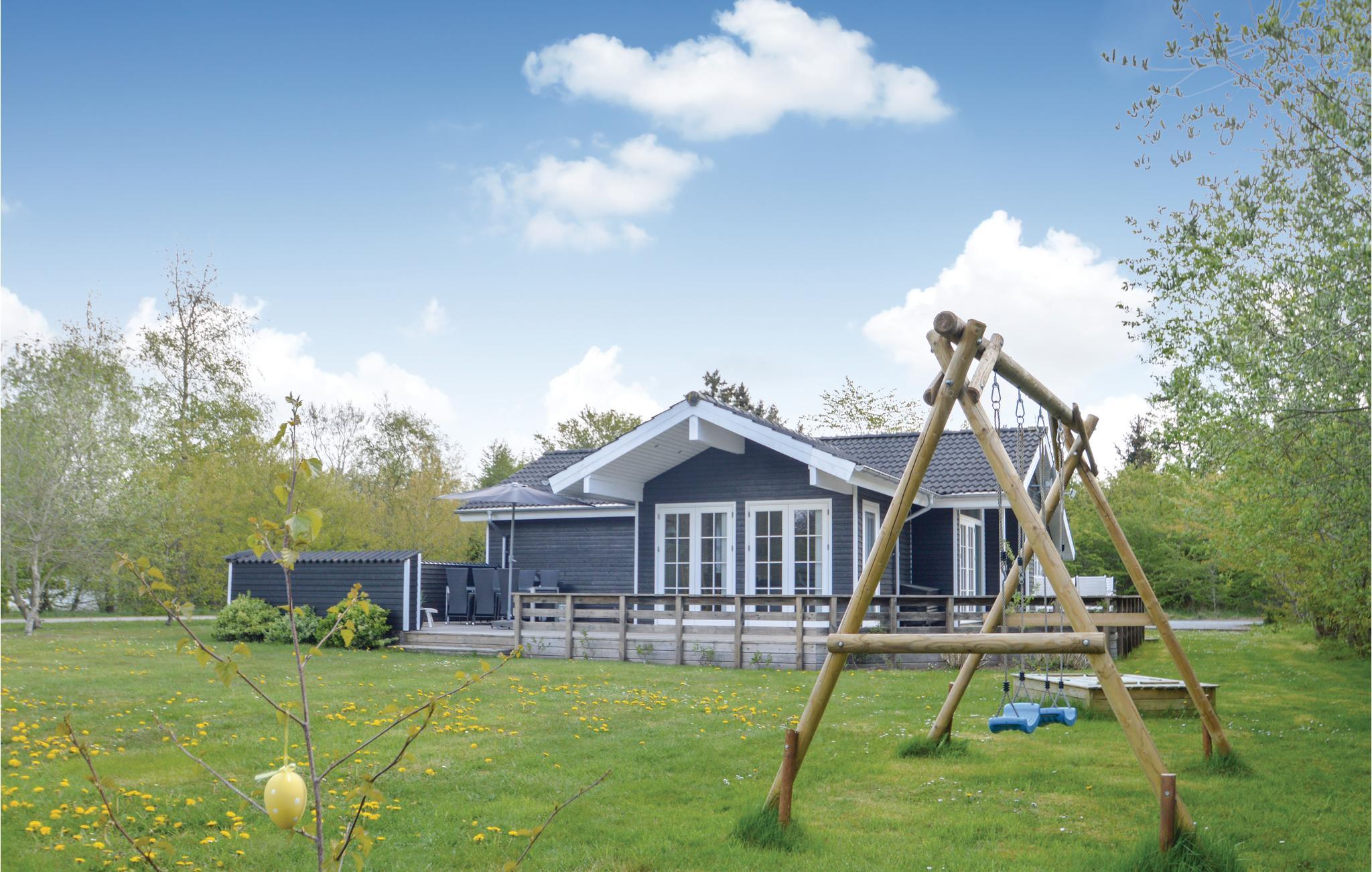Hyggeligt og energivenligt træhus nær Trend Strand med åbne terrasser og moderne faciliteter til en dejlig ferie.