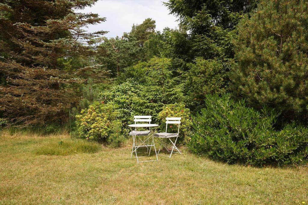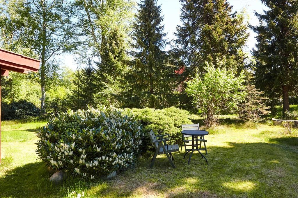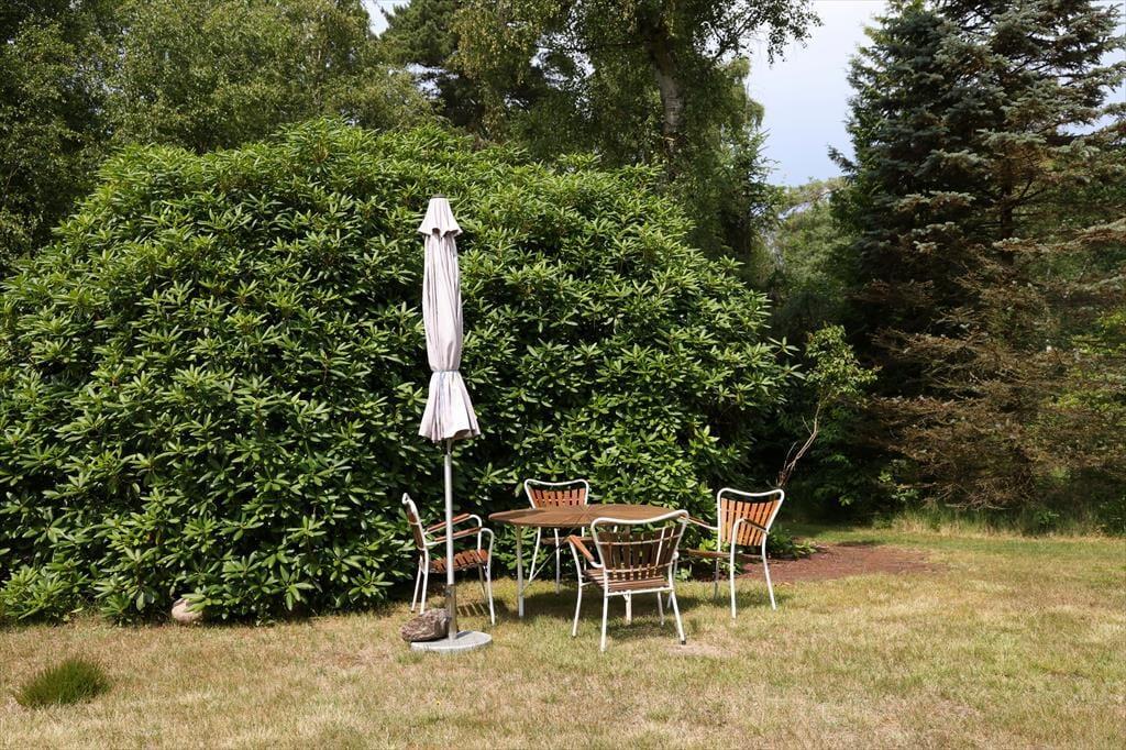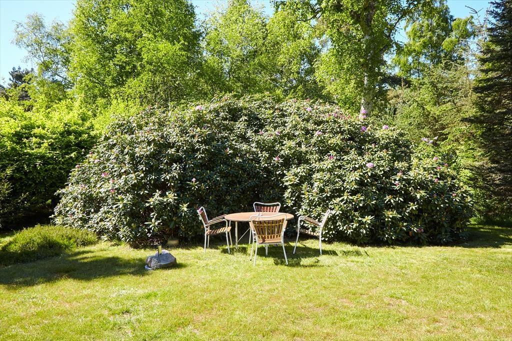 Den store naturgrund har fem steder, hvor du kan nyde udendørslivet, hvad enten det er efter et spil badminton, stangtennis eller kroket. Skulle vejret drille, er de to overdækkede terrasser perfekte til at finde ly og læ, samtidig med at du kan forlænge dagen med en hyggelig aftenstund. Grunden byder på varieret natur med blomster og mulighed for at dvæle ved biodiversiteten.