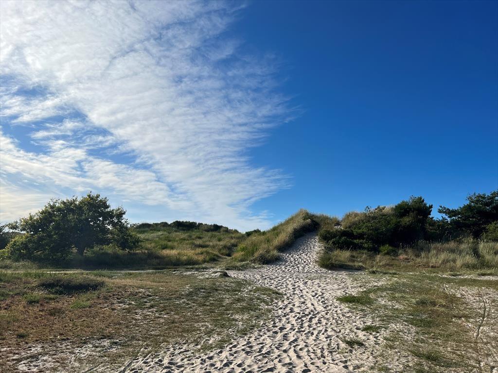 Ud mod Kattegat stiger de hvide sandklitter jævnt op fra havet og falder stejlt ned mod klitheden bagved. Klitterne i Rørvig er Vestsjællands flotteste.
