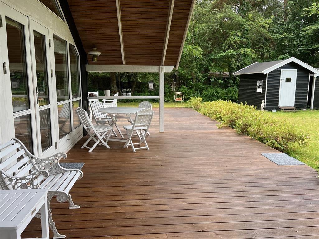 Den store terrasse giver mulighed for, at du kan sidde både i skygge under halvtaget på en varm sommerdag eller rykke ud i solen. Den store grund har en fin randbeplantning af store træer og er ugenert af naboer, og du kan fint spille badminton, kroket eller fodbold for sjov på græsplænen. NB! Huset er beliggende på strandsiden.