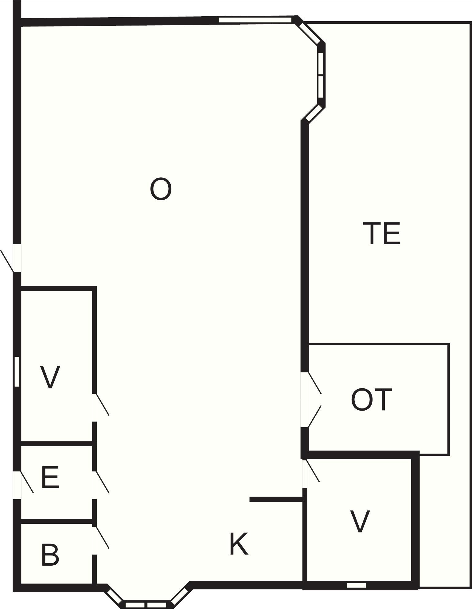 1 Opholdsstue: Brændeovn, tv, høj stol