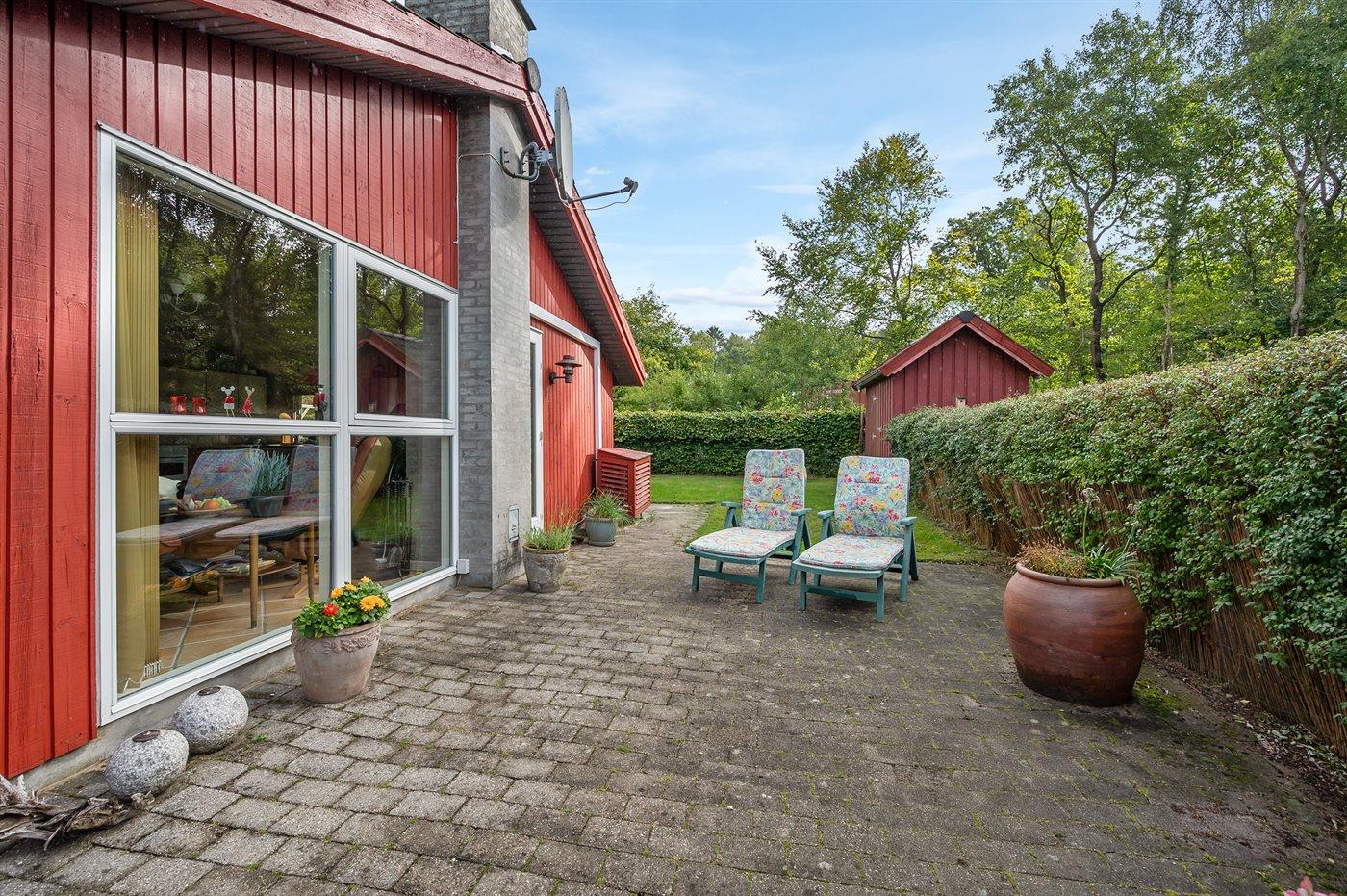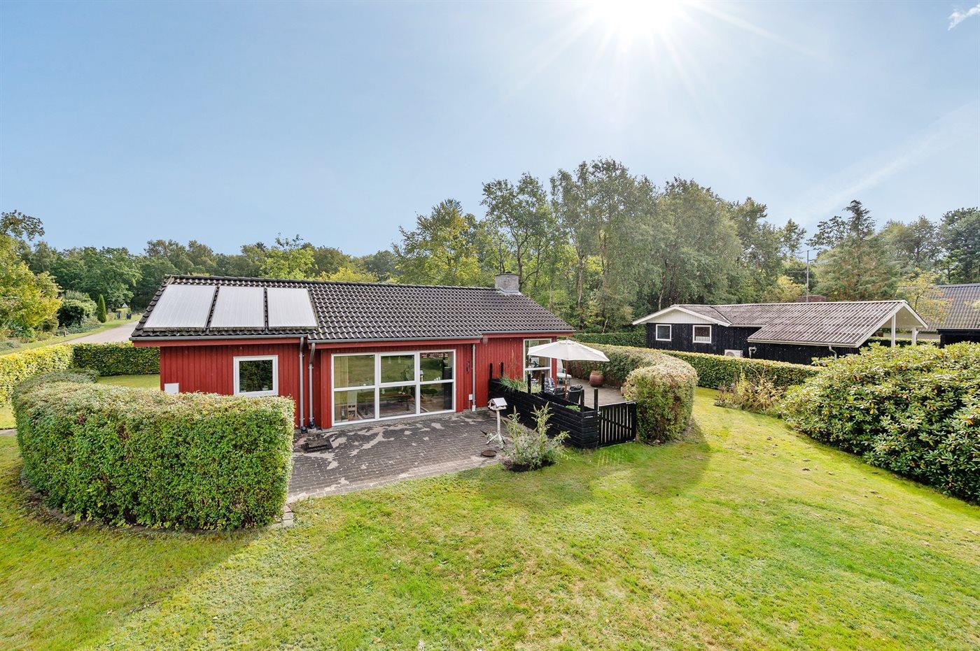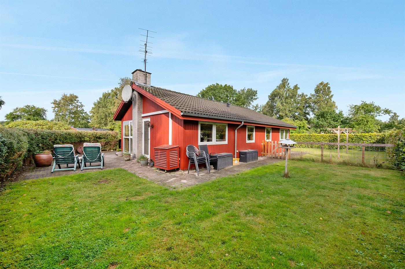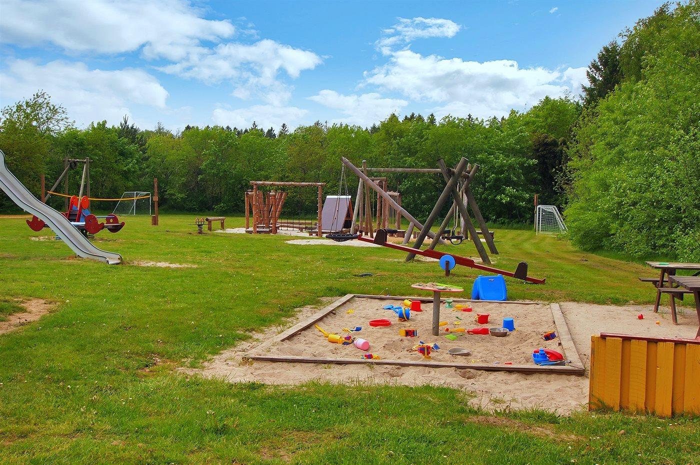 Ferieboligen er beliggende på en 1050 m² stor havegrund. Grunden er indhegnet. Der er en sø i en afstand af 300 m. Nærmeste forretning er beliggende i en afstand af 5000 m. Til ferieboligen hører åbent terrasseareal. Der ligger en legeplads i en afstand af 200 m. Shelter. Grill til rådighed. Der er carport til rådighed. Parkering ved ferieboligen.