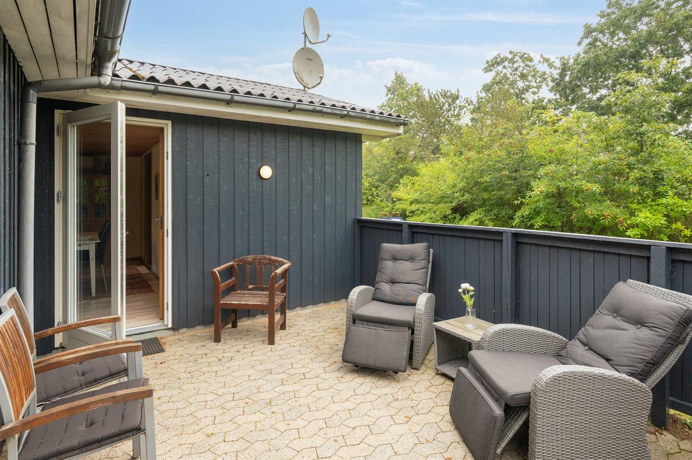 Ferieboligen er beliggende på en 848 m² stor havegrund. Nærmeste forretning er beliggende i en afstand af 5000 m. Der er en golfbane i en afstand af 11000 m. Til ferieboligen hører åbent terrasseareal. Desuden er der overdækket terrasse. Grill til rådighed. Parkering ved ferieboligen.