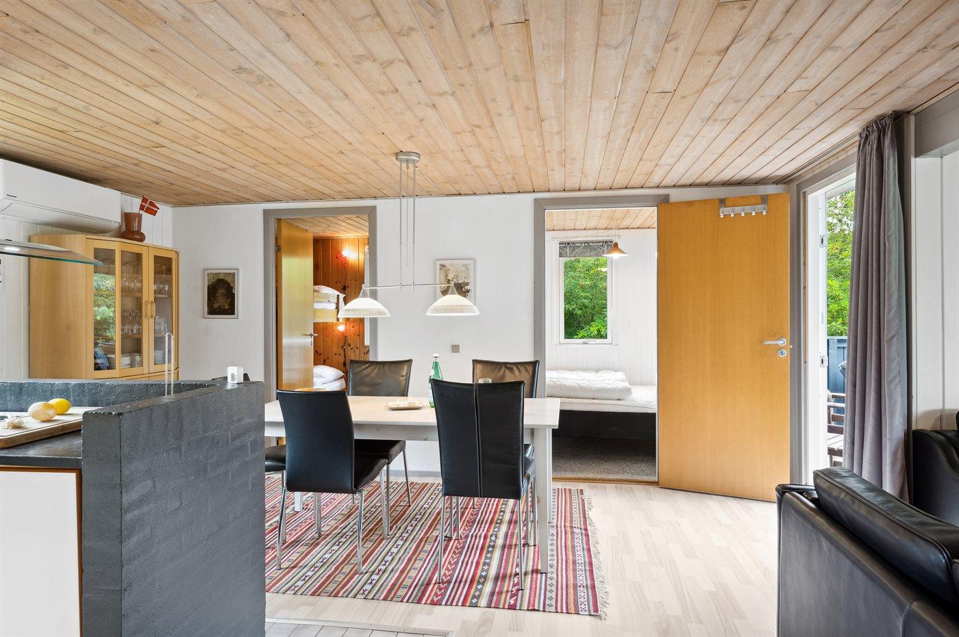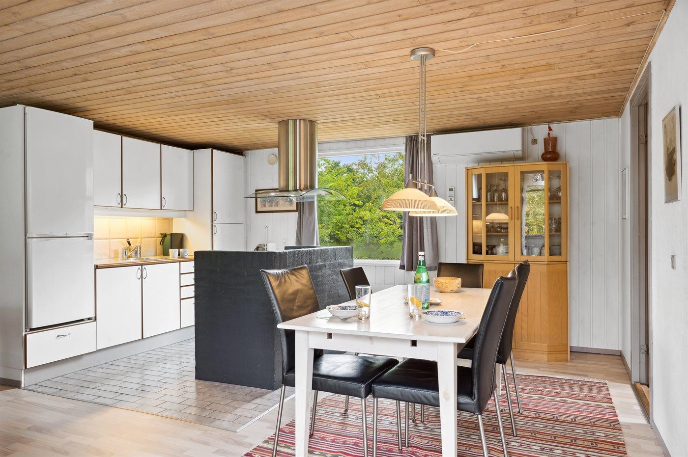 Sommerhuset er godt indrettet og passer fint til én familie, som ønsker at holde ferie i disse skønne omgivelser. Her er bl.a. tre gode soverum samt en dejlig åben stue, som ligger i forbindelse med køkkenet. Til huset hører gode og delvist overdækkede terrassearealer – her man kan nyde solen og hygge sig med en god bog, da der er gode muligheder for at finde læ for vinden.