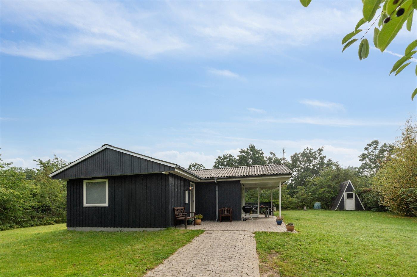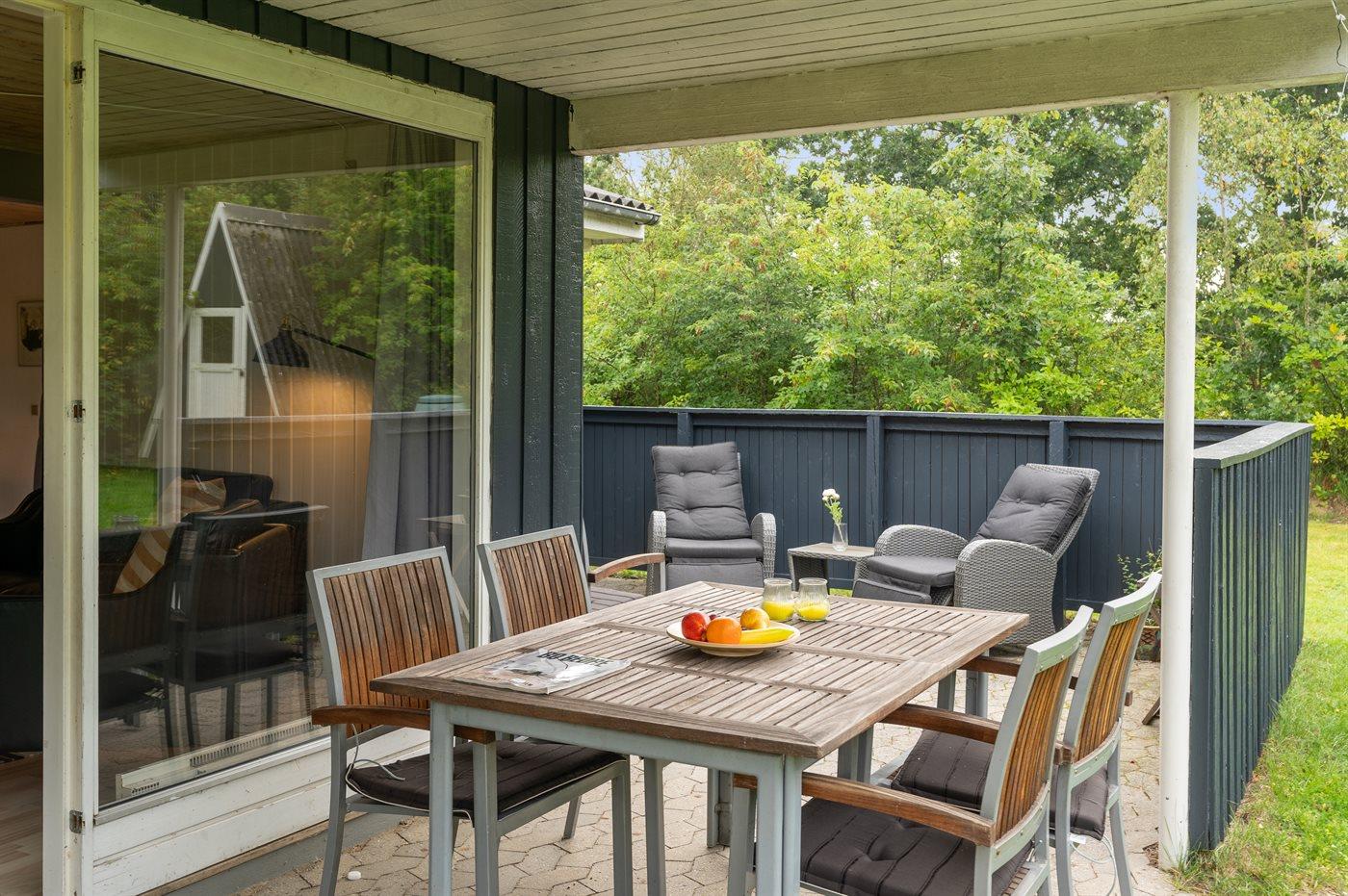 Hyggeligt sommerhus på ugenert grund nær Gudenåen med dejlige terrassearealer og plads til leg og afslapning.