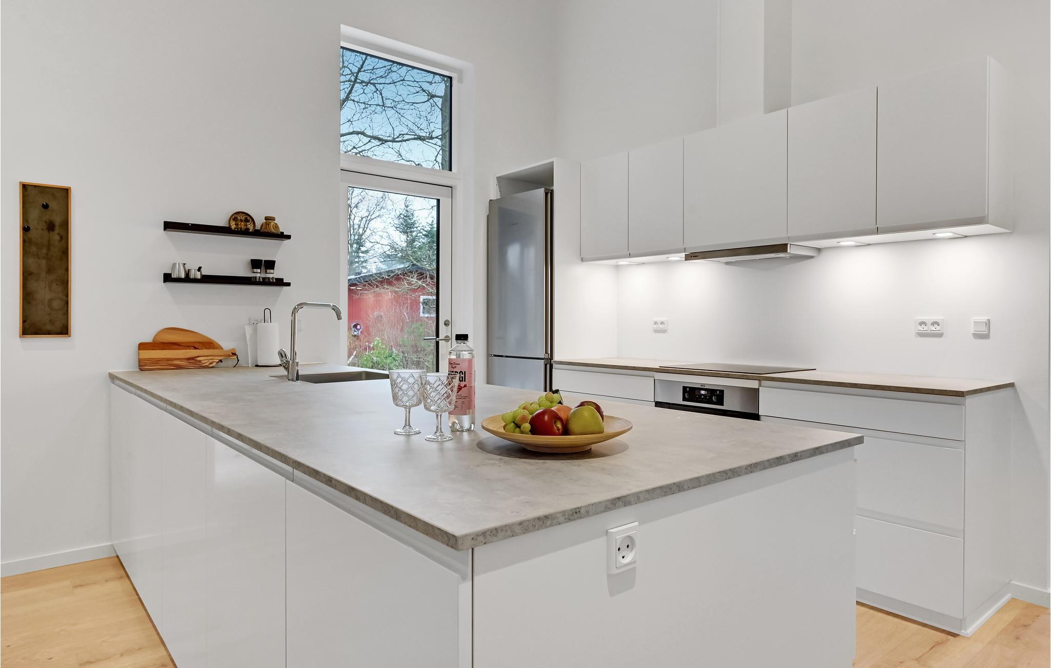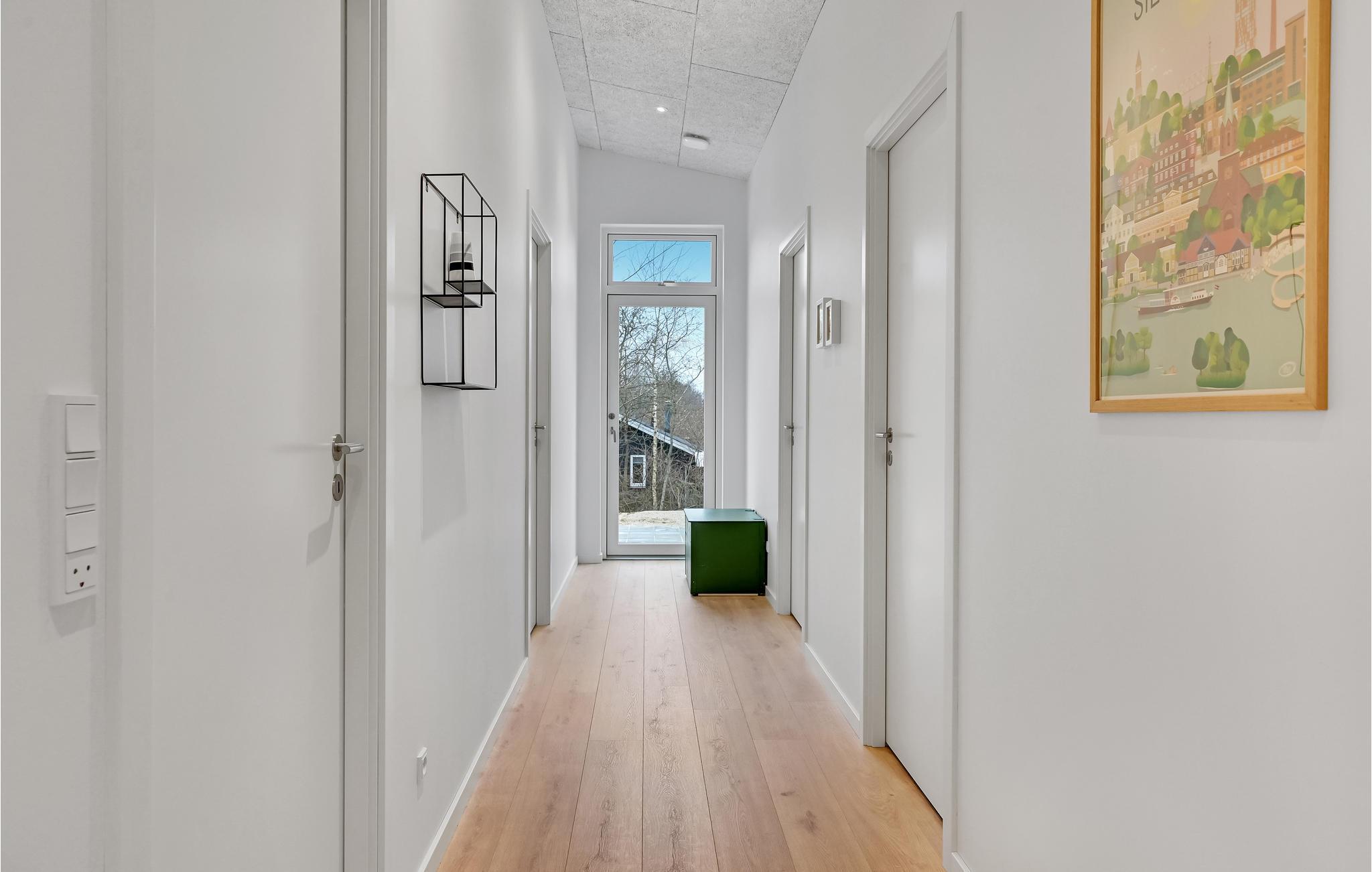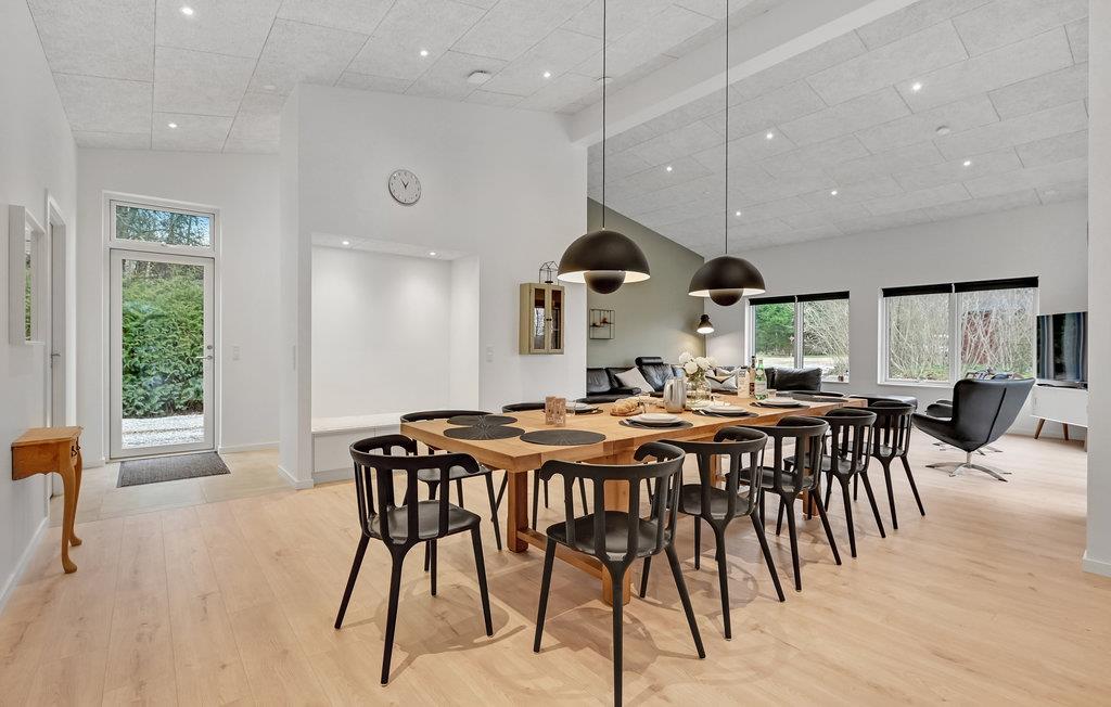 Dette moderne, rummelige hus byder velkommen til en større familie eller gruppe af venner. Føl jer rigtig godt tilpas i de lyse lokaler. I disse stilfulde rammer vil det være nemt for jer at lægge hverdagen bag jer. Spis sammen ved det lange spisebord og tilbring hyggelige aftener i sofaen, hvorfra I kan nyde en magisk udsigt til omgivelserne. Ejendommen byder på masser af plads til at lege og slappe af. Tag jeres kaffe med udenfor og nyd solen, mens jeres børn boltrer sig.